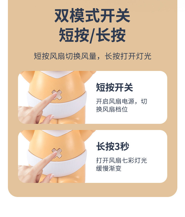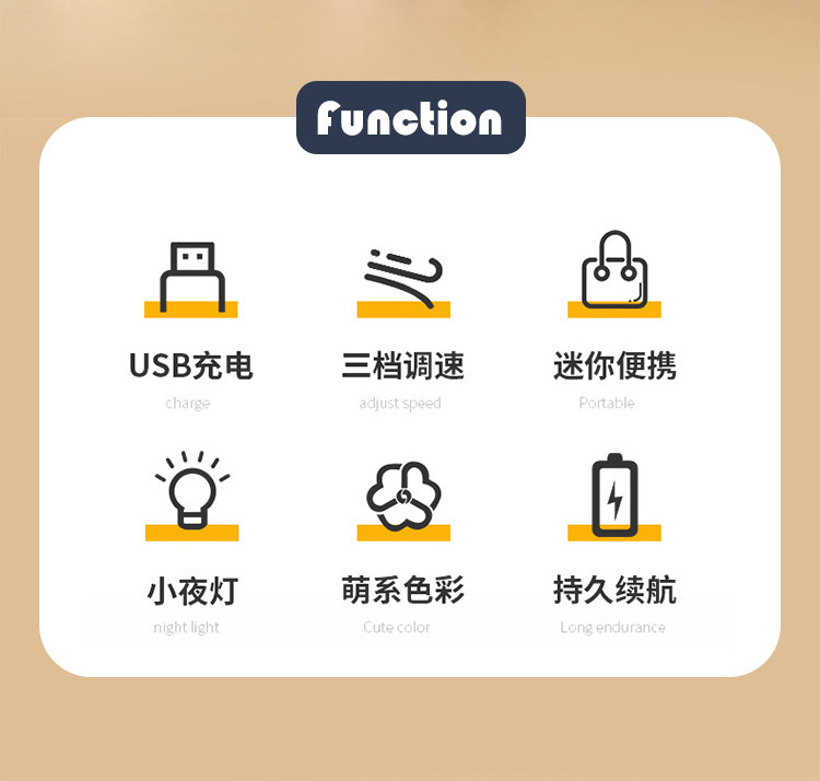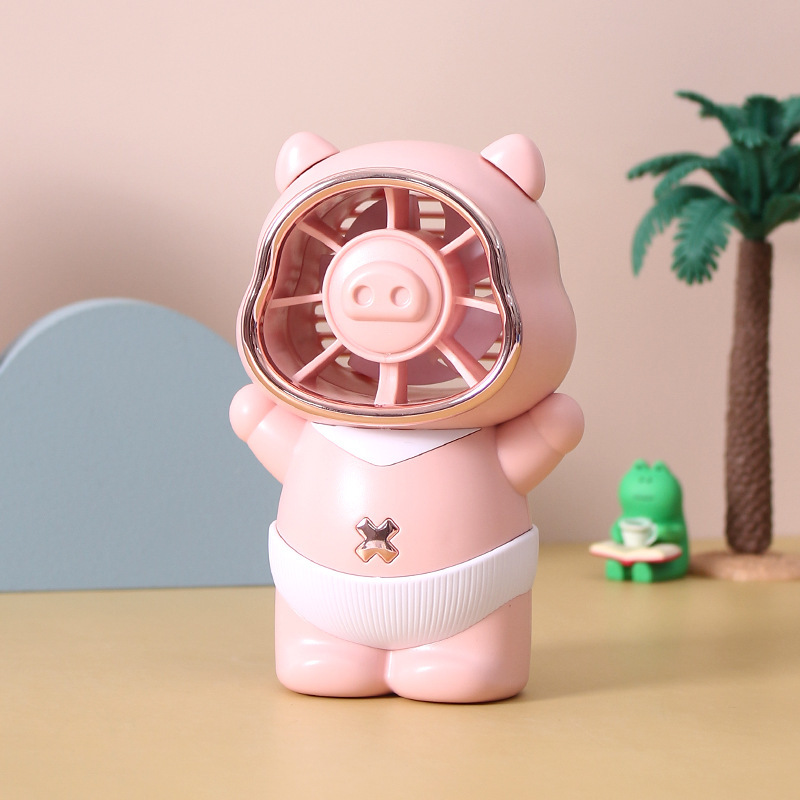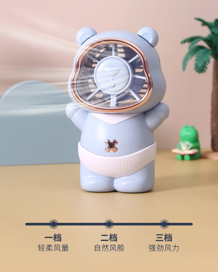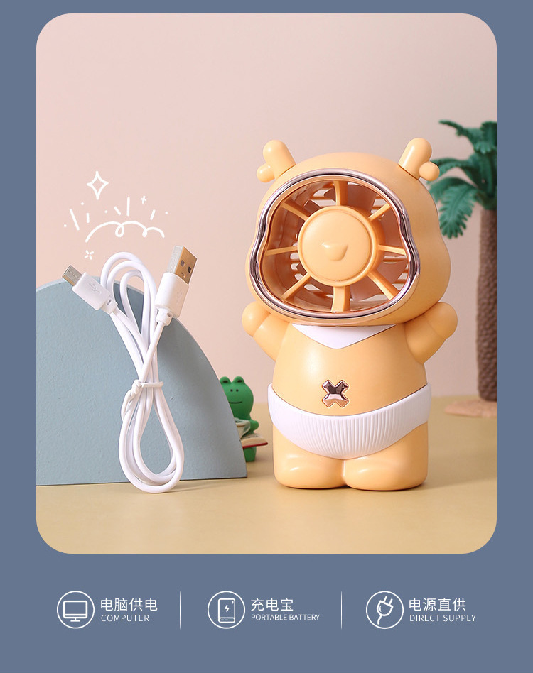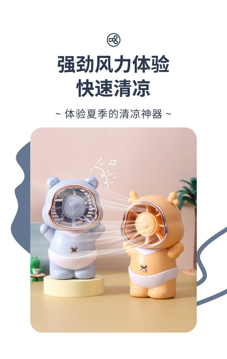 源头厂家可爱动物灯光手持充电风扇桌面随身大风力风扇3档风速
