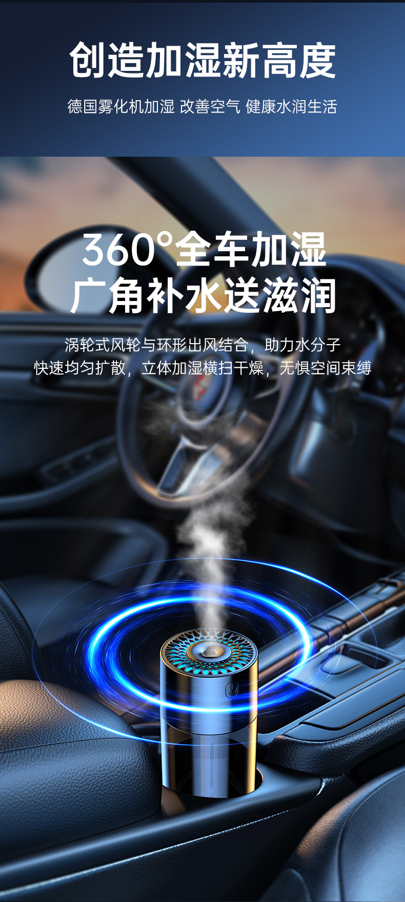 网红高档车载加湿器车内空气净化香薰机全自动喷香机车用除异味