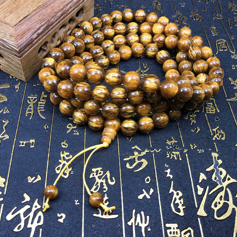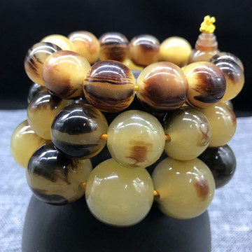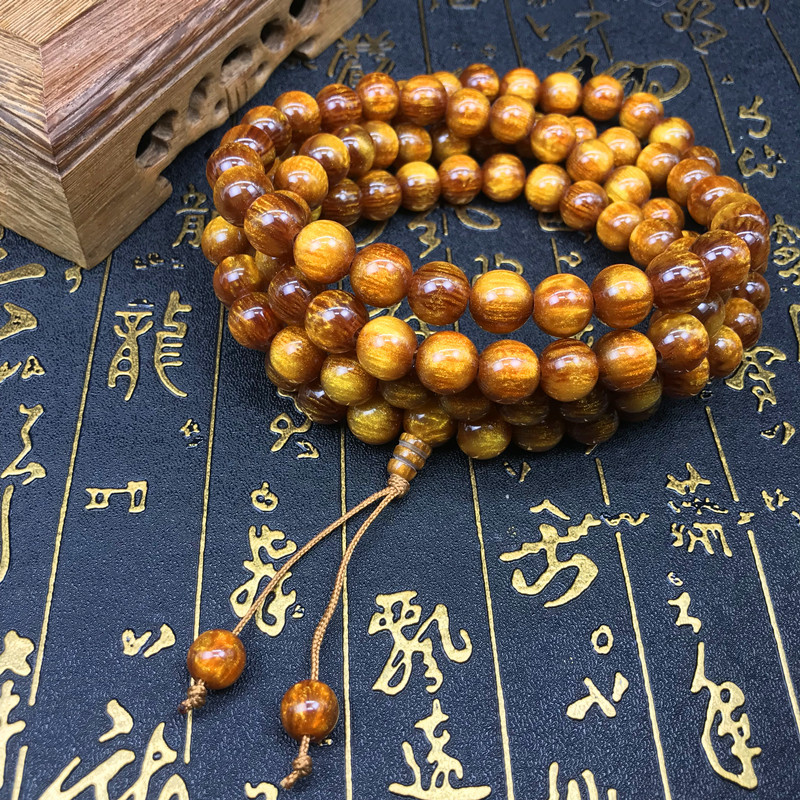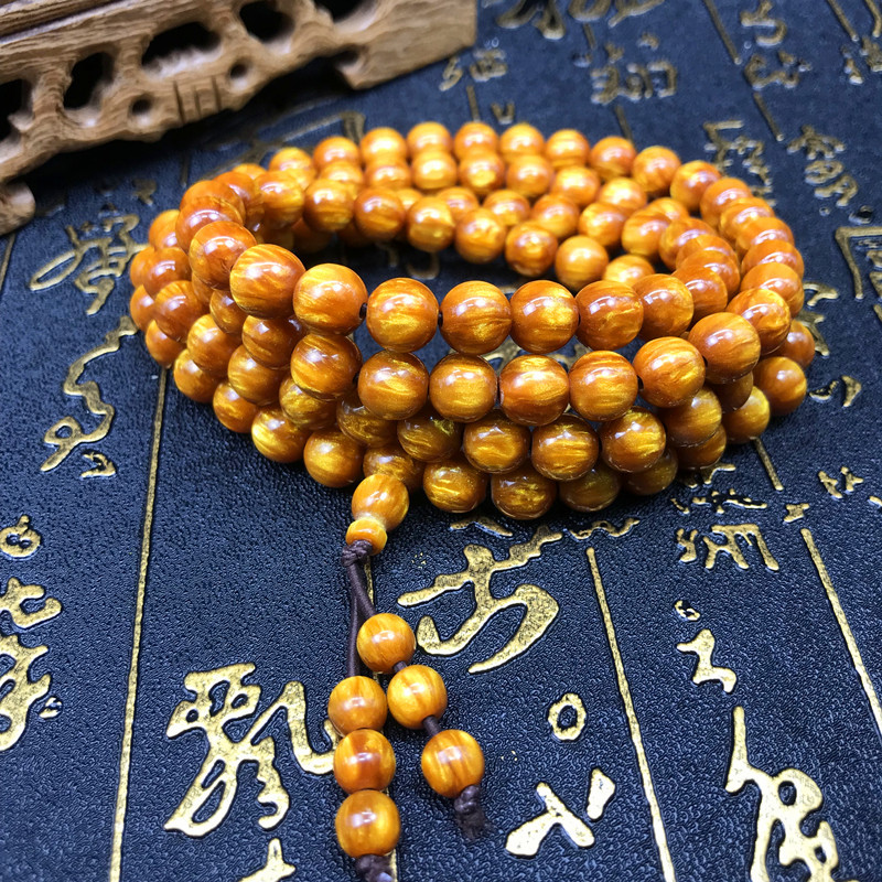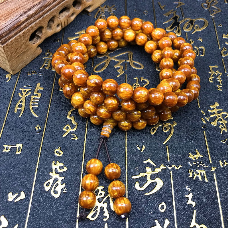 厂家批发金丝海柳佛珠手串粉压仿金丝海柳琥珀佛珠饰品手链批发