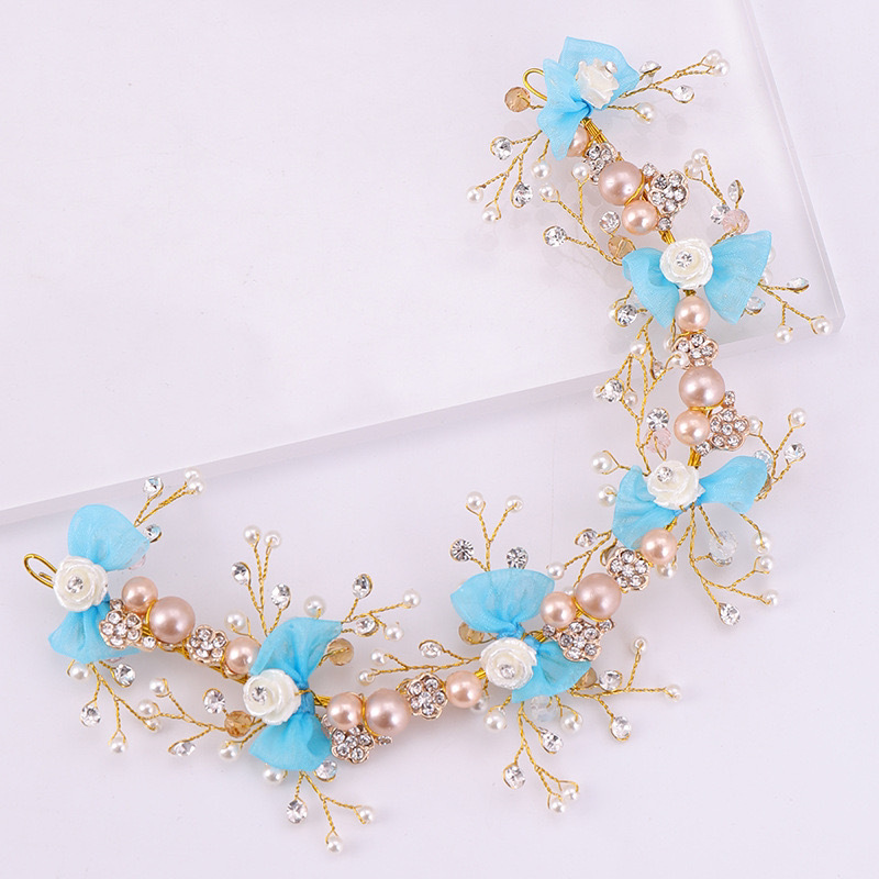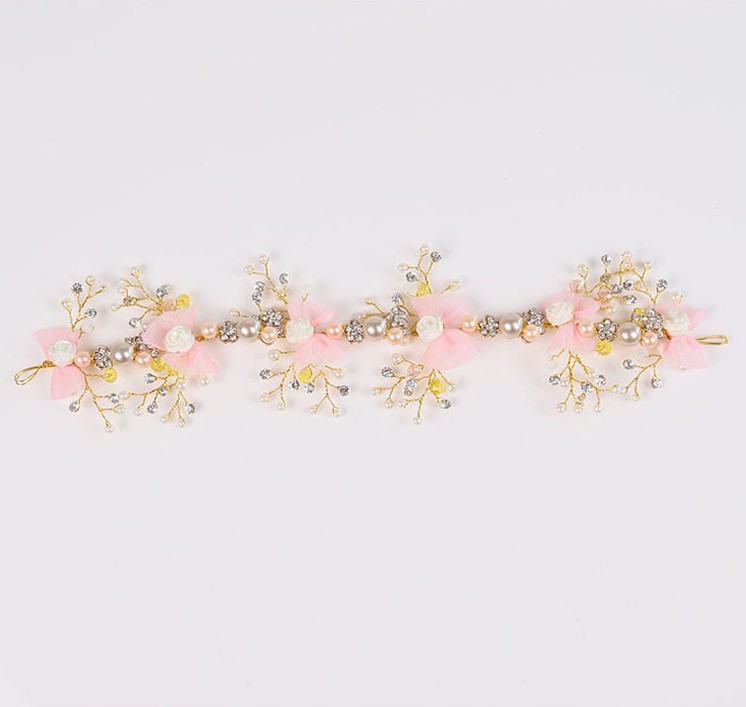 韩式新娘粉色水晶头饰 蝴蝶结发饰 合金珍珠水钻皇冠 礼服配饰