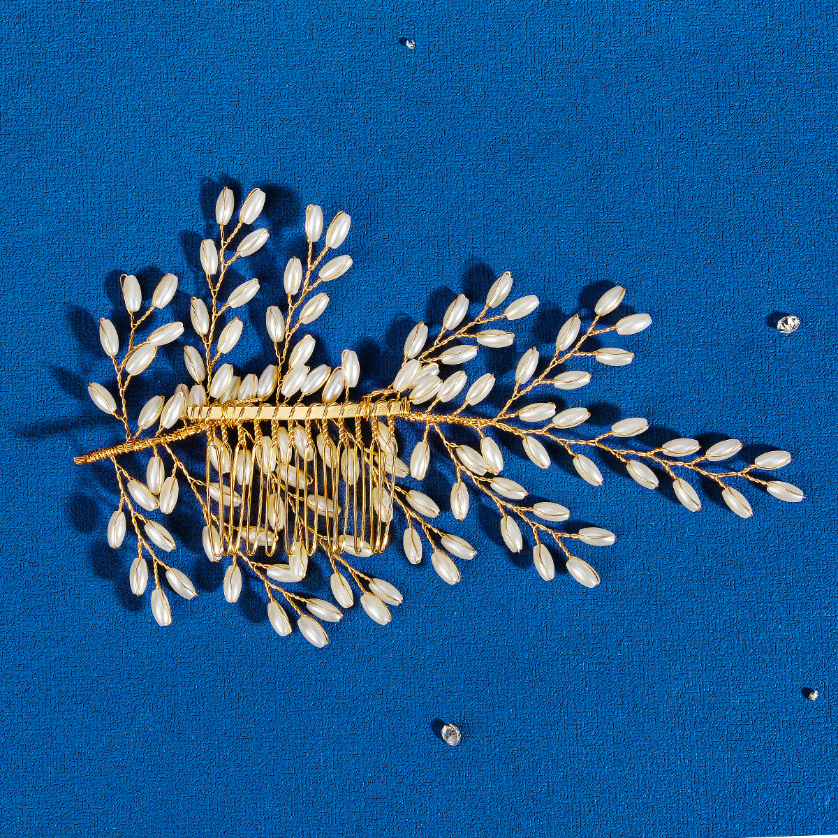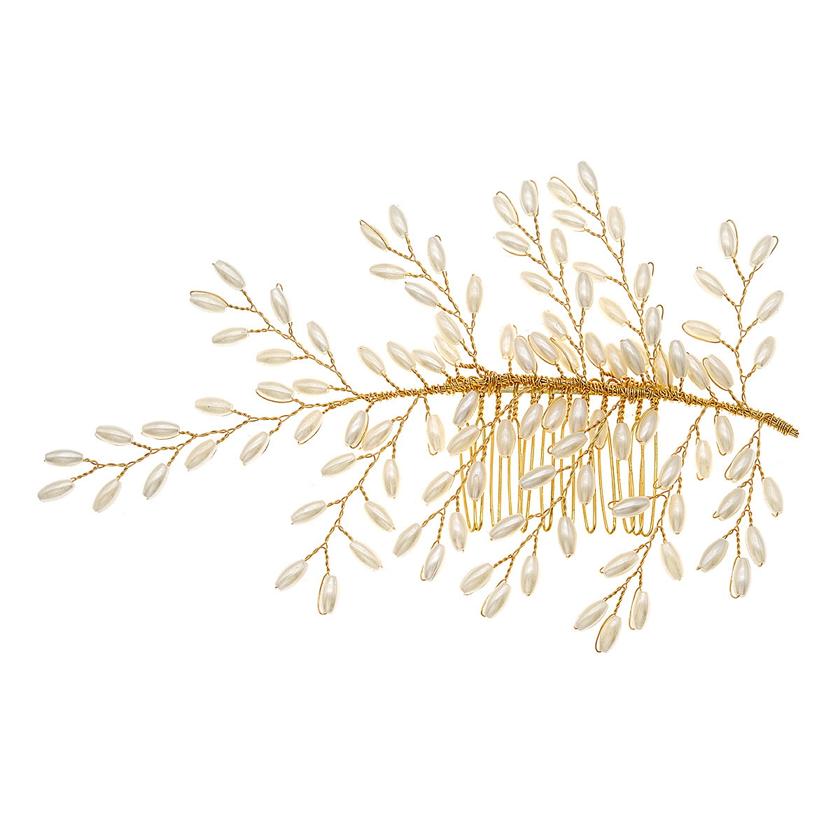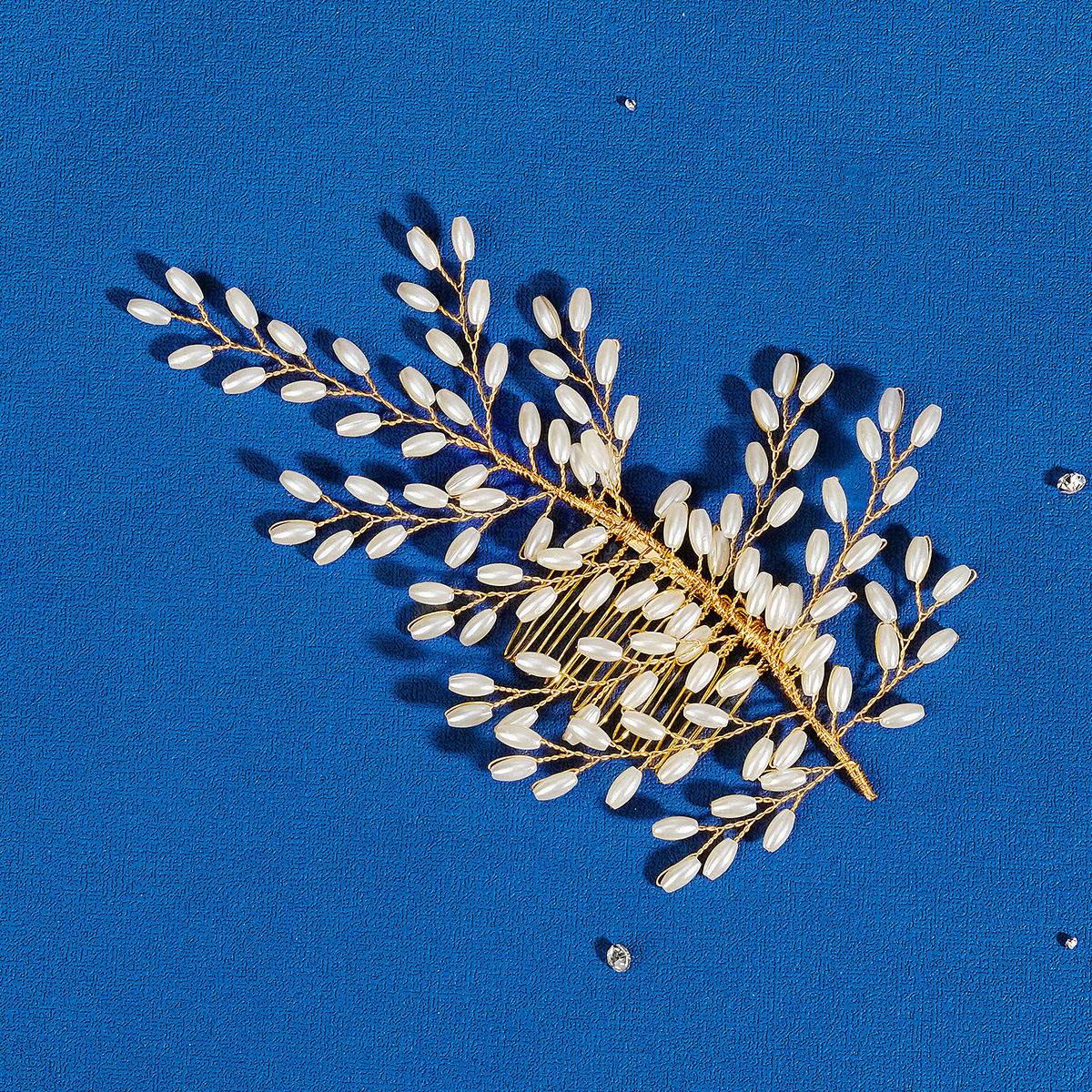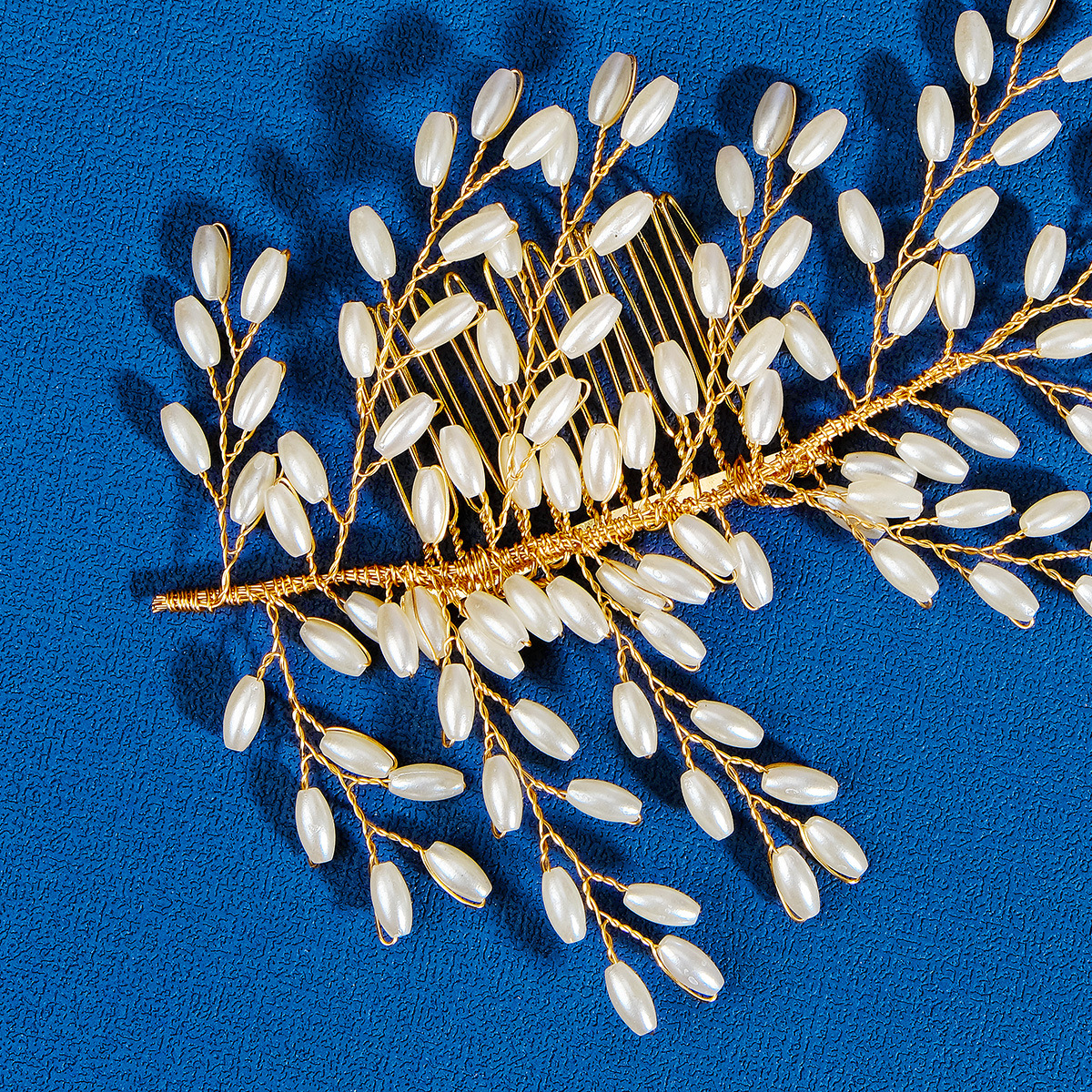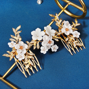 新中式新娘发饰发梳秀禾礼服头饰百搭复古珍珠发梳金色手工插梳女