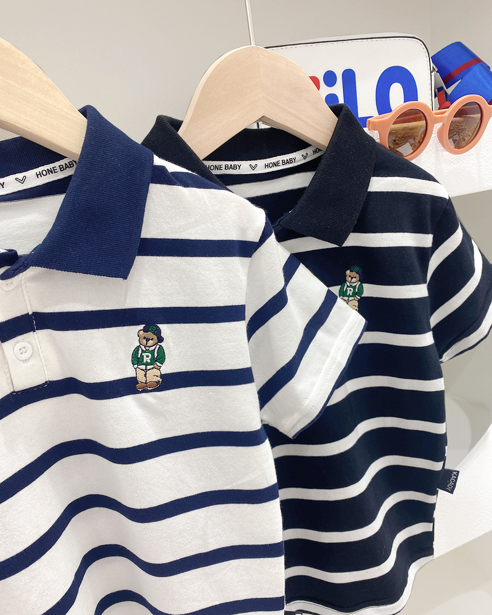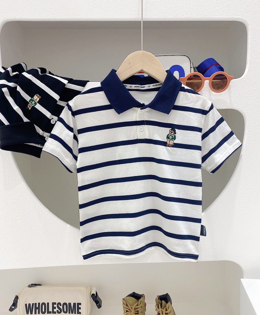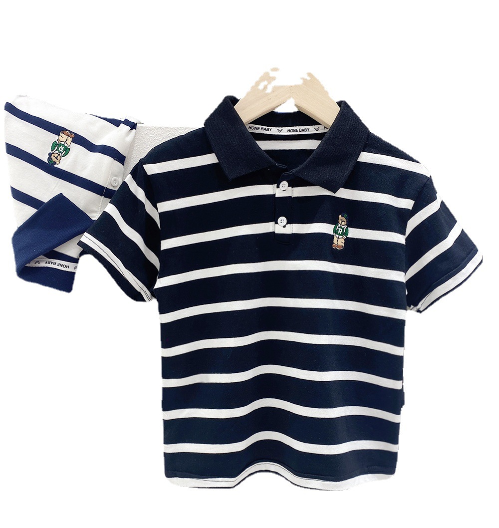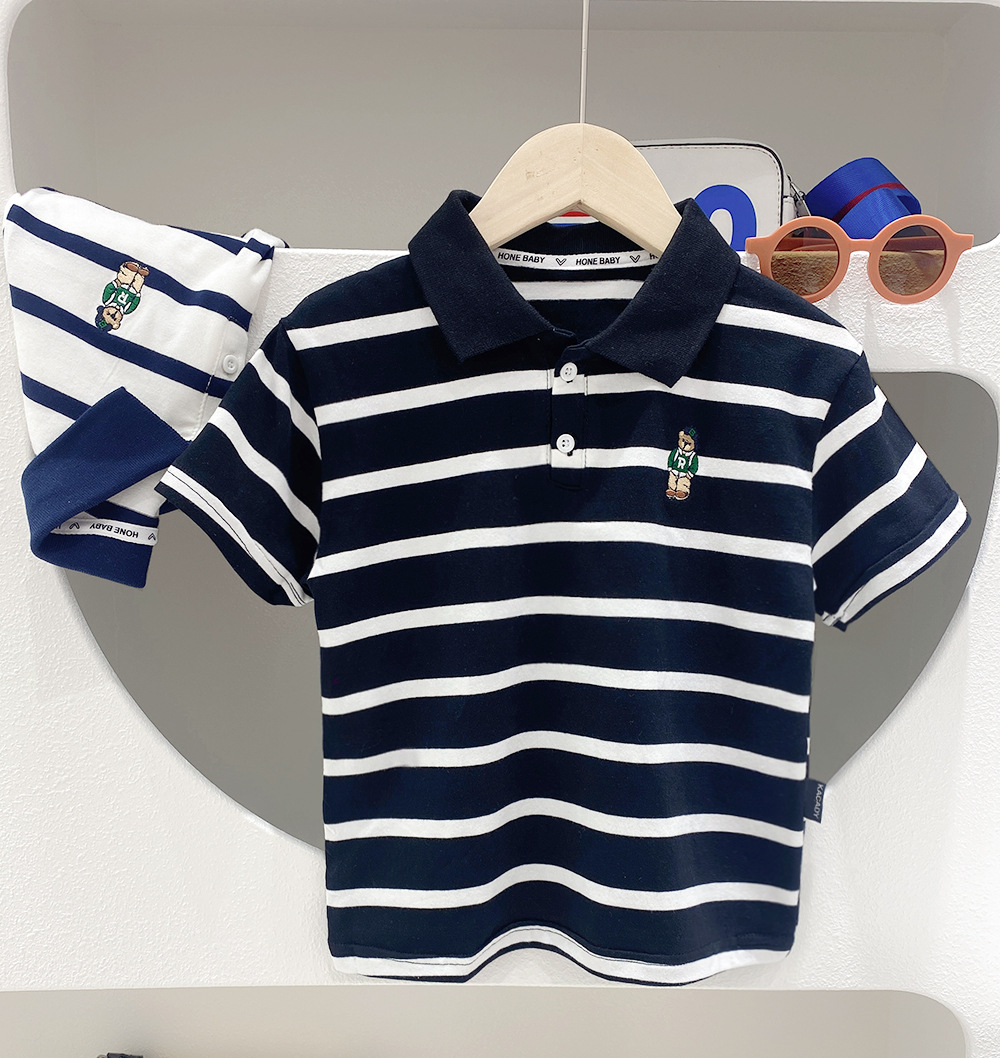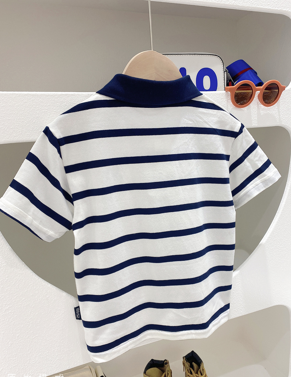 儿童短袖t恤2024夏季新款翻领中小童韩版运动条纹宝宝时尚T恤潮童