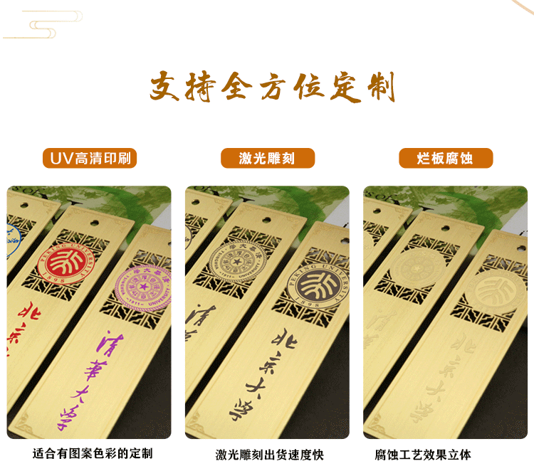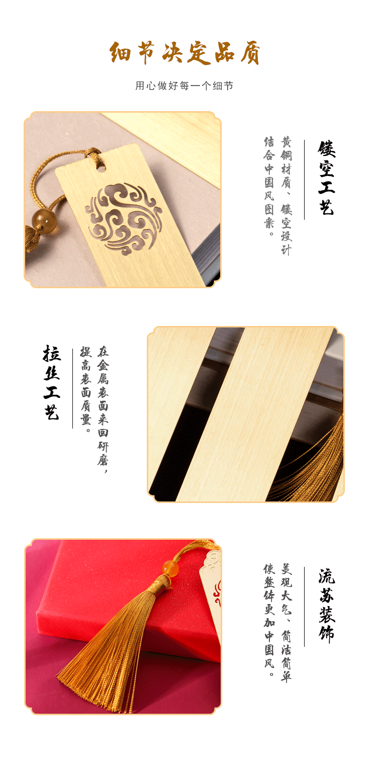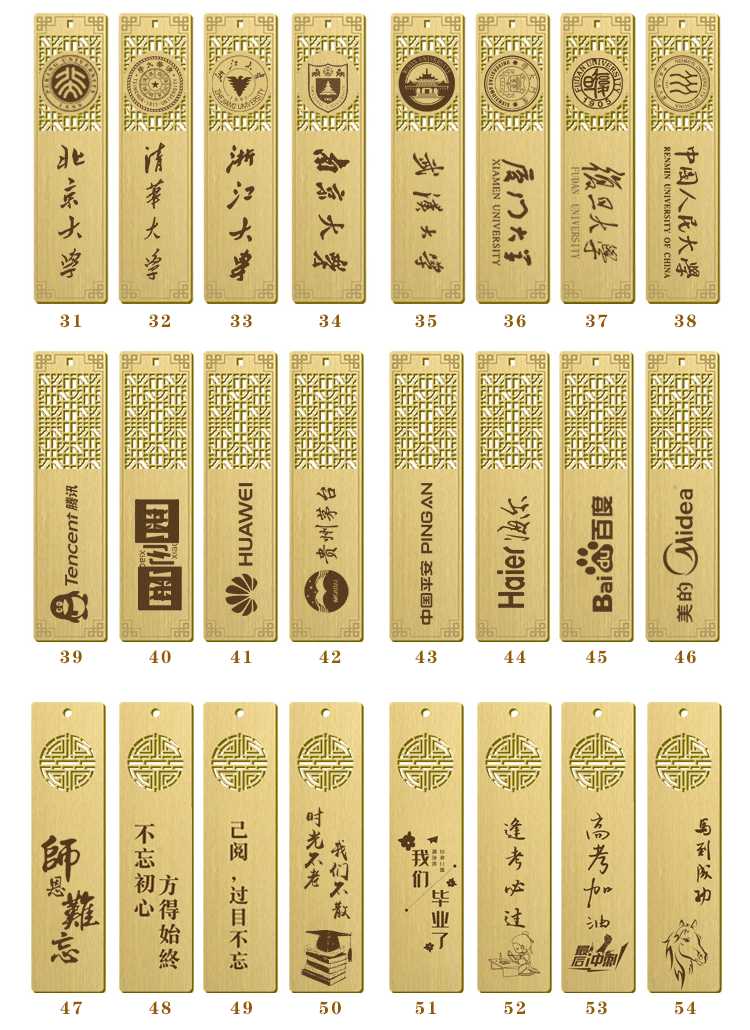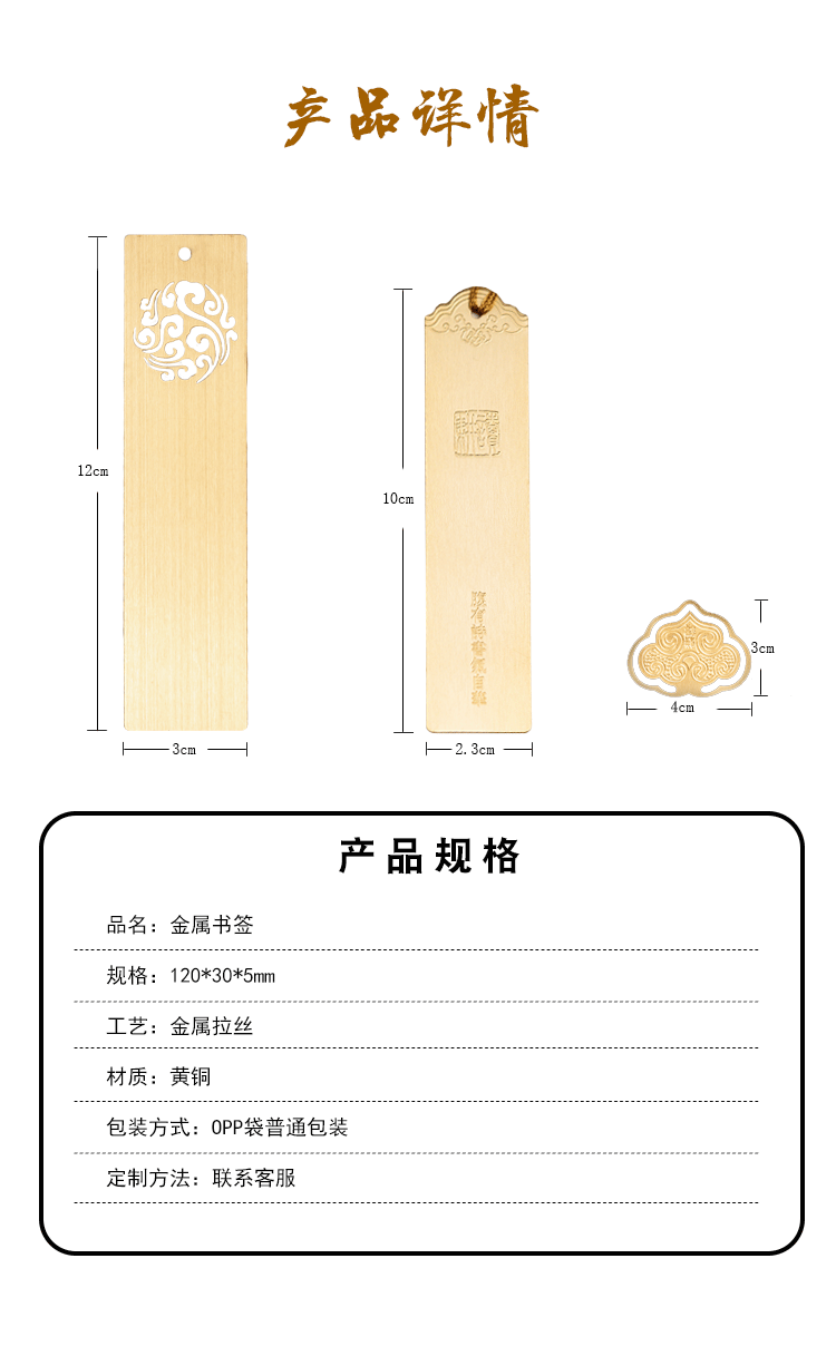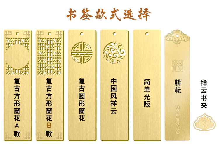 黄铜金属书签来图来样定制学校毕业纪念品文创镂空中国风书签定做