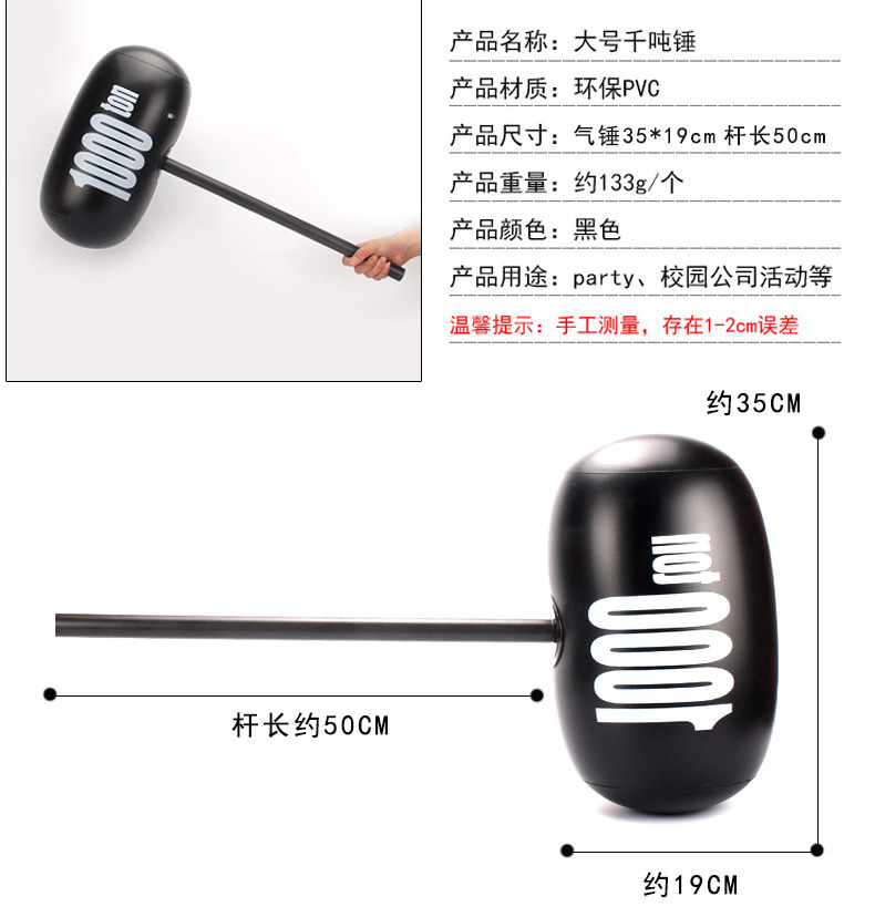 大号千吨锤 充气玩具1000吨锤子 彩色千吨锤地推扫码礼品厂家批发