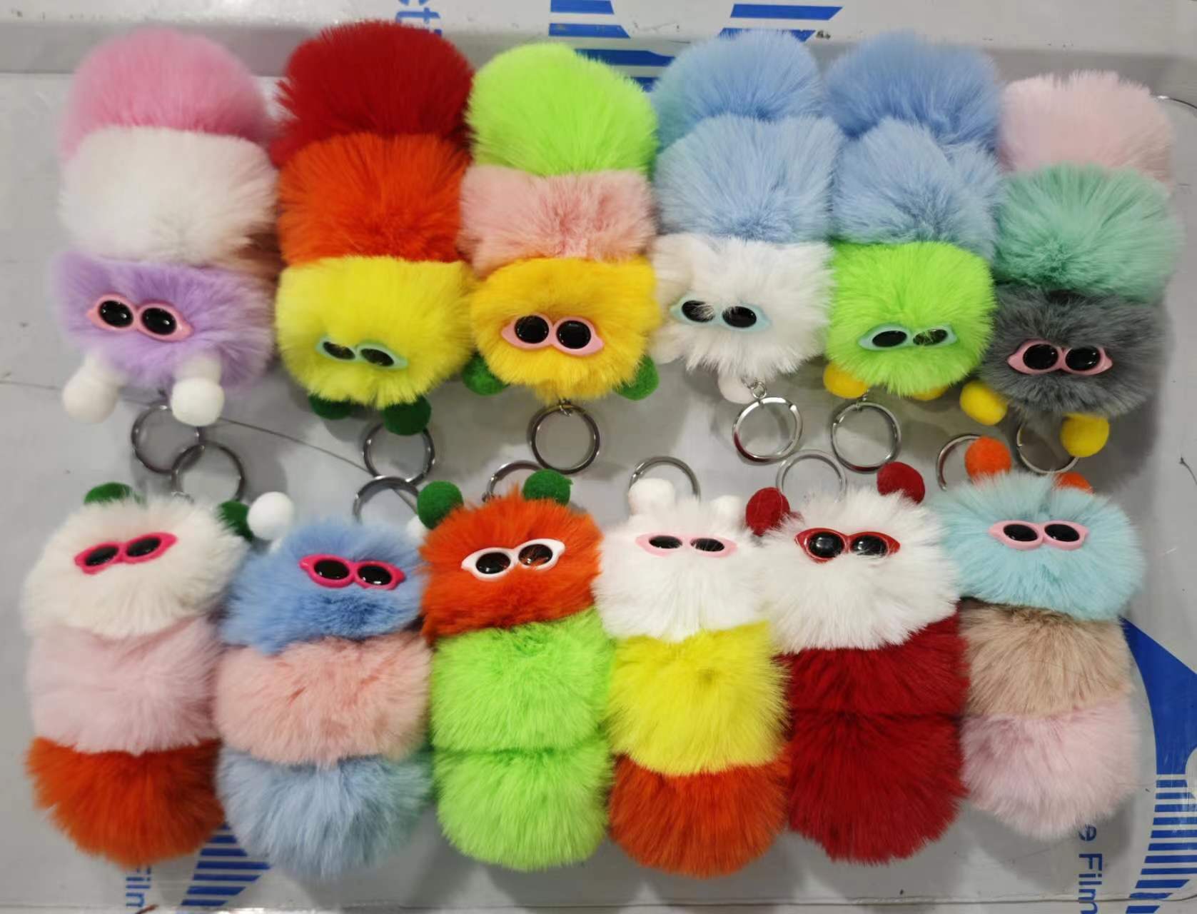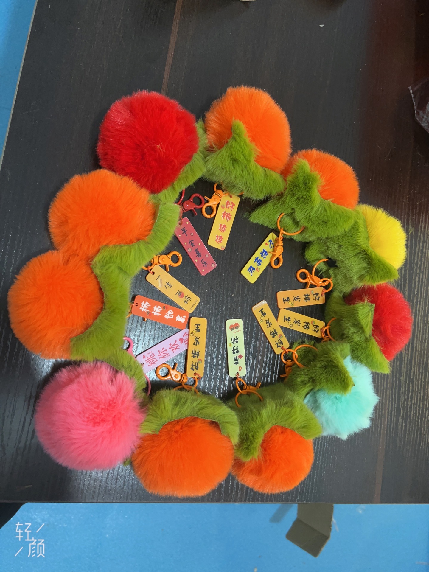 网红 好事发生毛绒挂件汽车钥匙扣獭兔毛柿子挂件包 包挂饰毛绒柿