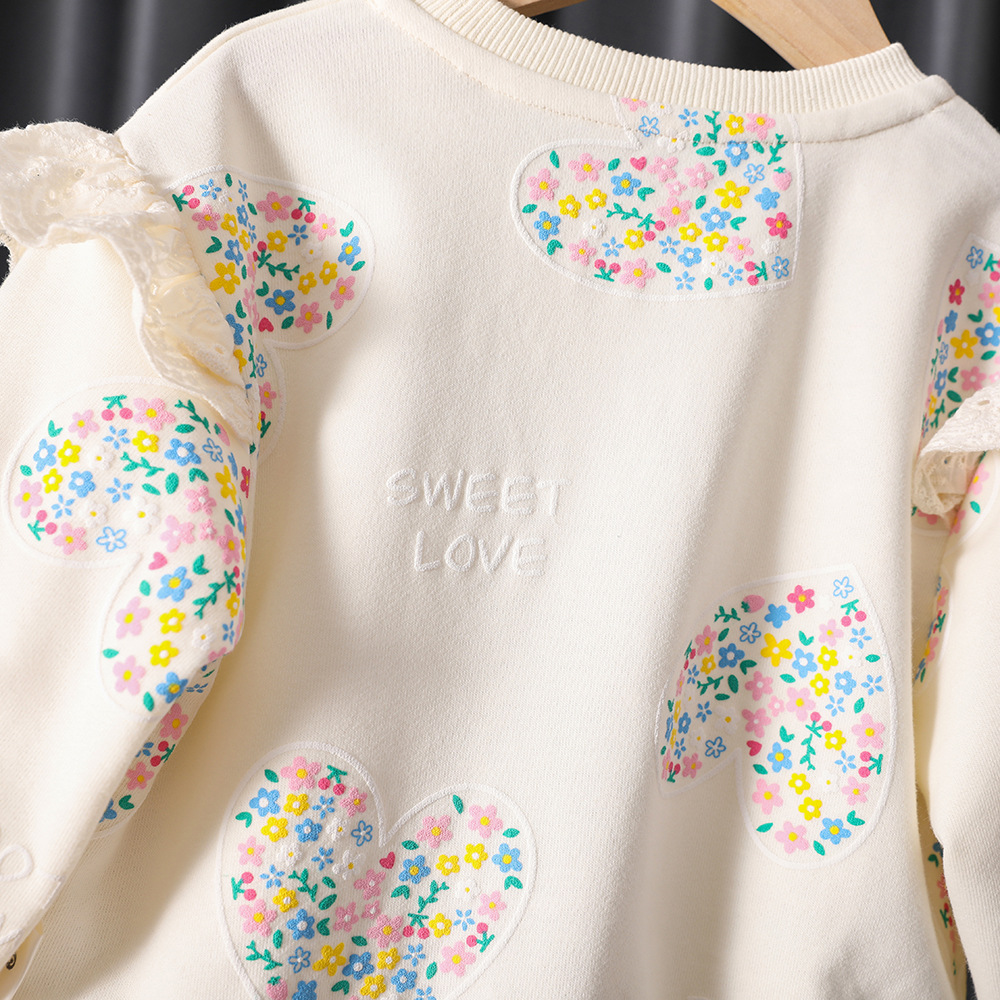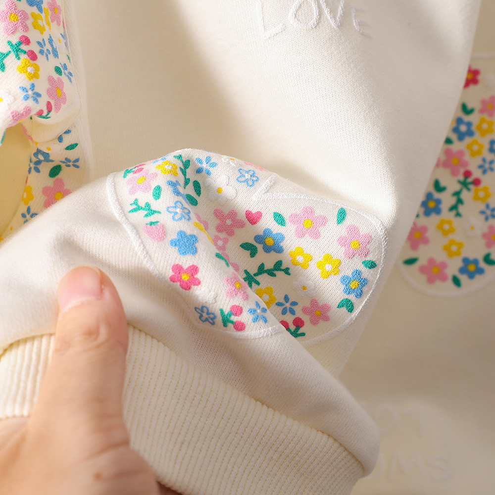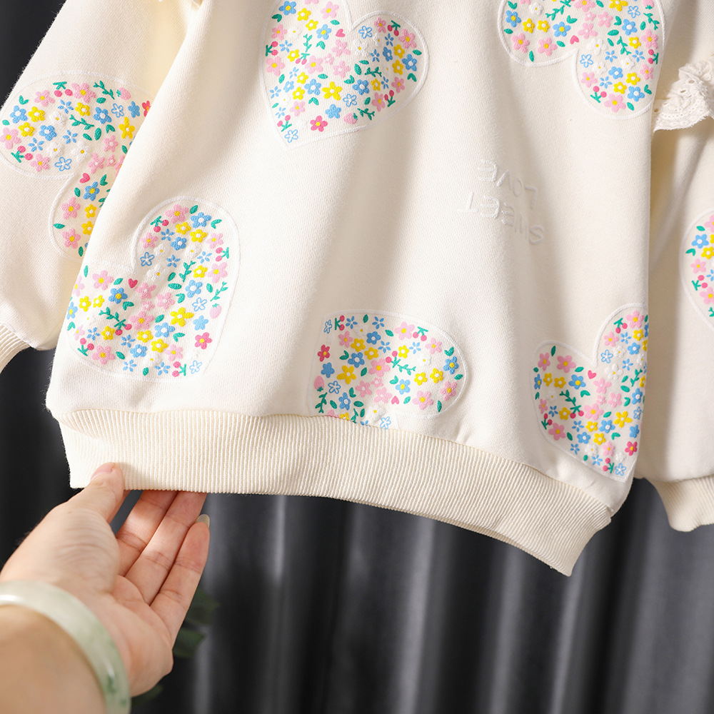 1-8岁女宝宝精棉套头上衣女婴儿童秋季新款女童洋气碎花爱心卫衣2