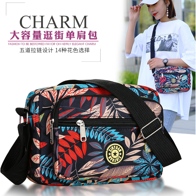 地摊包包批发新款花布包单牛津布肩斜挎包实用中年女包帆布背包