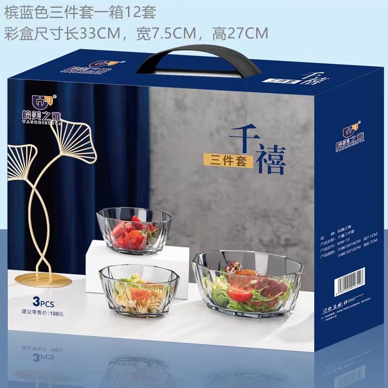 所有产品整箱发货不包运费 具体运费请联系客服确认下单,请勿直接下单 可以在彩盒上丝印 槟蓝小碗口径12CM,高6.7CM 槟蓝大碗口径16CM,高7.1CM 槟蓝杯高9.5CM,口径8CM