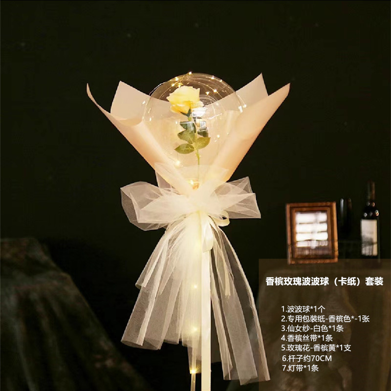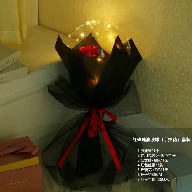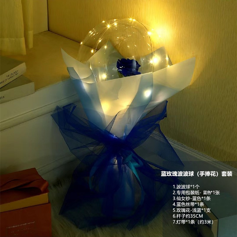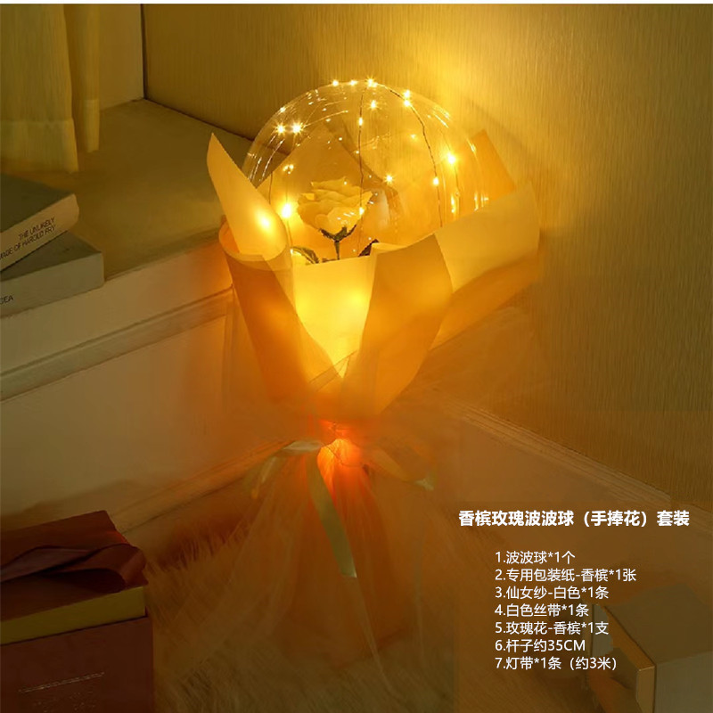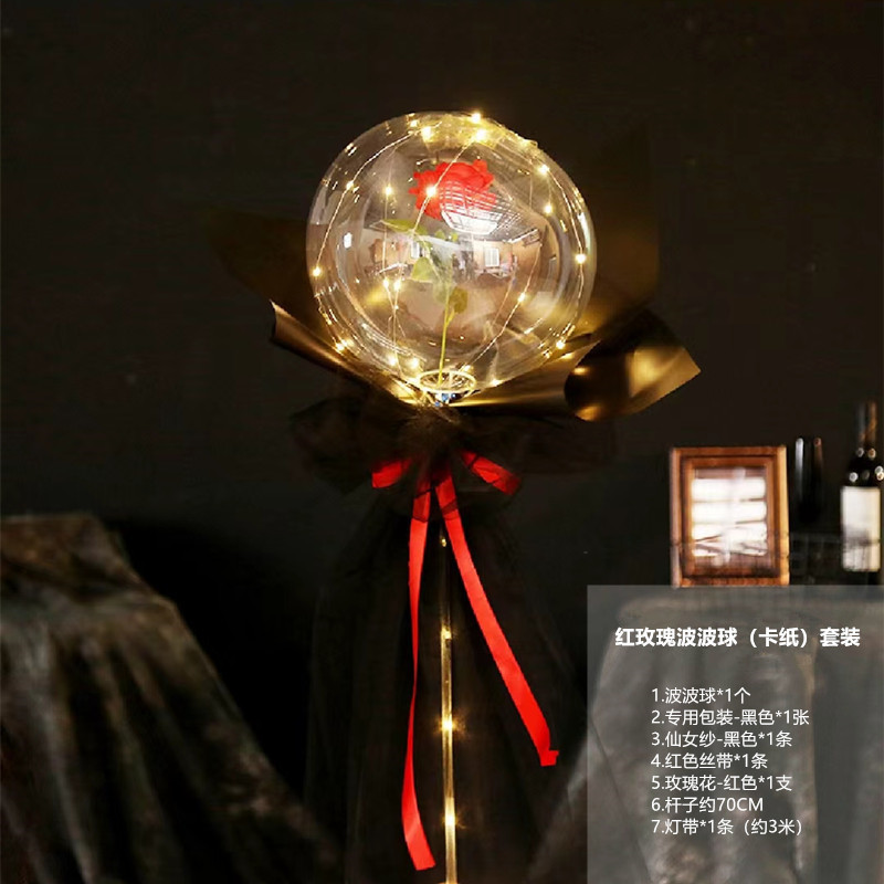 网红透明波波球发光气球带灯花束材质玫瑰七夕情人节夜光地推摆摊
