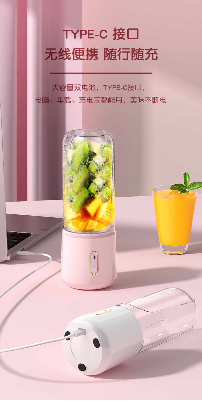 跨境多功能充电款水果榨汁杯无线电动小型榨汁机便携式迷你果汁机