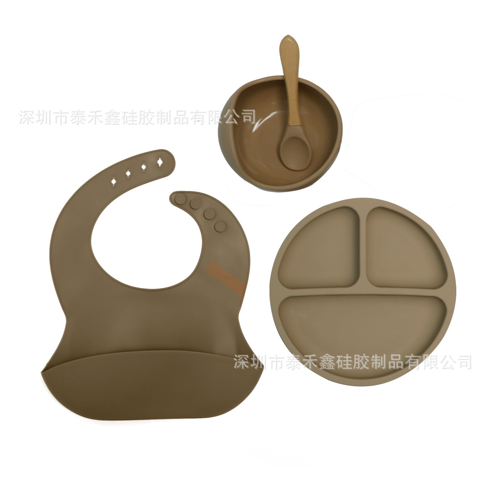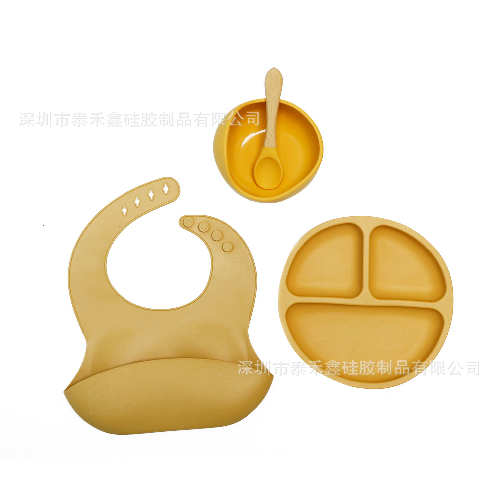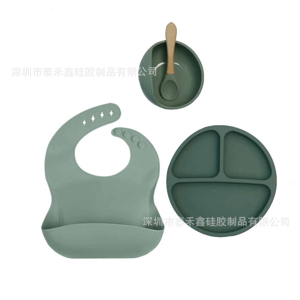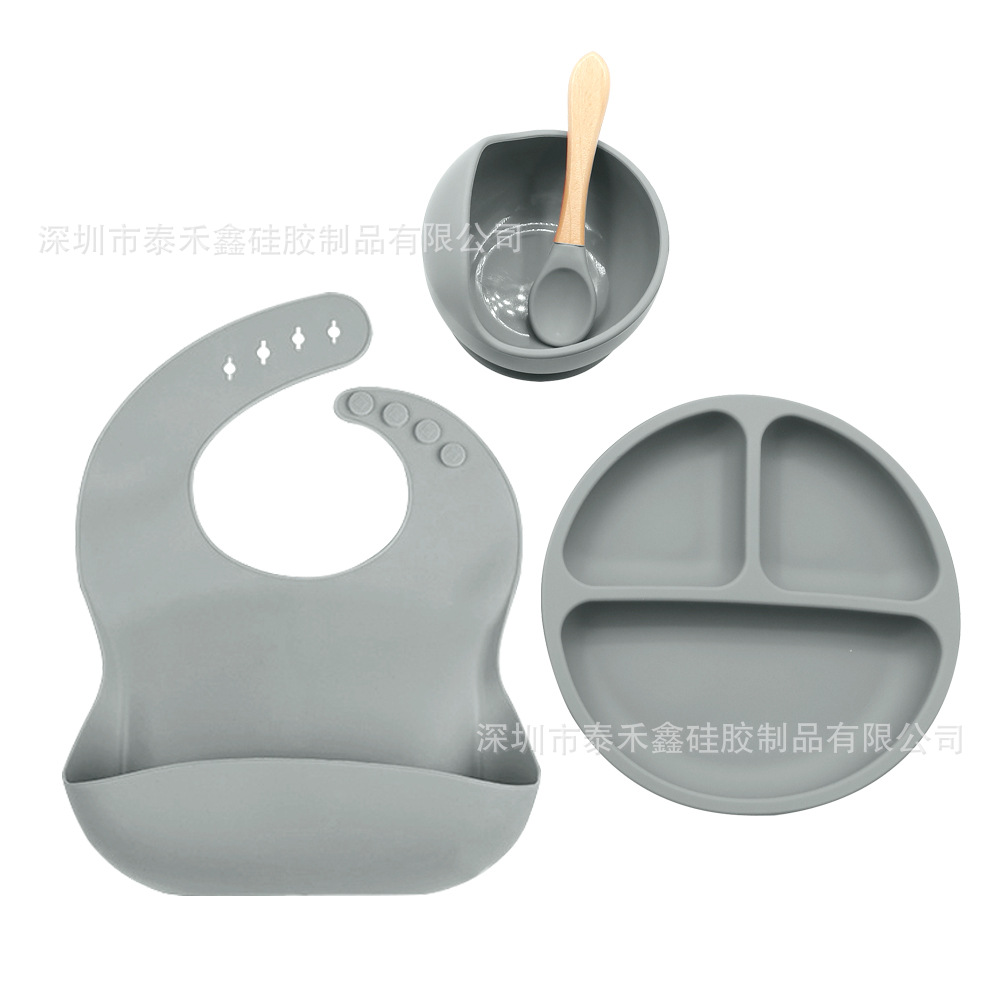 宝宝喂养分隔餐盘防摔食品级儿童吸盘辅食碗 硅胶餐具套装