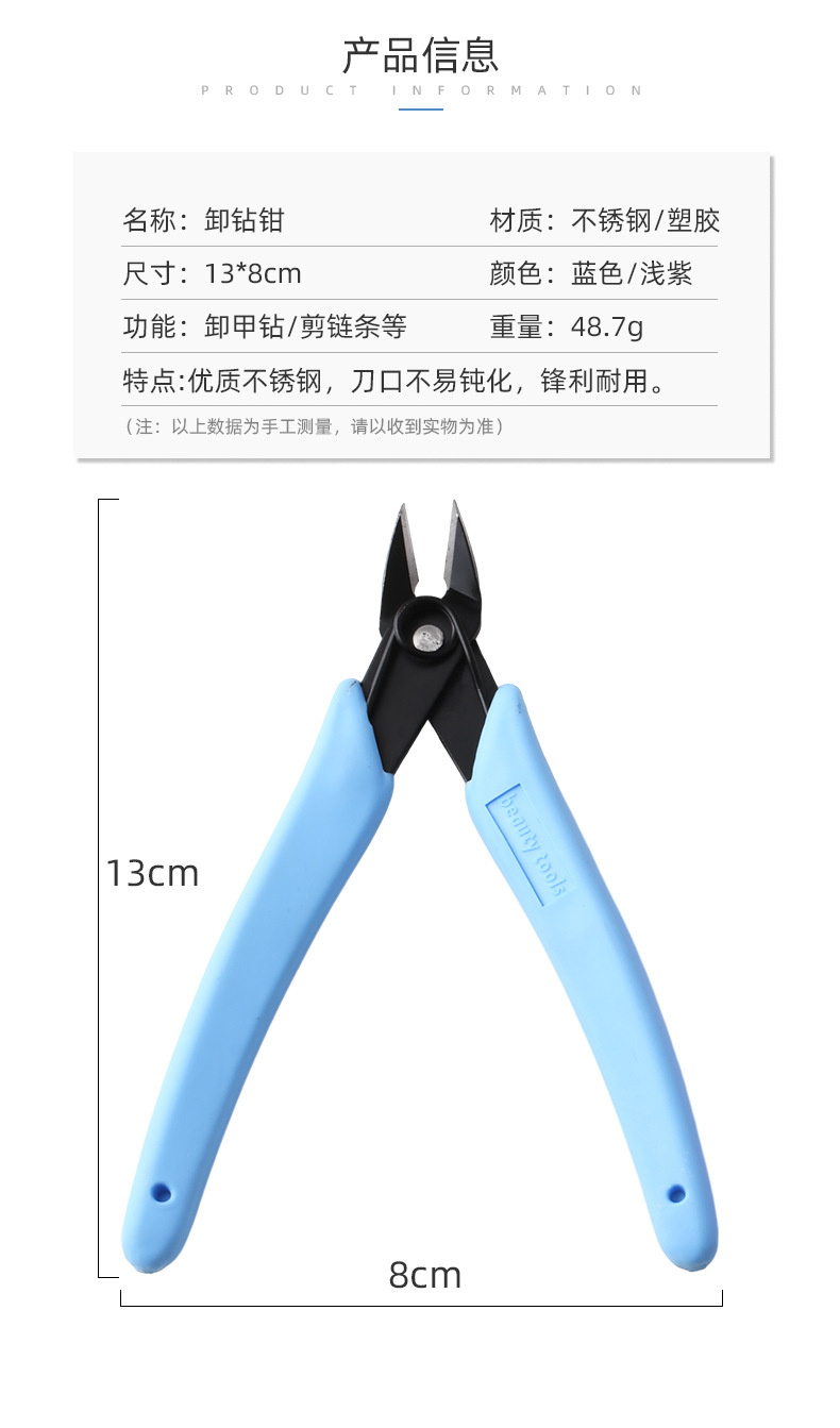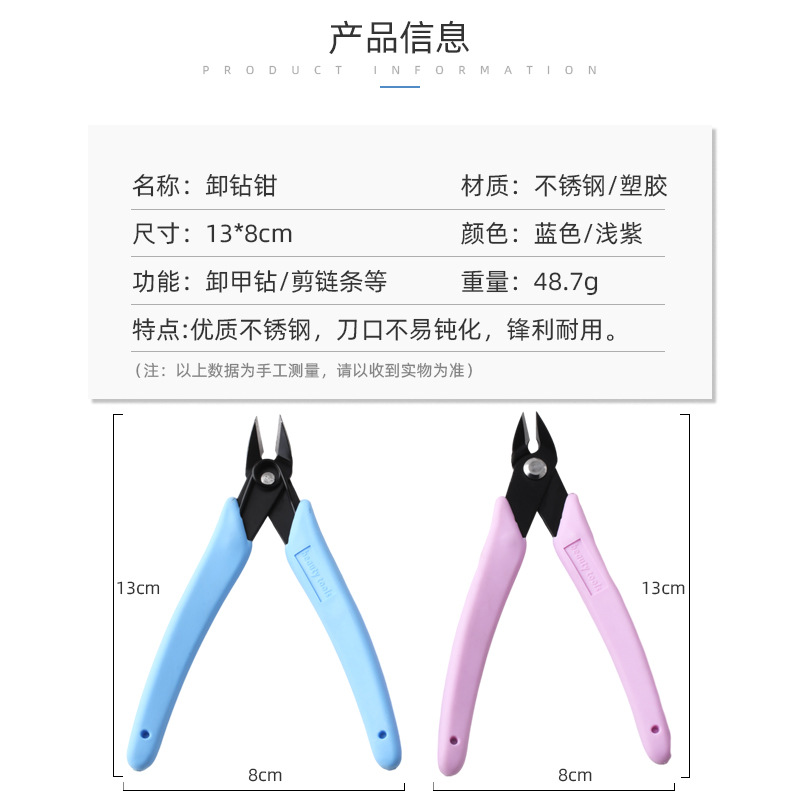 美甲卸钻钳小钳子大力钳迷你美甲钳金属链接拆钻斜口钳专用