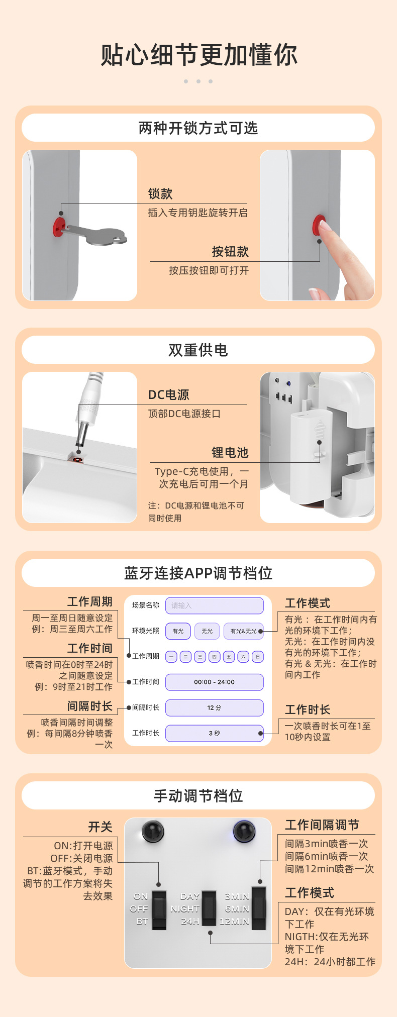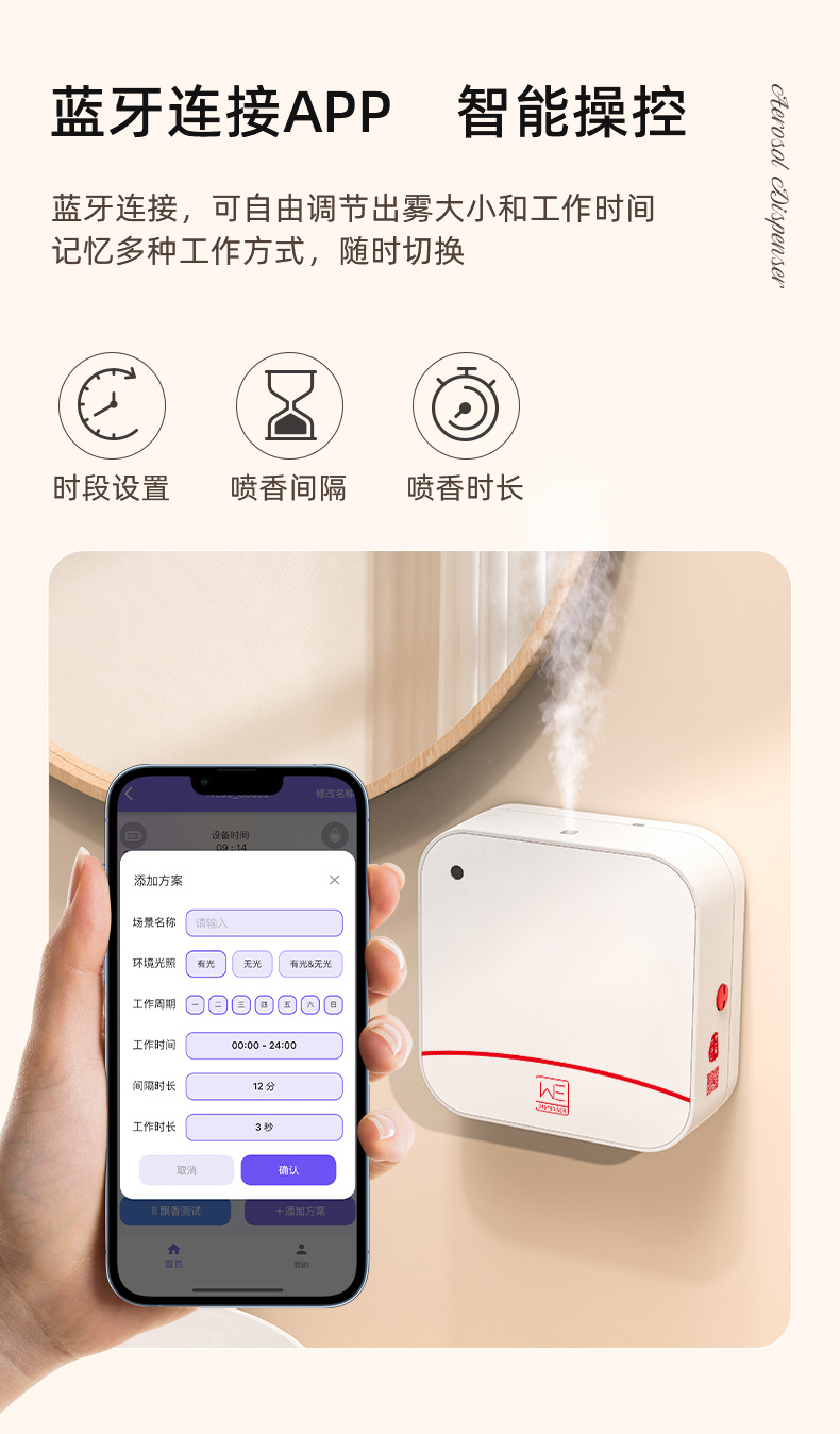 酒店无线蓝牙款自动喷香机根源除臭生物分解光香氛机壁挂式扩香机