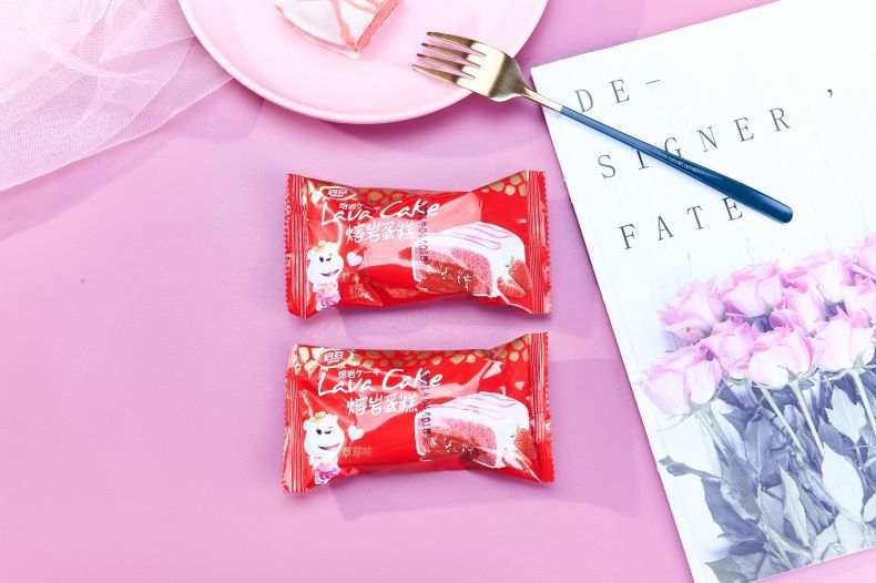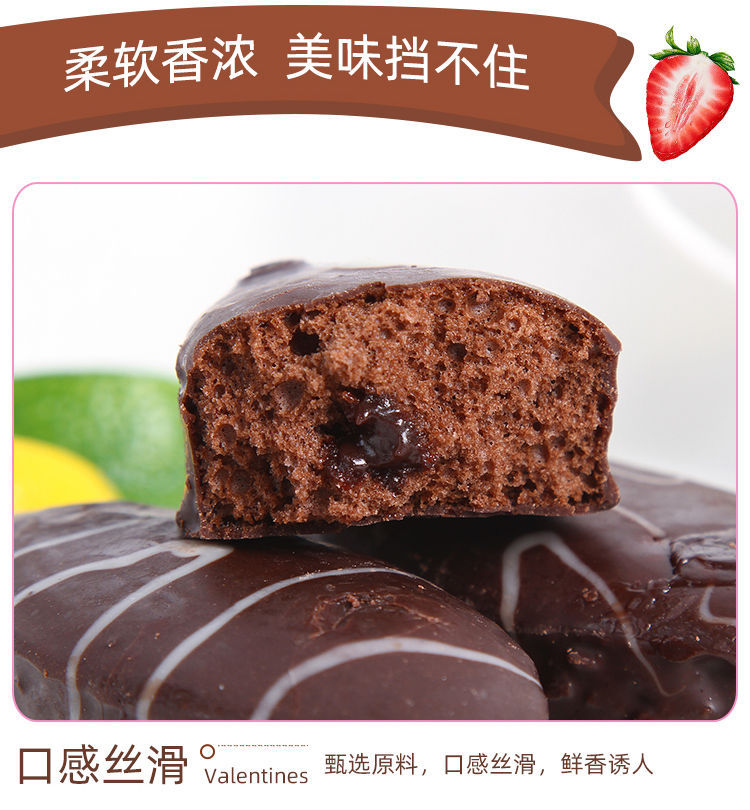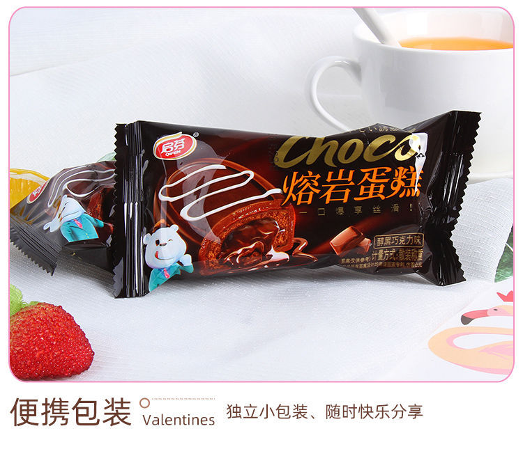启芬草莓熔岩蛋糕 学生早餐速食小面包网红休闲零食糕点整箱批发