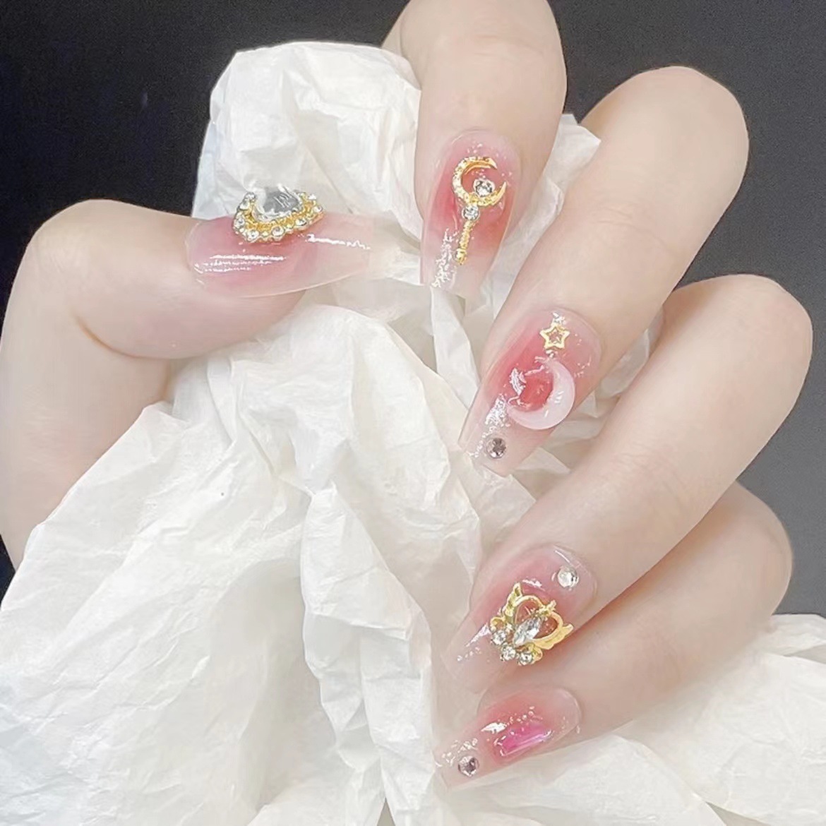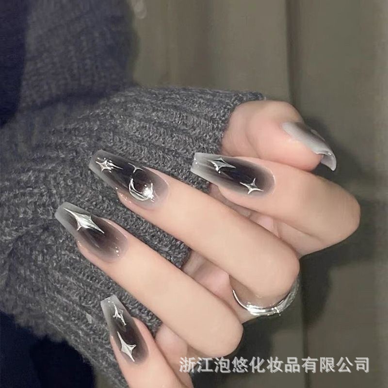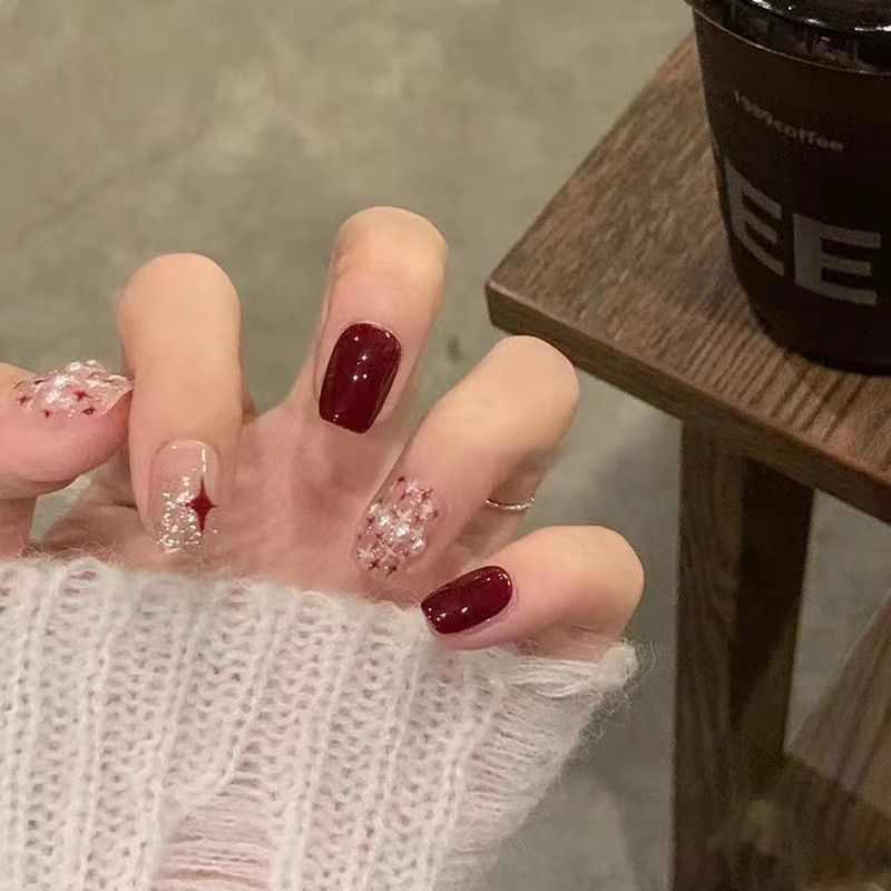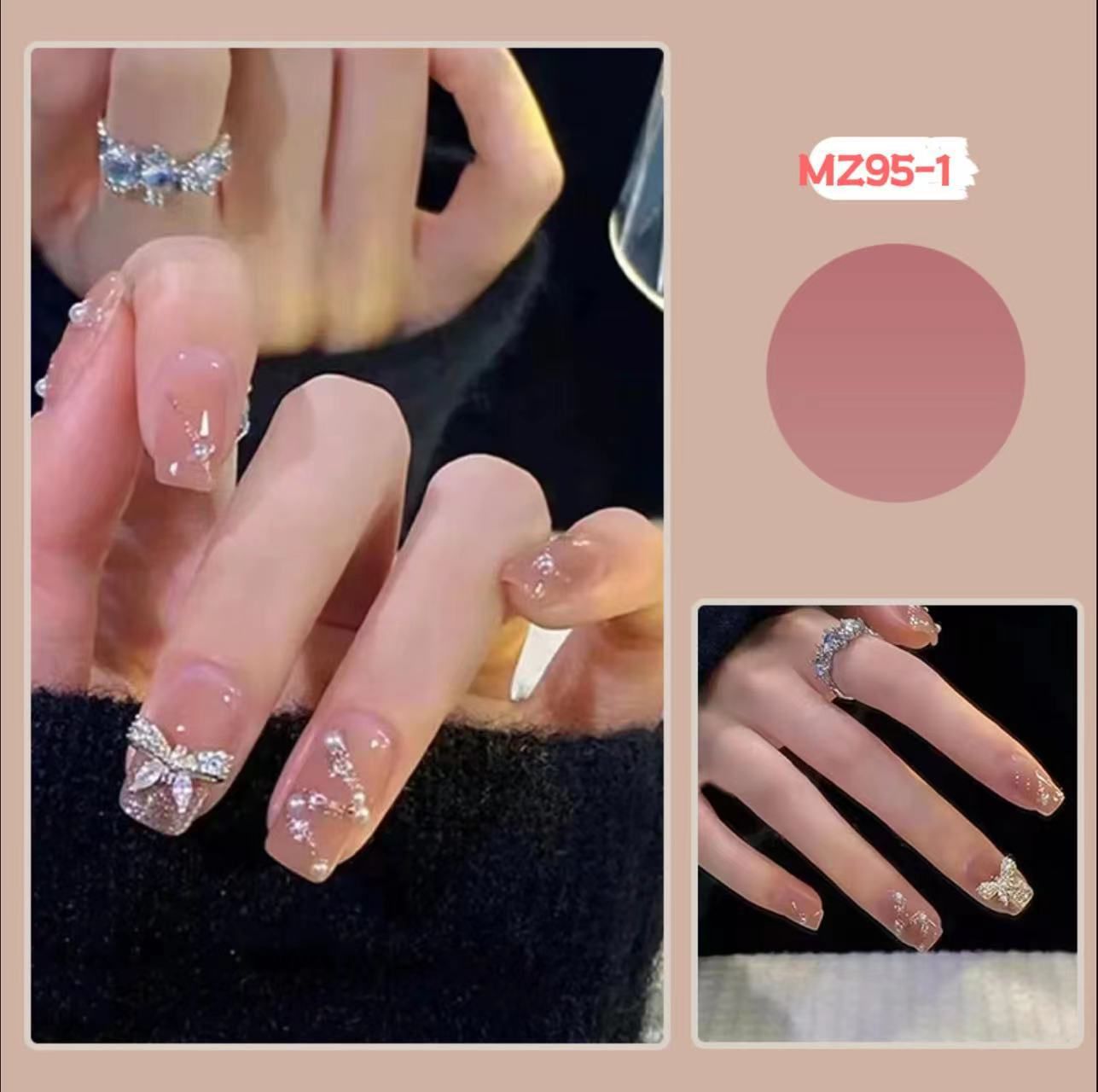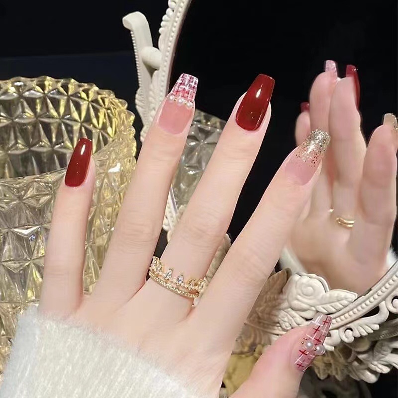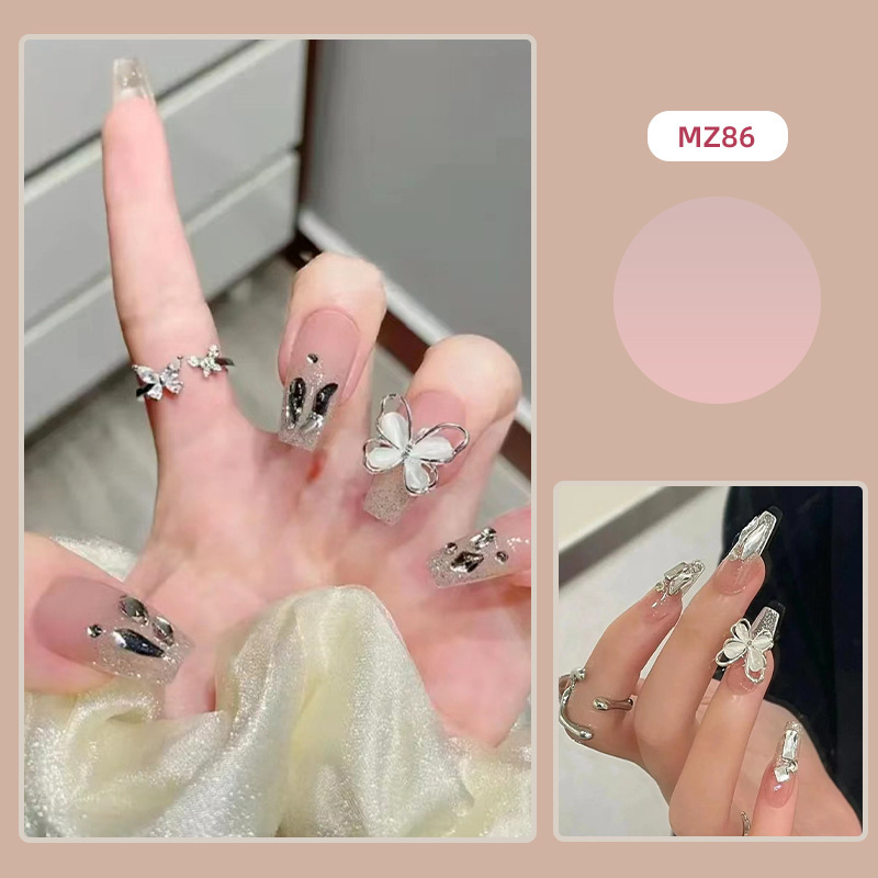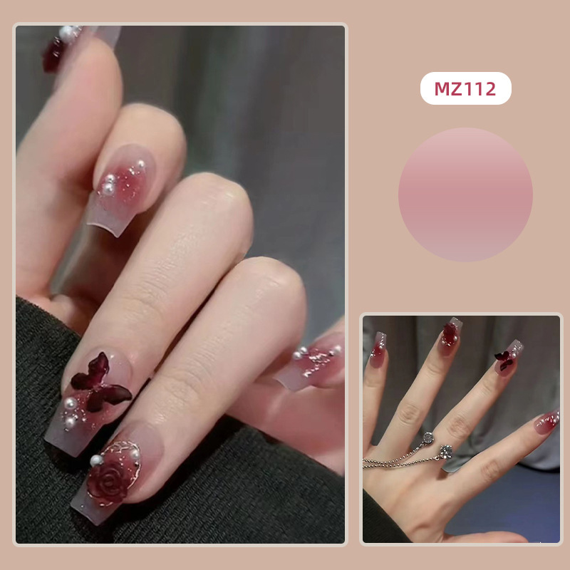 爆闪蝴蝶手工穿戴甲工厂长款美甲甲片批发成品红色新年战甲指甲贴
