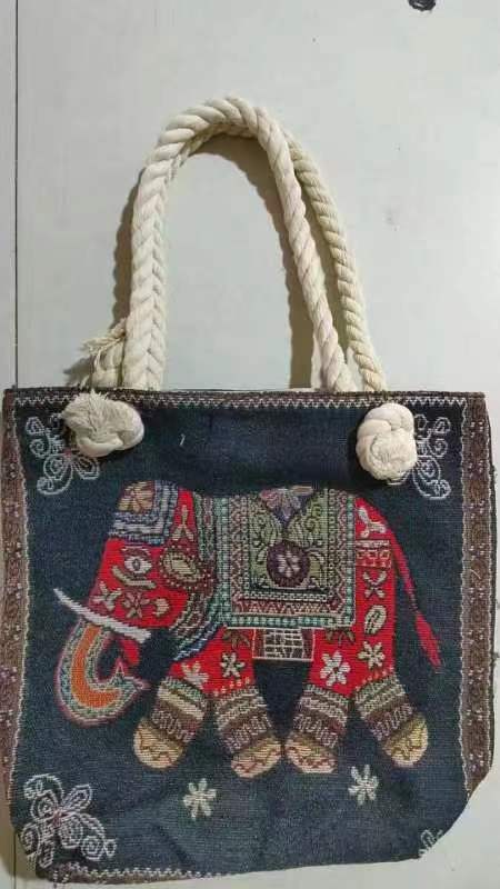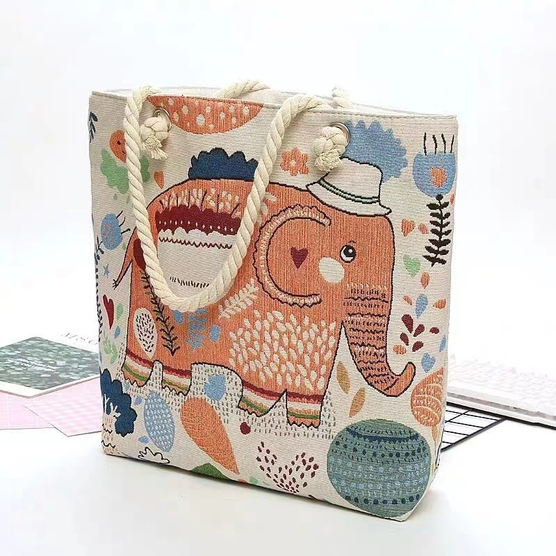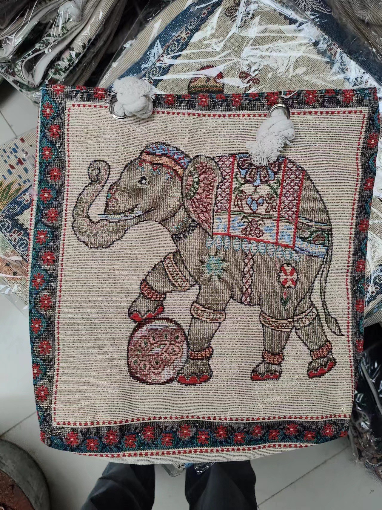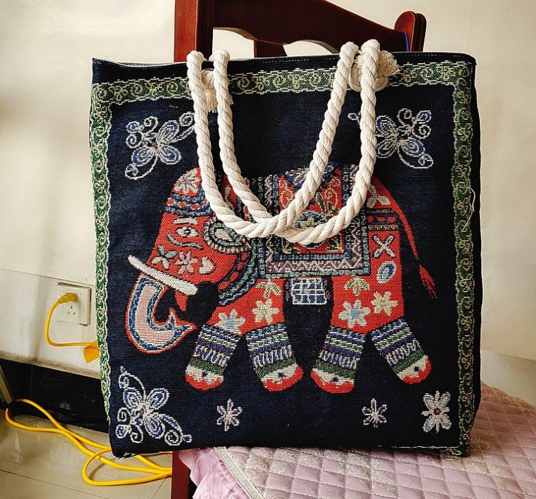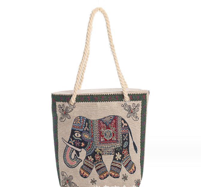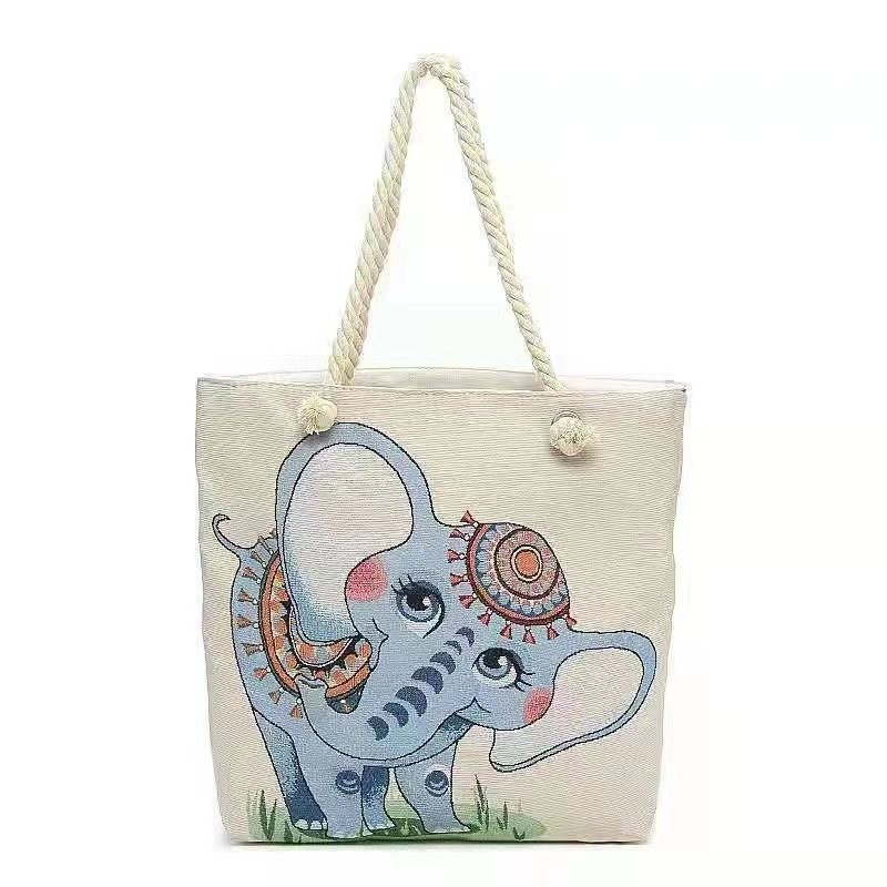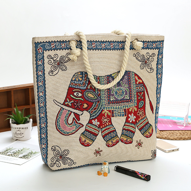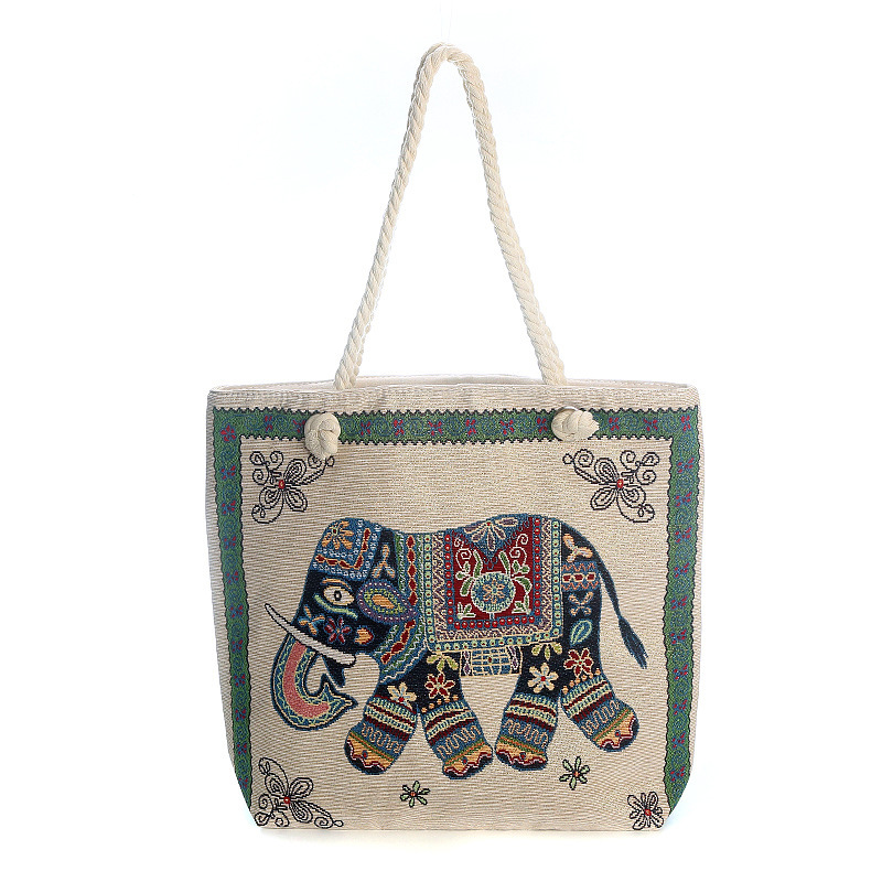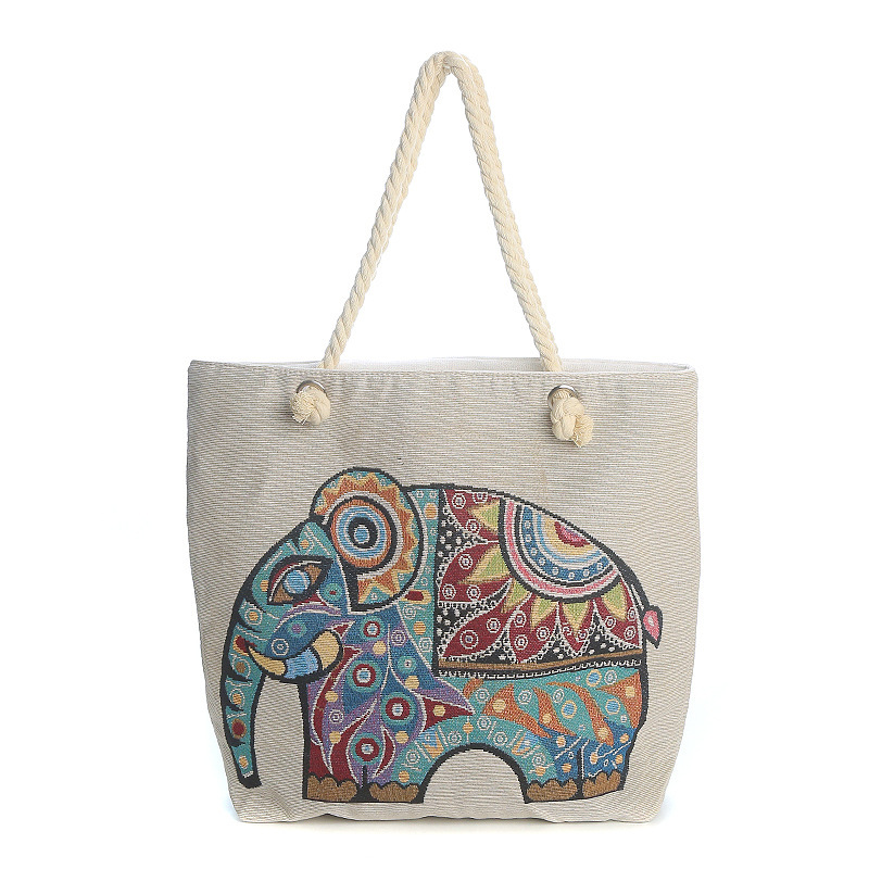 民族风中号帆布包双面刺绣大象卡通单肩包女士大容量旅游景点包
