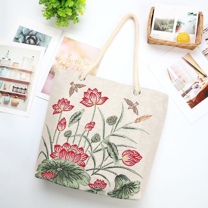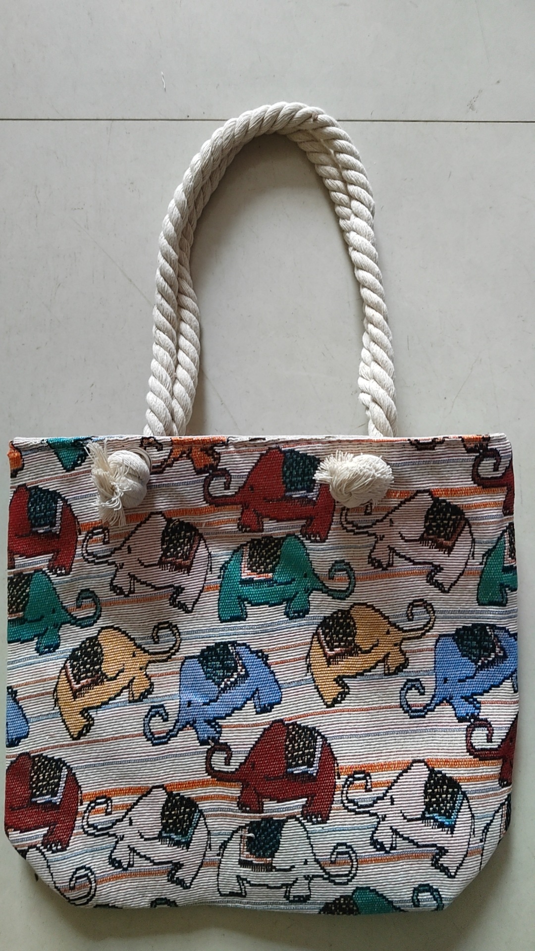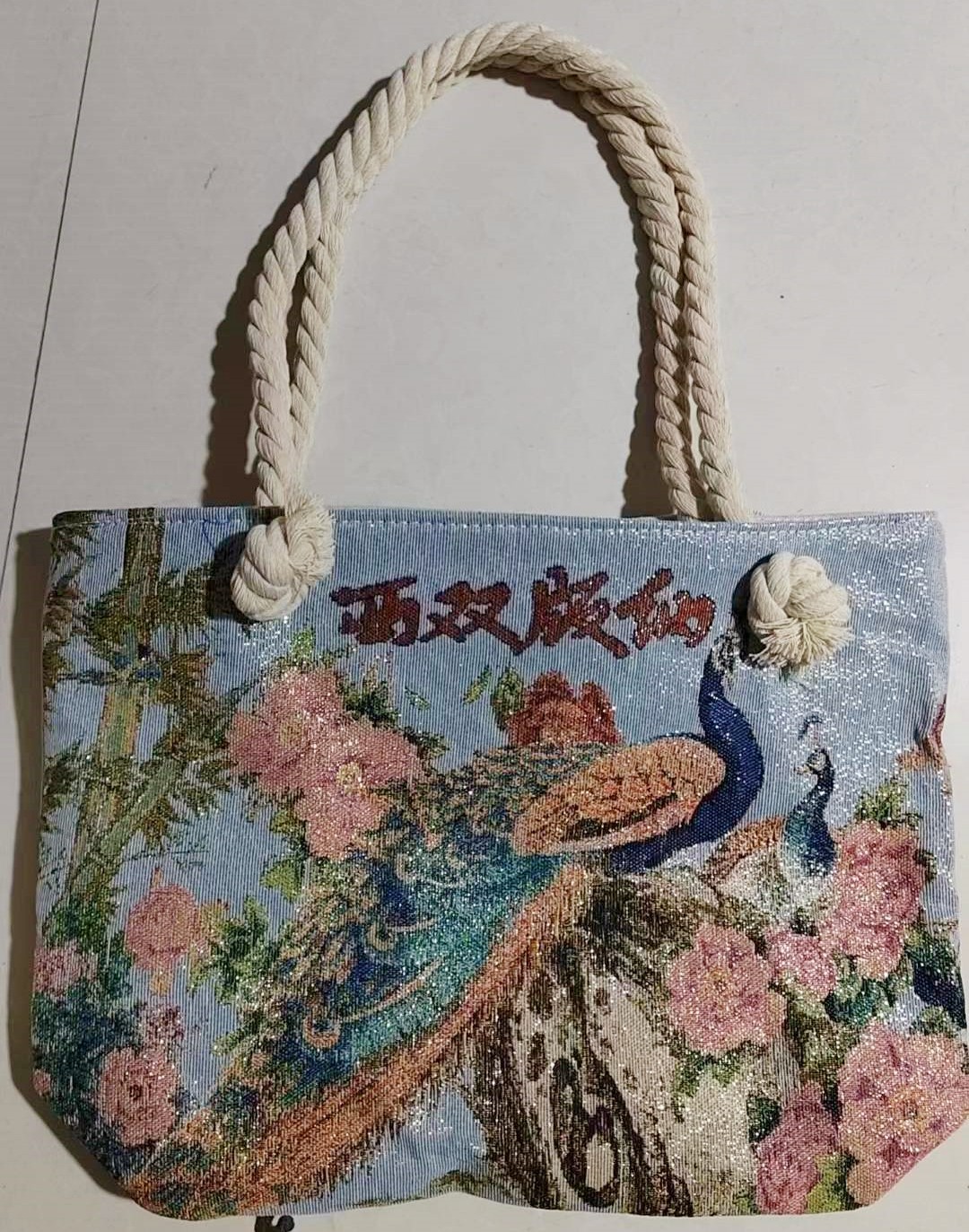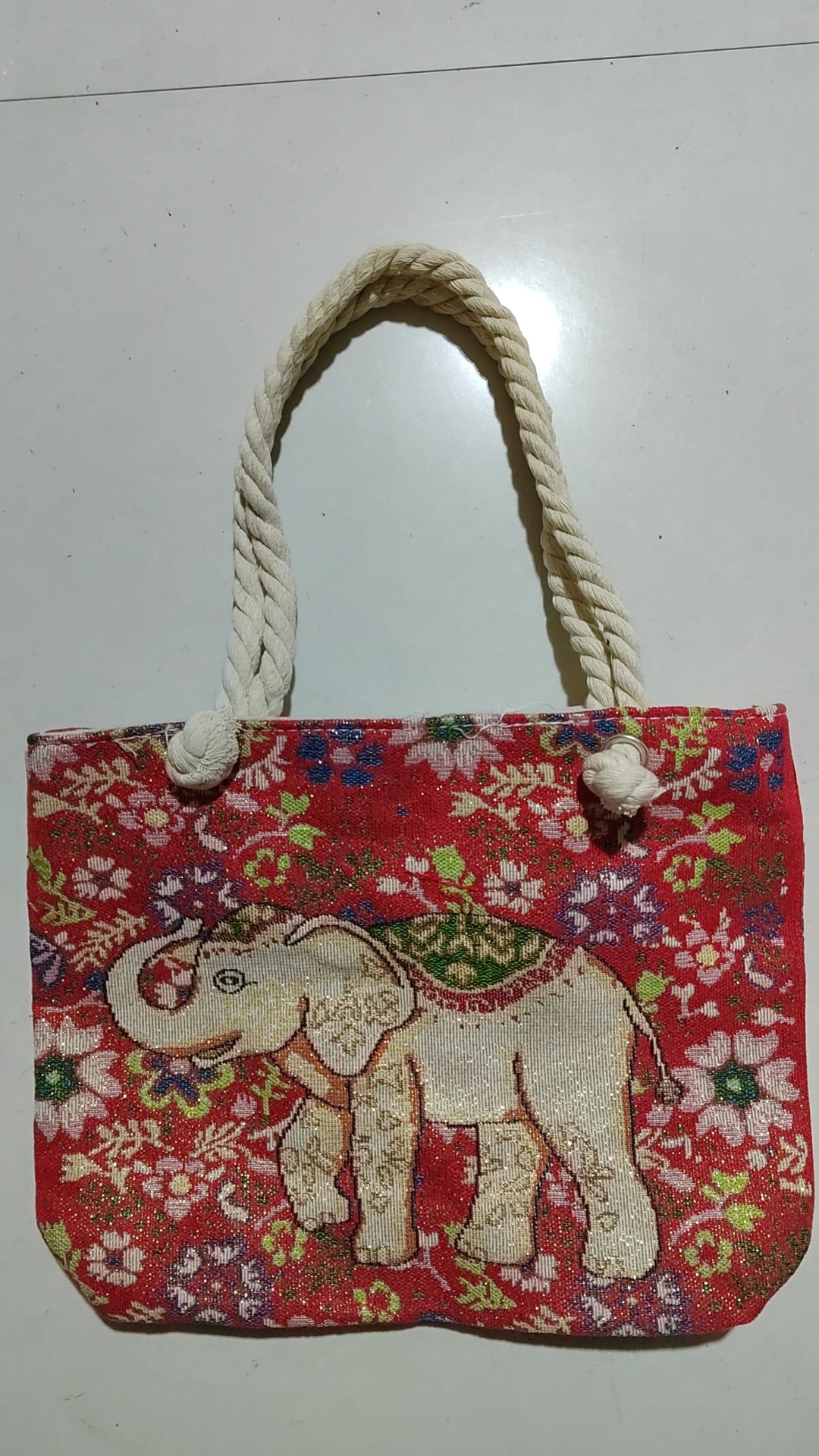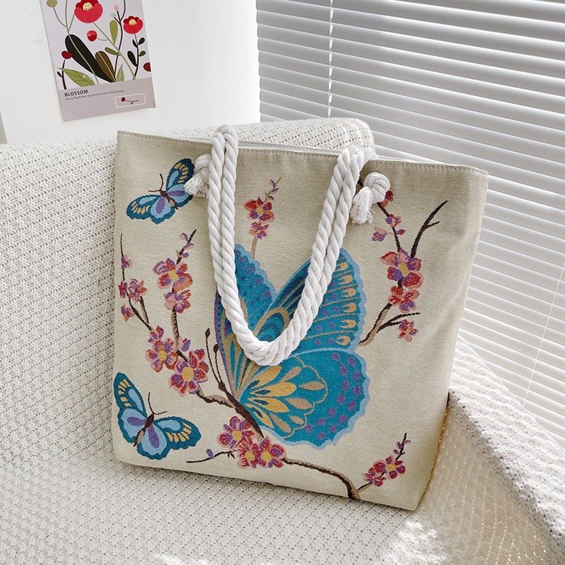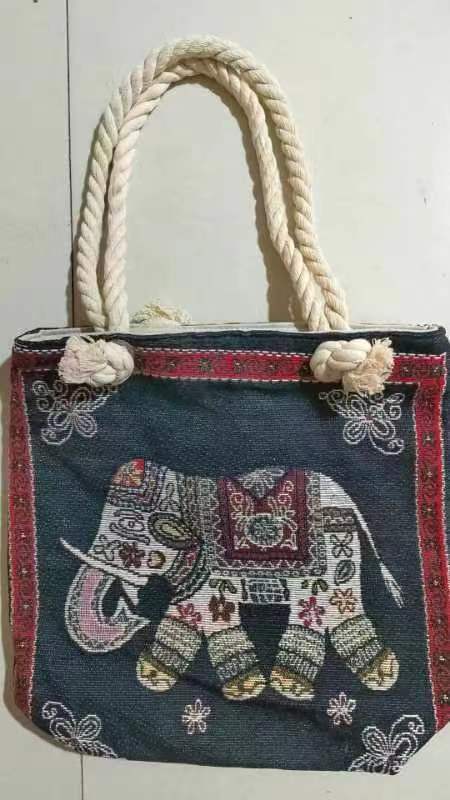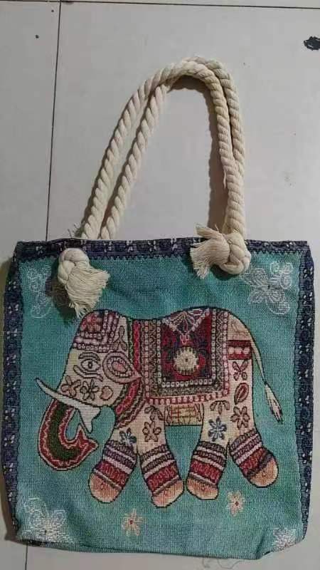 民族风中号帆布包双面刺绣大象卡通单肩包女士大容量旅游景点包