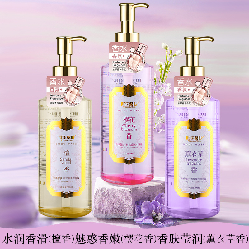 批发世季馨肤樱花草香沐浴露持久留香檀香水润丝滑沐浴乳正品