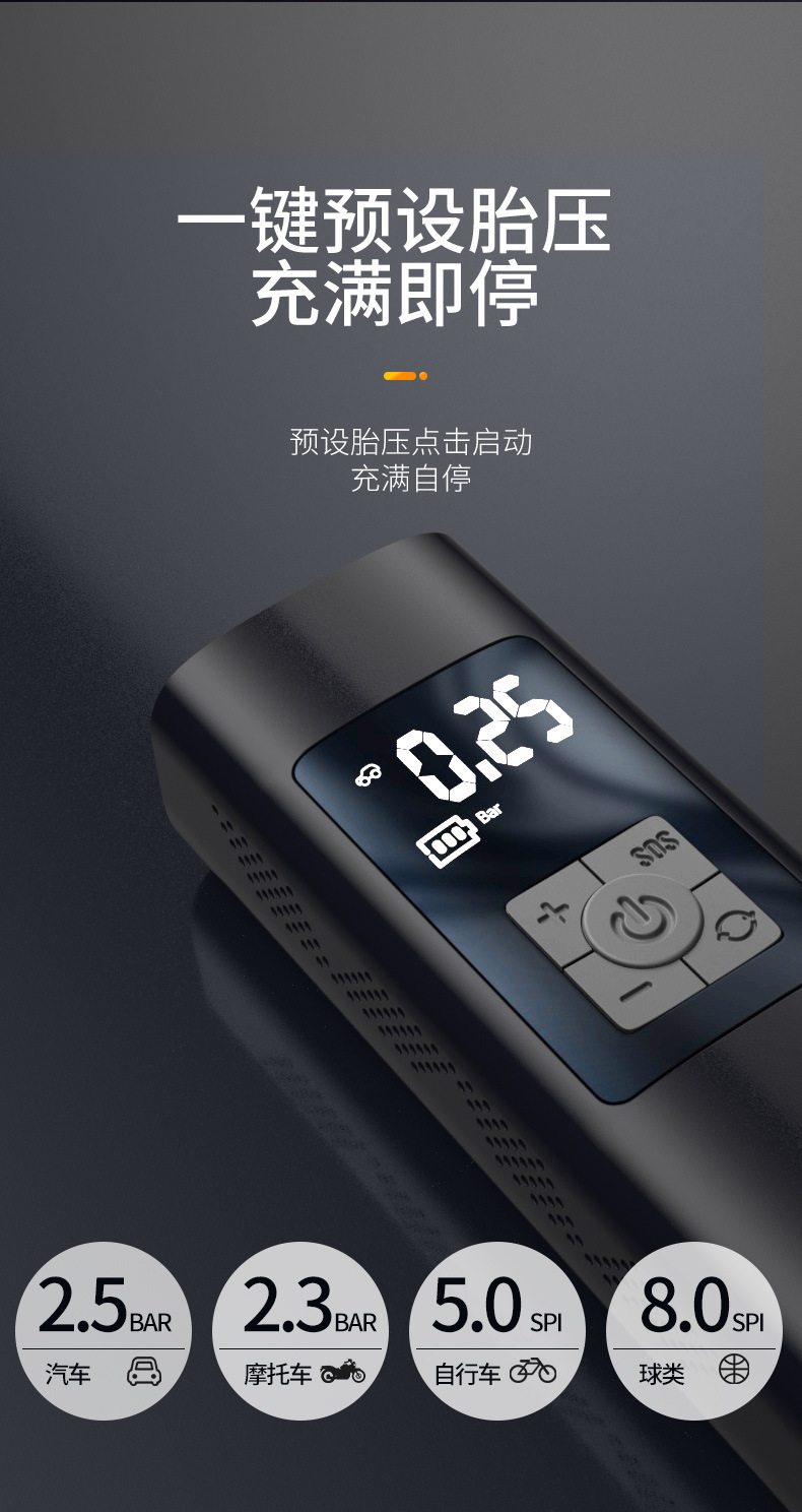 跨境车载充气泵无线便携式汽车数显打气筒大功率轮胎12v打气泵