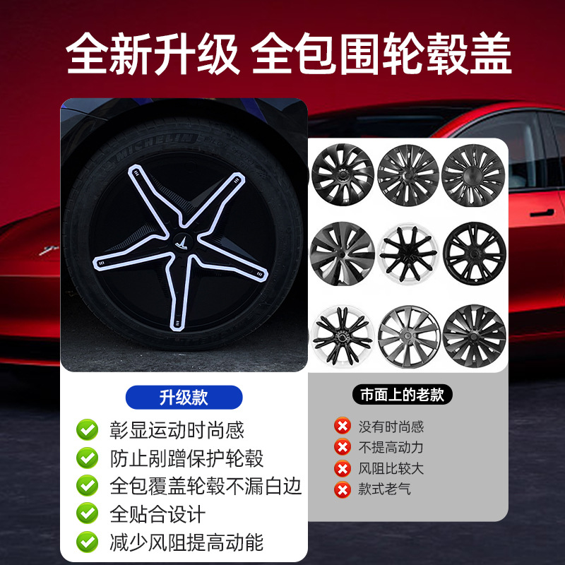 适用ModelY/3特斯拉轮毂盖18/19寸tesla全包轮毂罩防刮防撞装饰罩