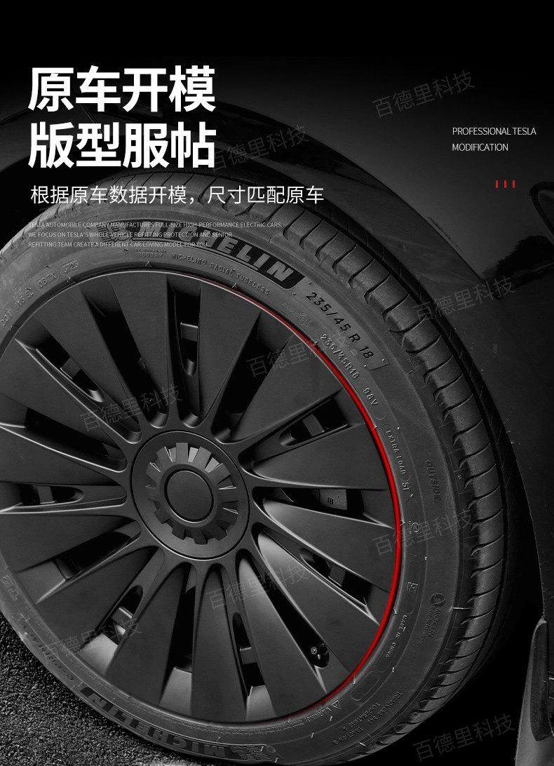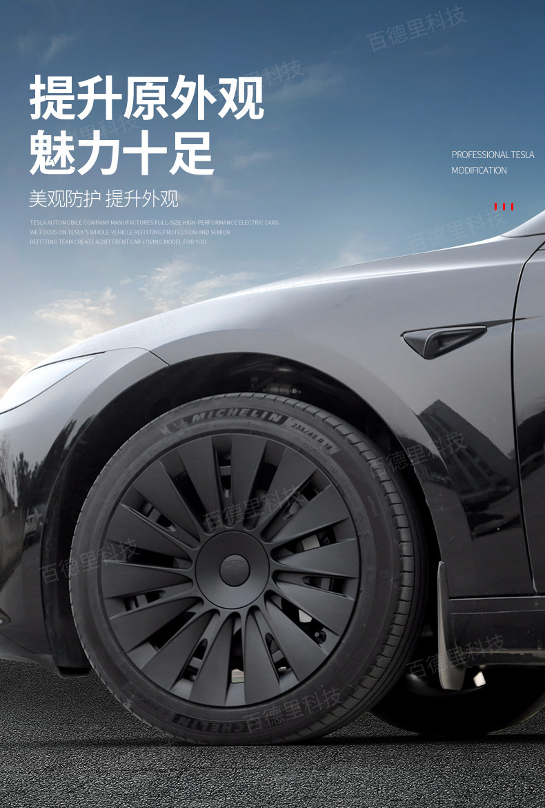 适用于tesla特斯拉焕新版Model 3直边轮毂圈太阳神轮毂罩改装配件