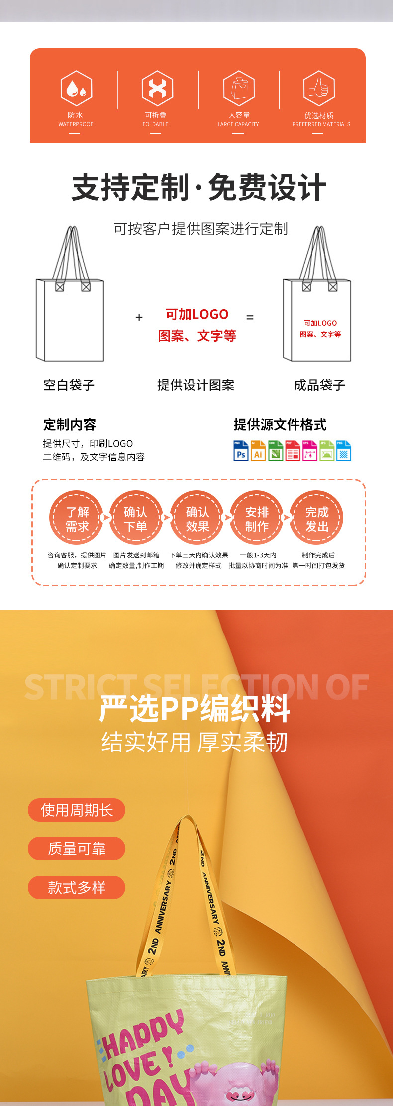 pp手提编织袋定制 覆膜彩印大容量购物收纳礼品袋 塑料防水蛇皮袋