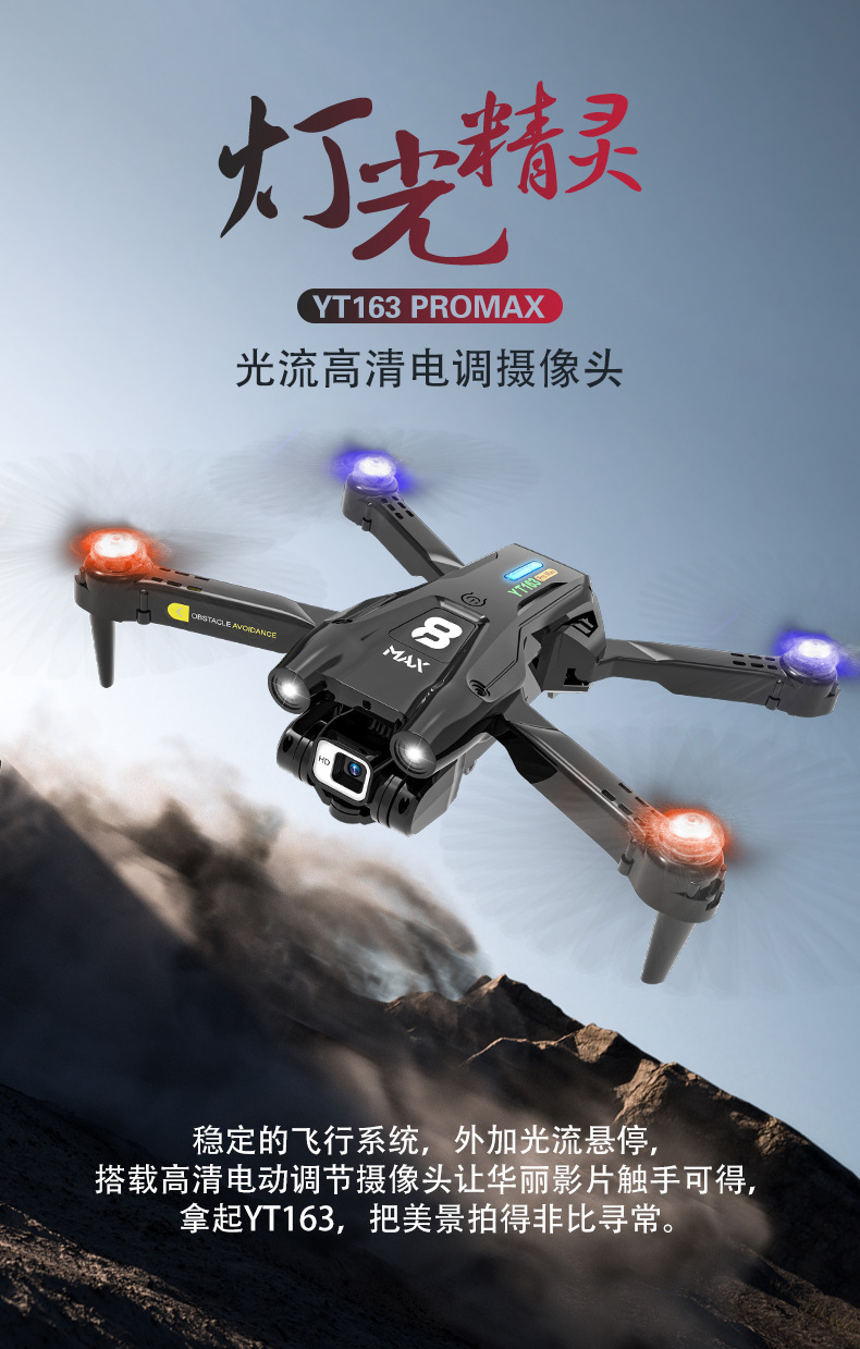 YT163电调高清相机光流航拍无人机避障防撞遥控飞机带灯光飞行器