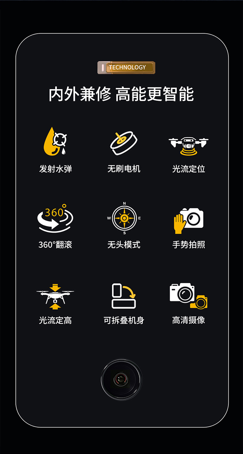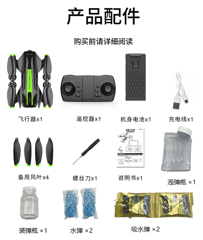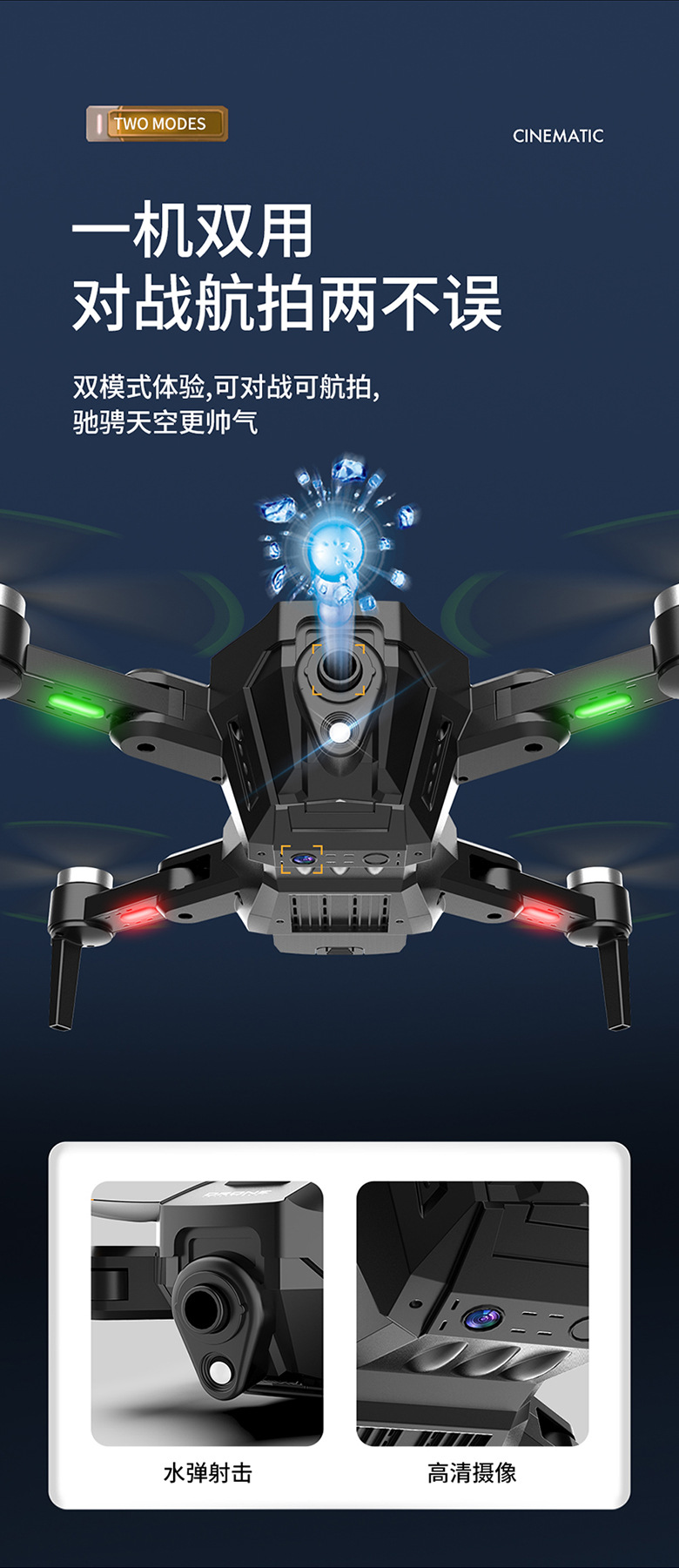 新品无刷打弹无人机双摄航拍四轴飞行器水弹互动折叠遥控飞机玩具