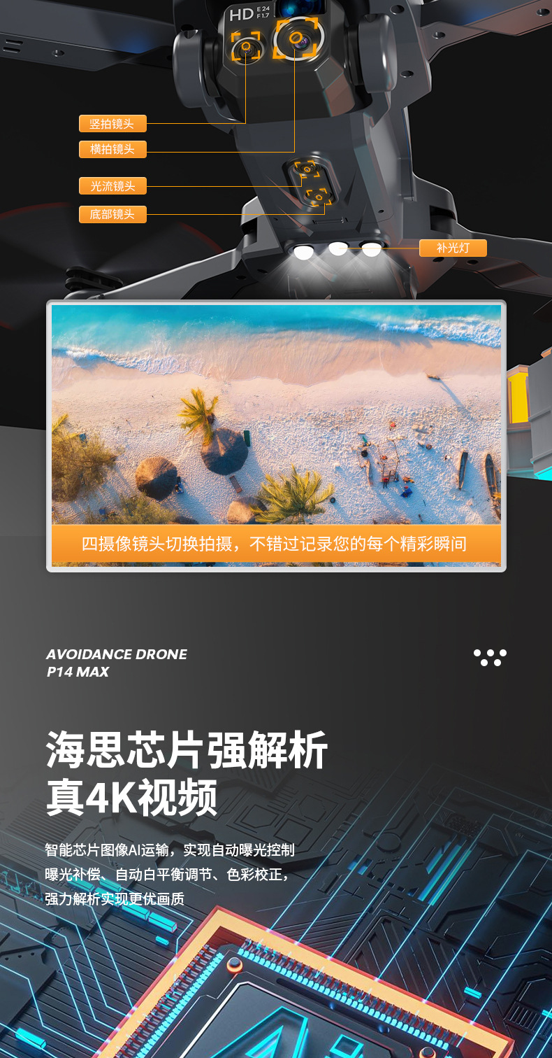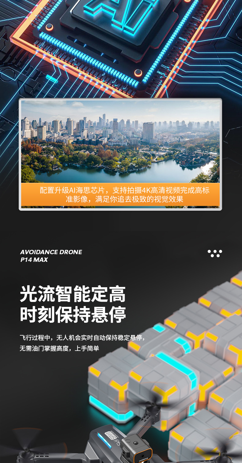 跨境新品P14无人机高清航拍悬停遥控飞机GPS自动返航折叠四轴飞行