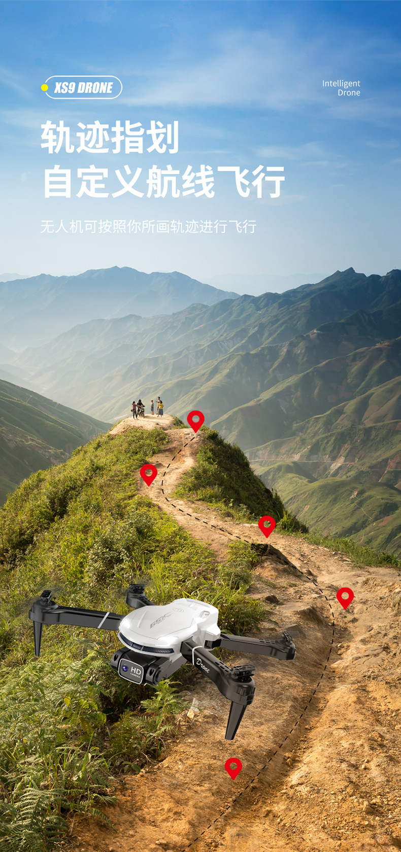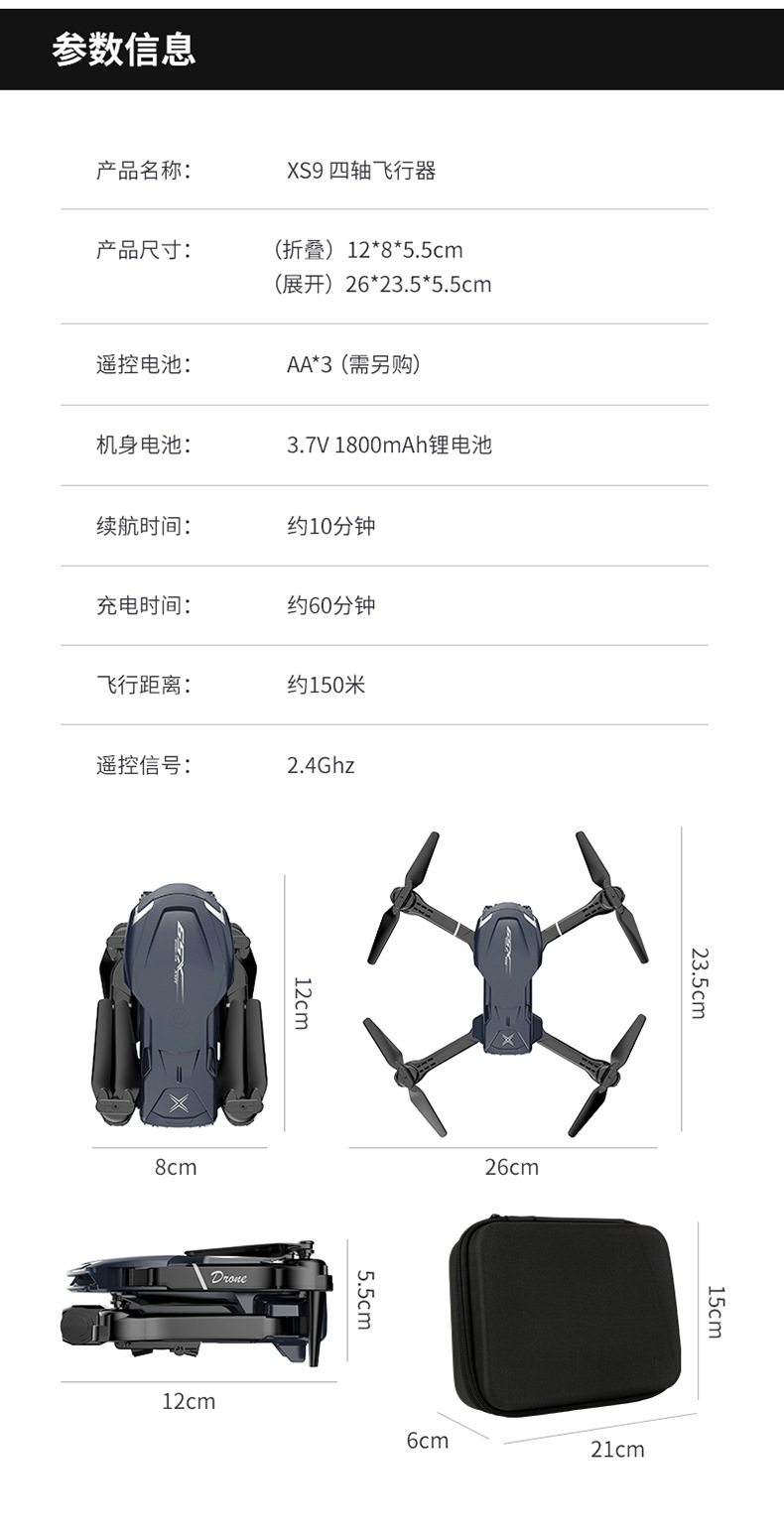跨境无人机XS9双摄像头高清航拍折叠飞行器定高遥控飞机玩具