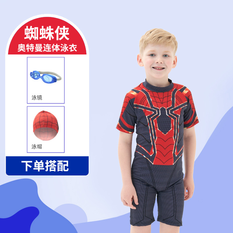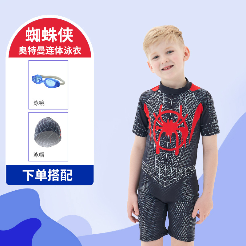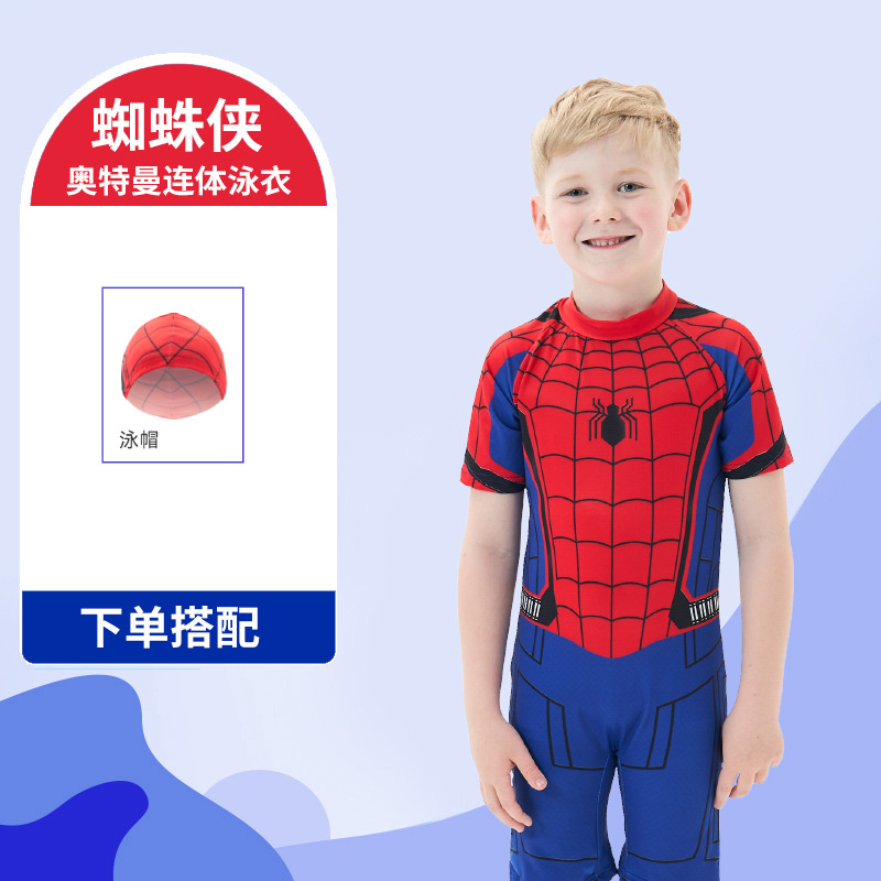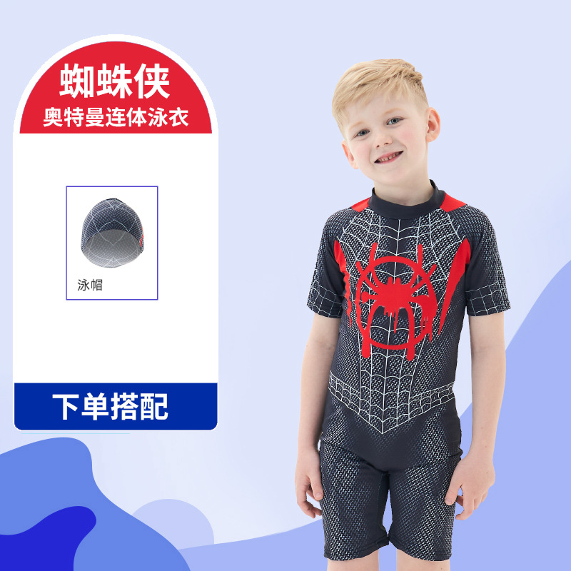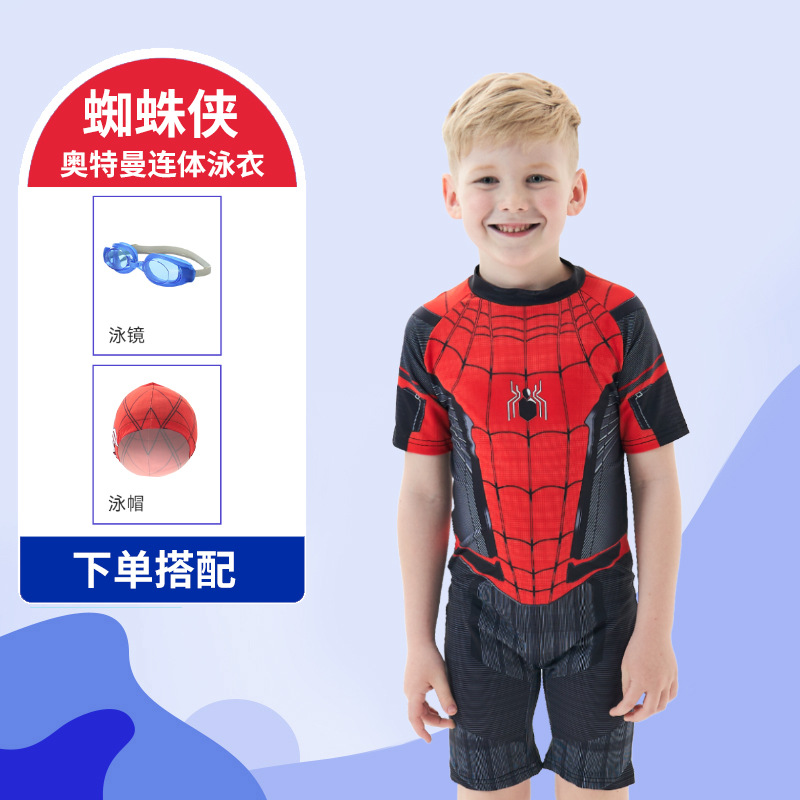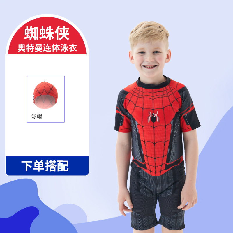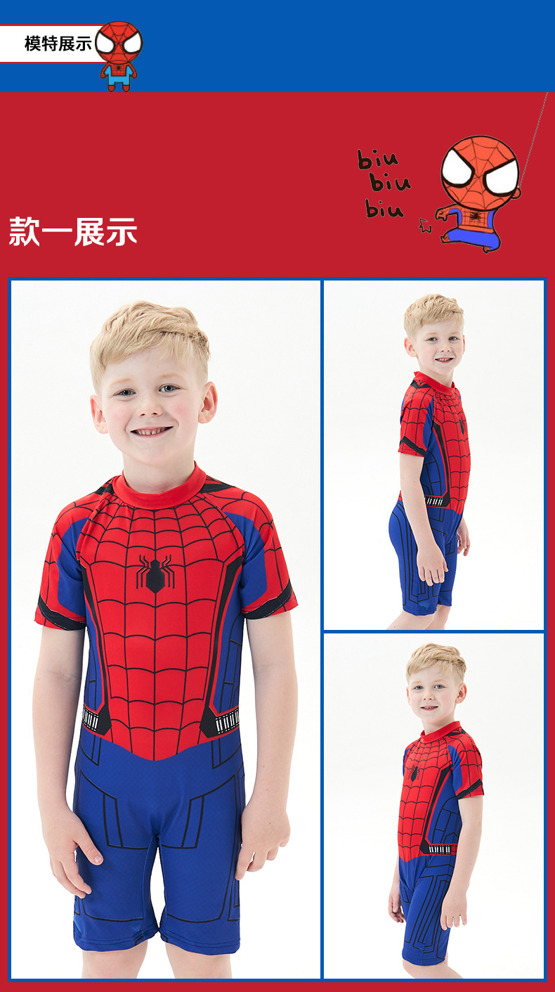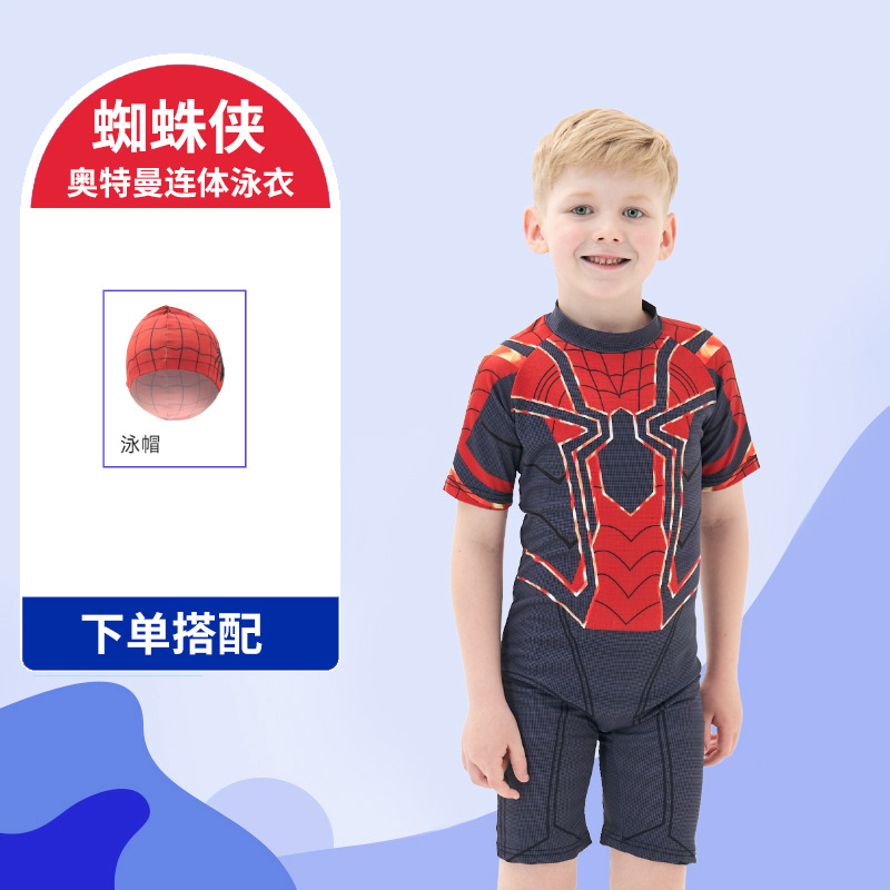 儿童泳衣男童连体蜘蛛侠短袖小中大童宝宝防晒速干cos服厂家批发