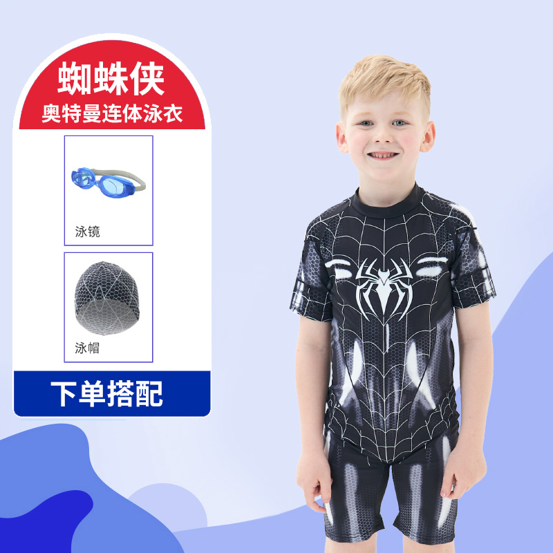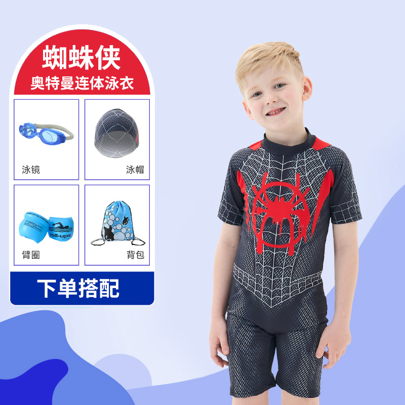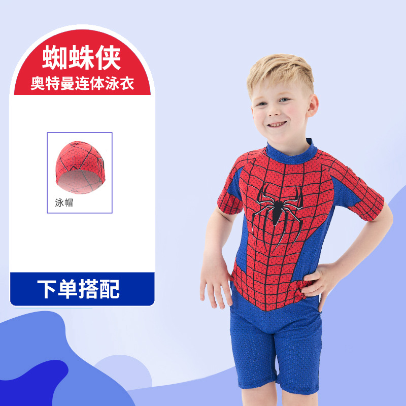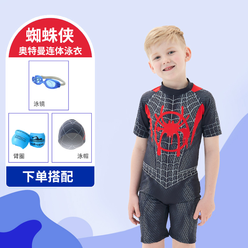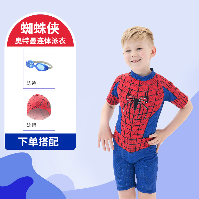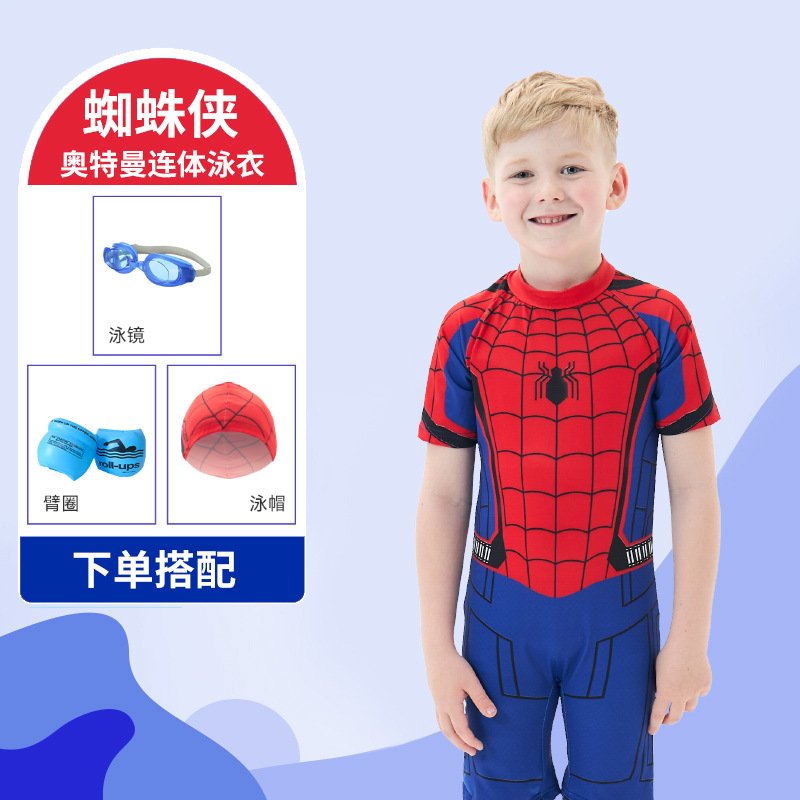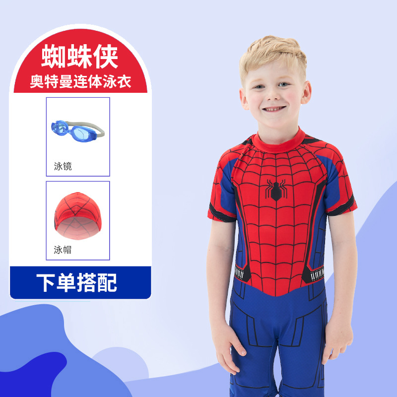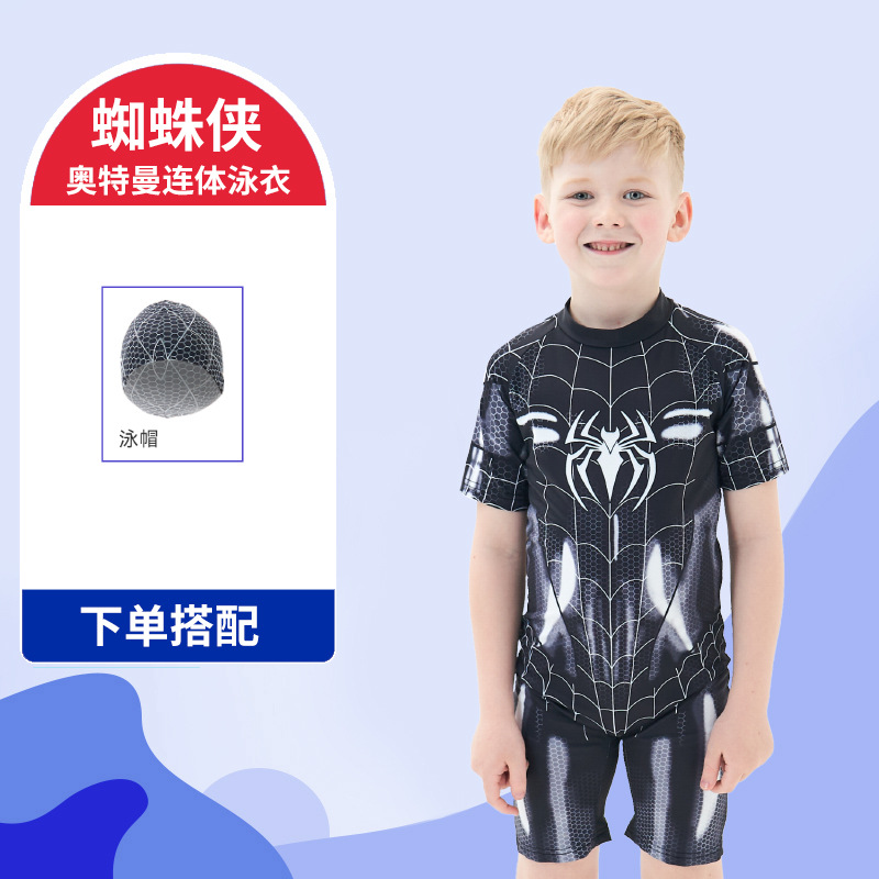 儿童泳衣男童连体蜘蛛侠短袖小中大童宝宝防晒速干cos服厂家批发