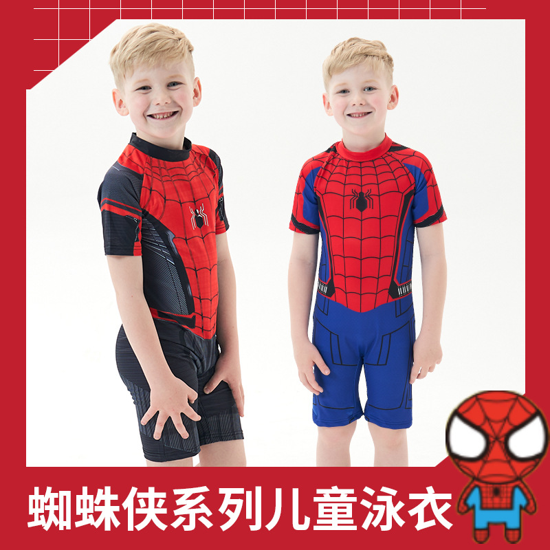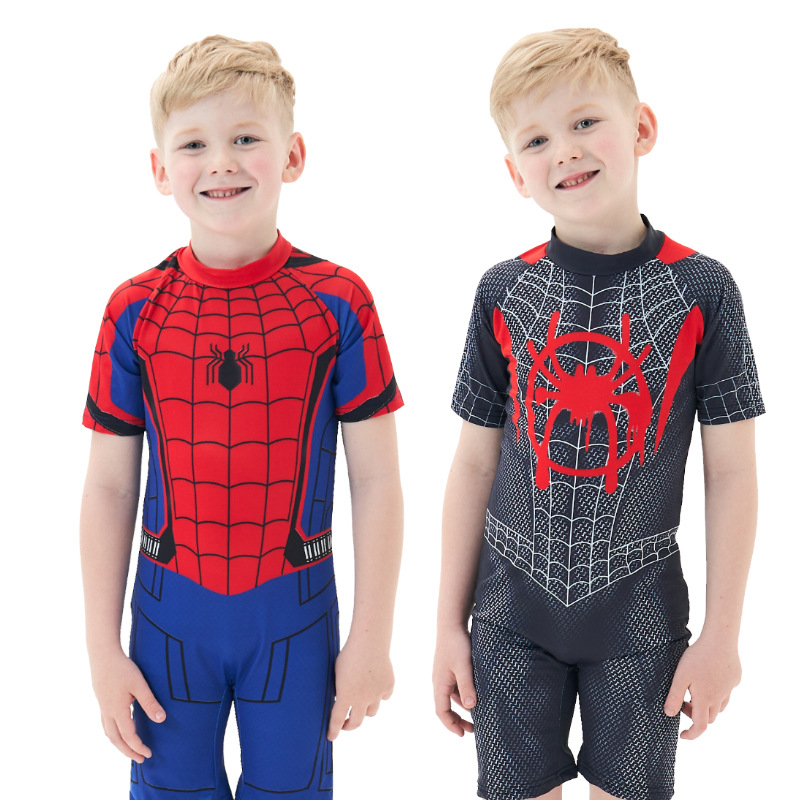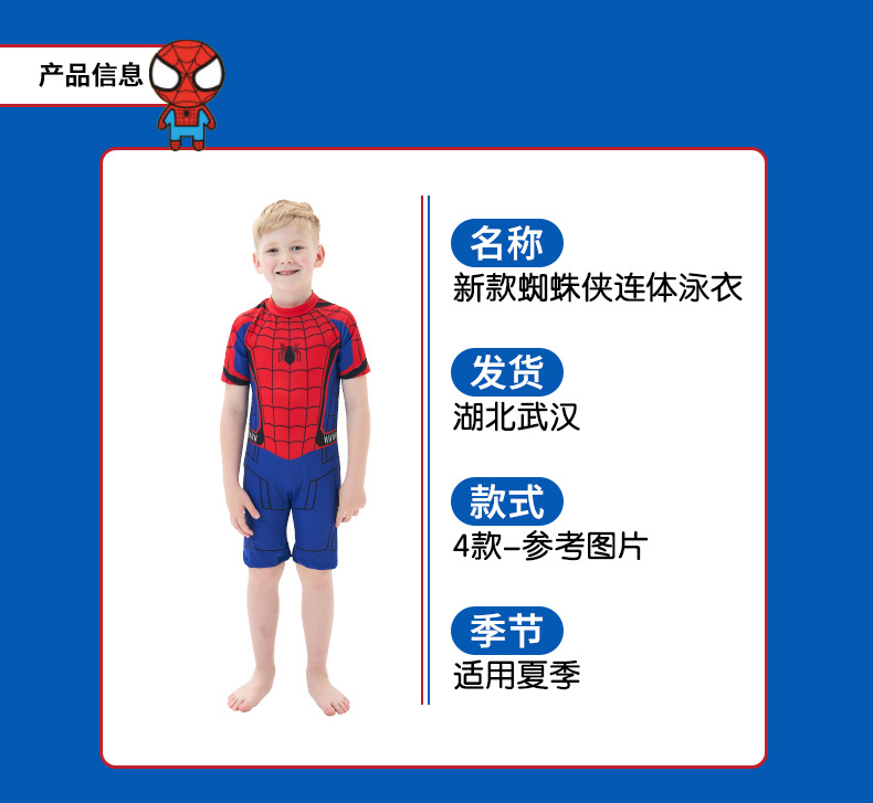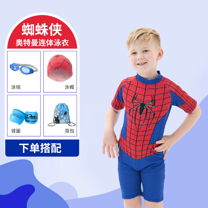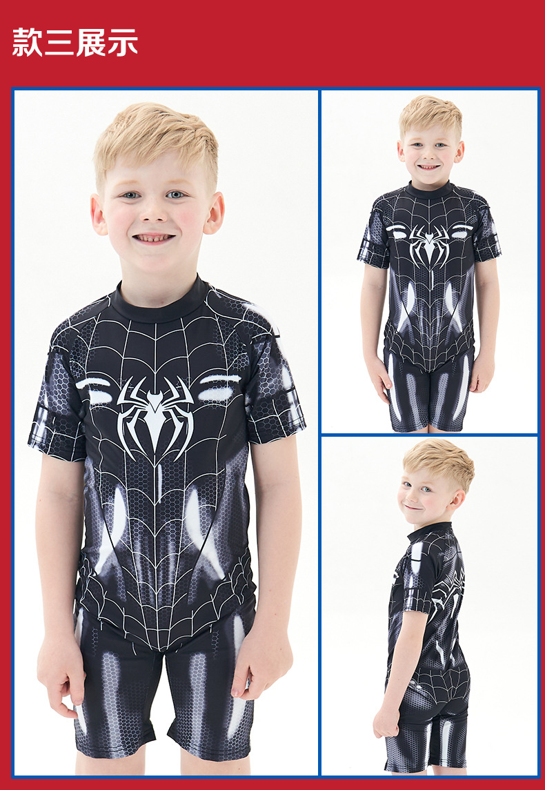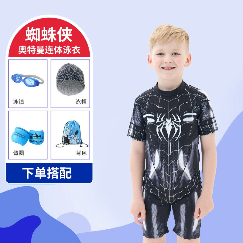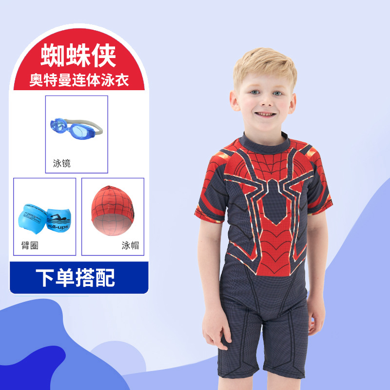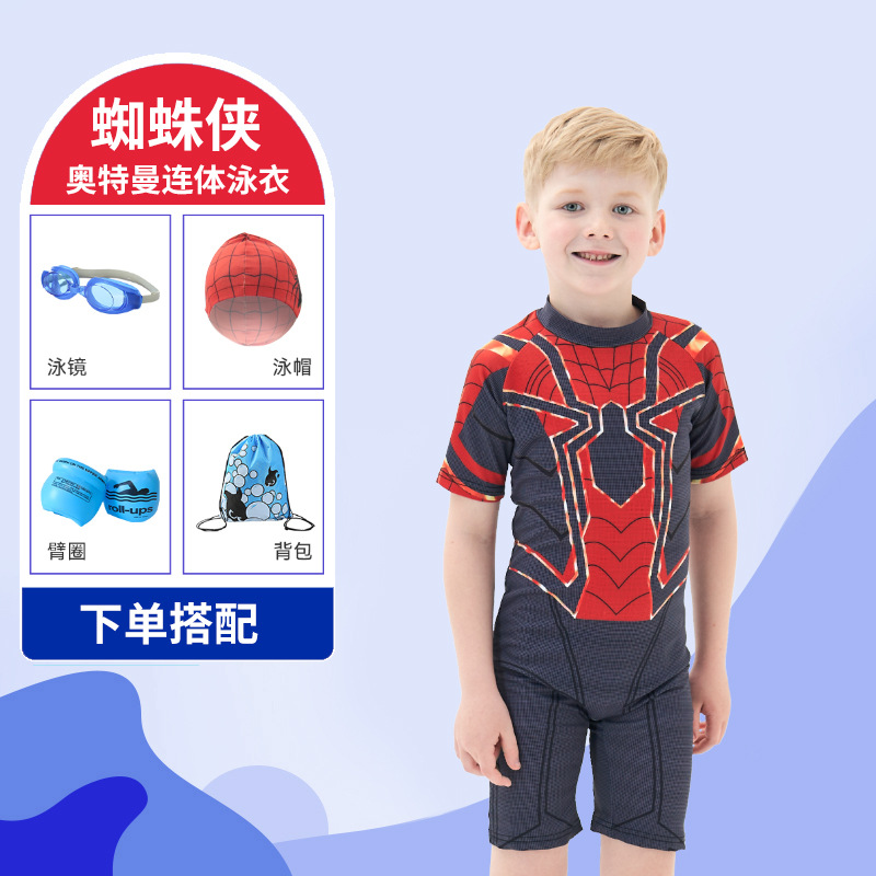 儿童泳衣男童连体蜘蛛侠短袖小中大童宝宝防晒速干cos服厂家批发