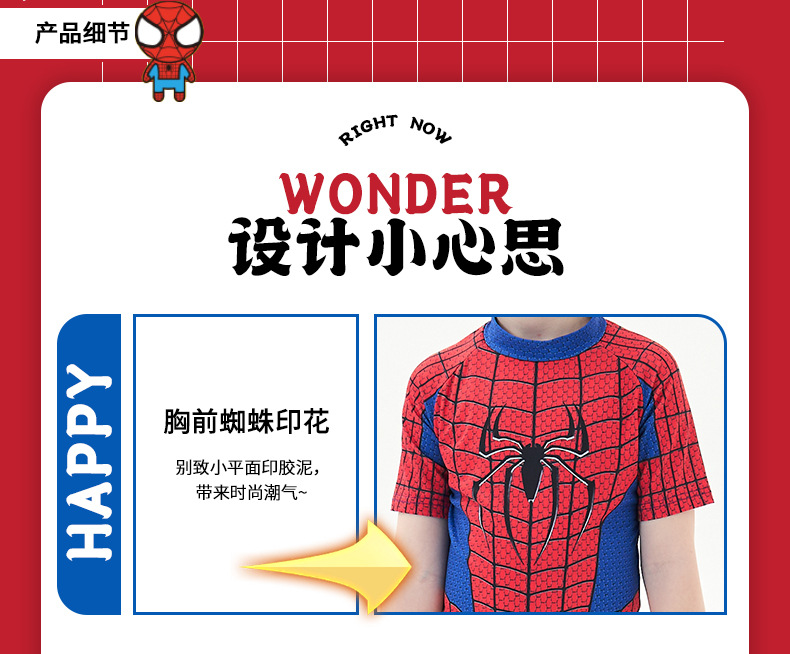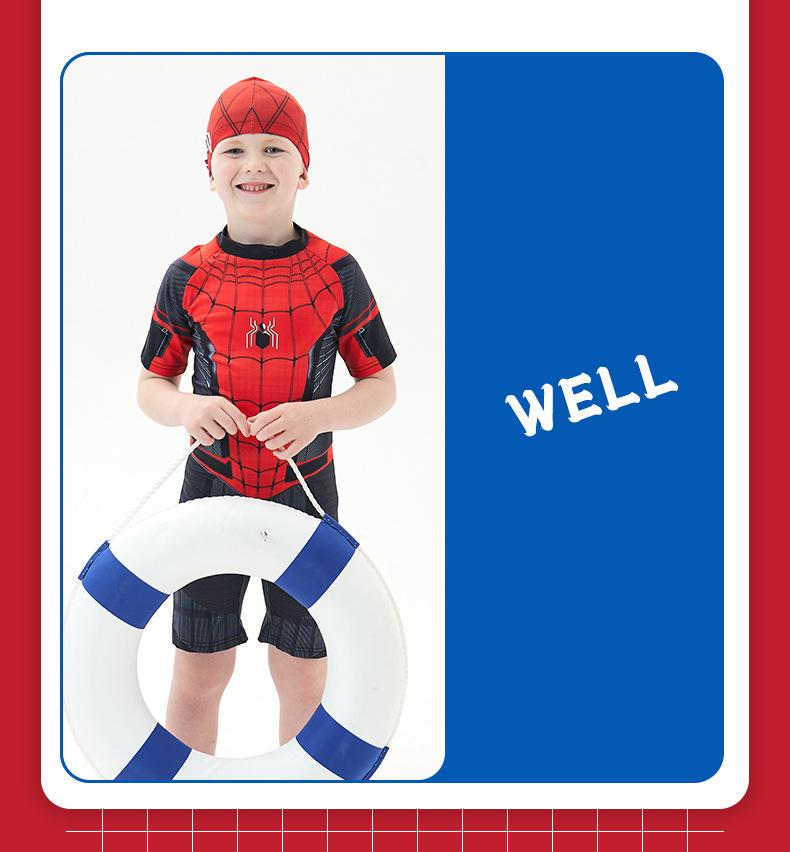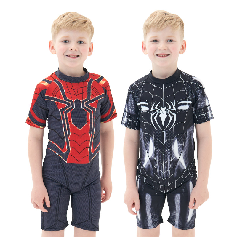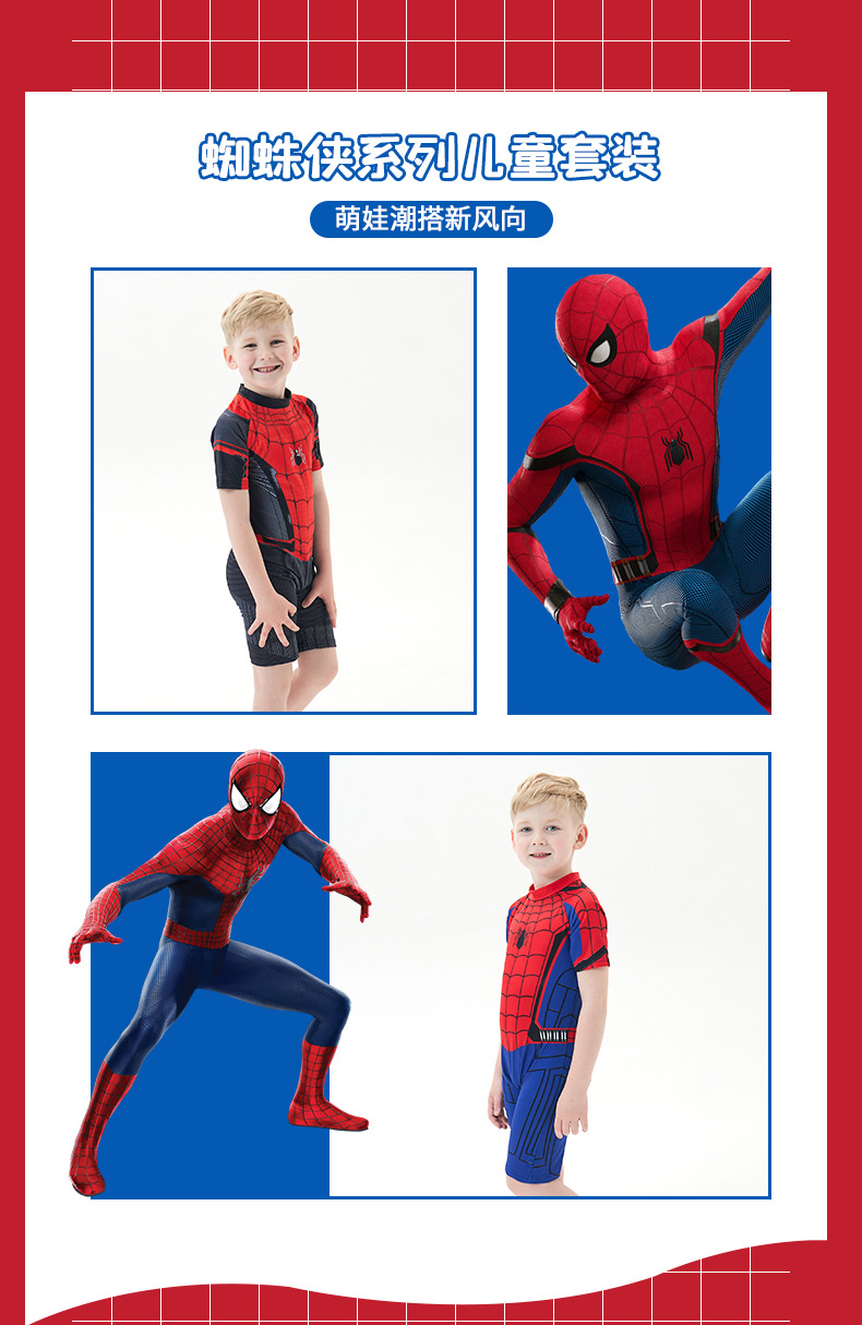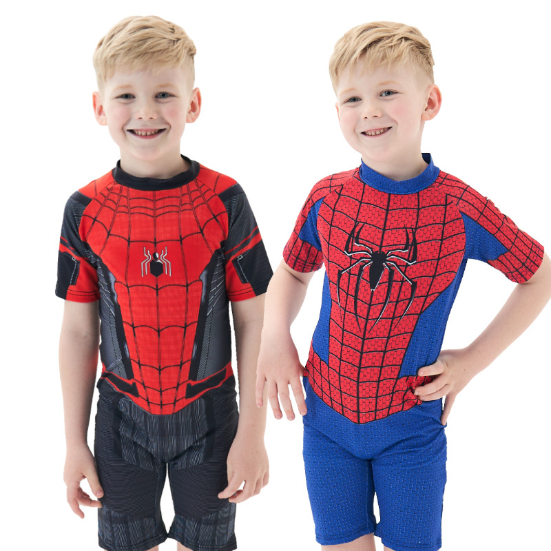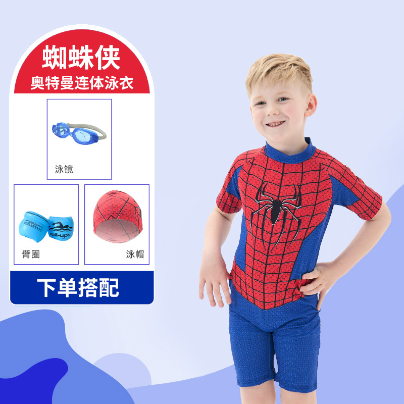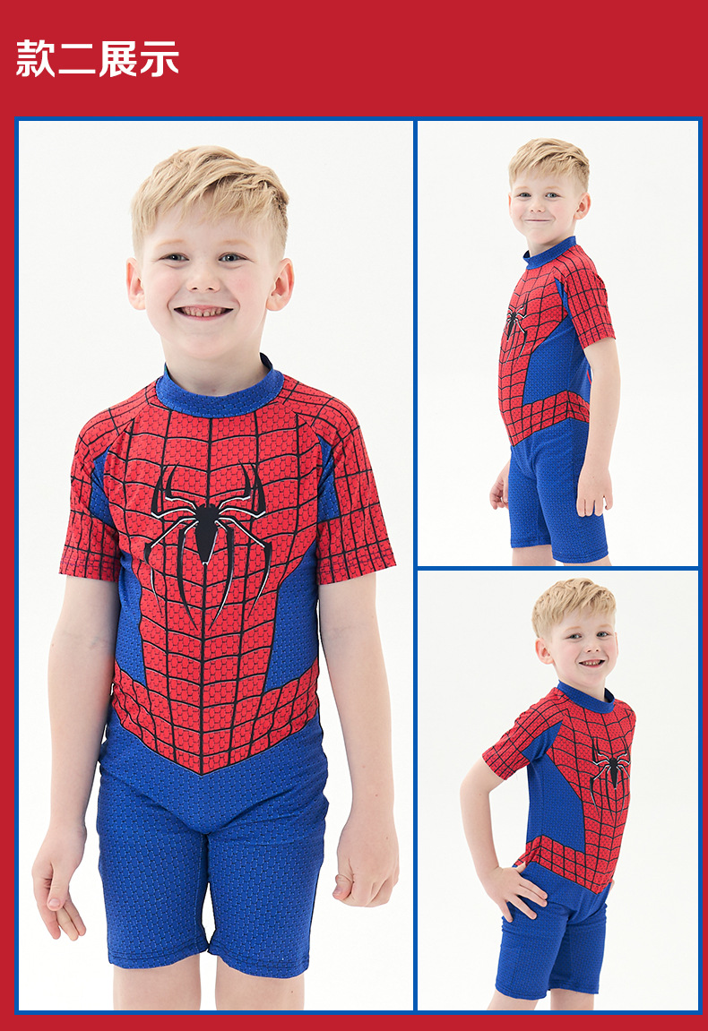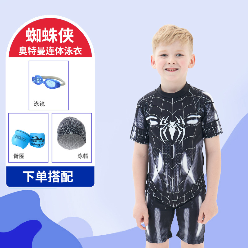 儿童泳衣男童连体蜘蛛侠短袖小中大童宝宝防晒速干cos服厂家批发