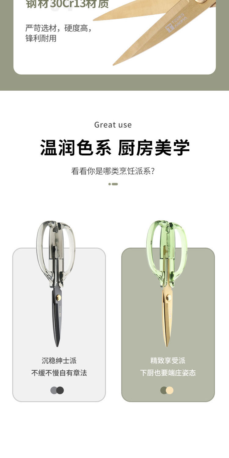 特恩斯厨房剪刀家用亚克力多功能海鲜剪烤肉蔬菜剪鸡骨剪代发包邮