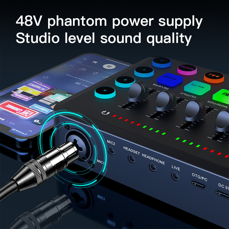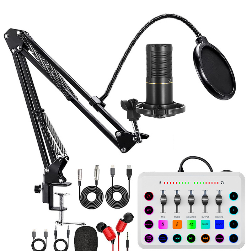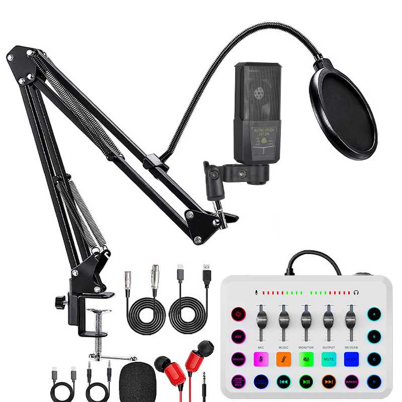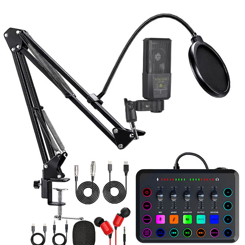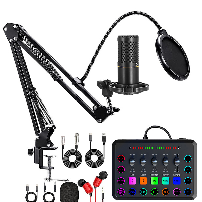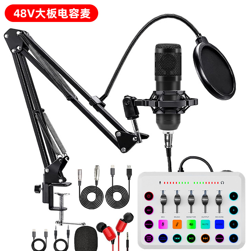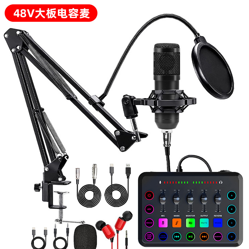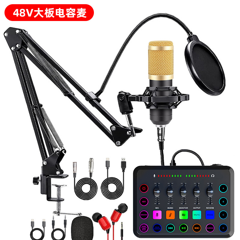 48v大振膜声卡F11英文声卡设备直播全套手机唱歌电脑录音专业声卡