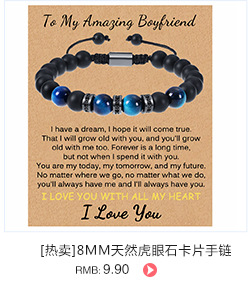 跨境6MM磨砂石手链亚克力英文字母Mom串珠水晶手链妈妈贺卡礼物