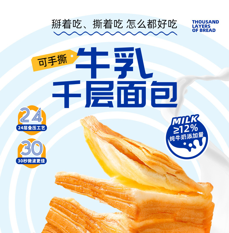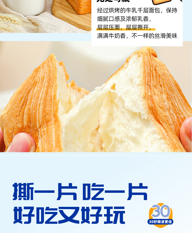 网红零食牛乳千层手撕面包早餐零食吐司小面包独立包装一件批发