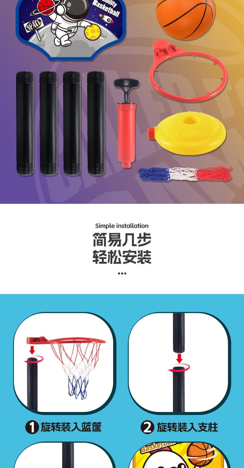 跨境热销儿童篮球框投篮架室内家用可升降移动男孩玩具幼儿园礼物