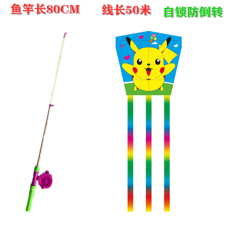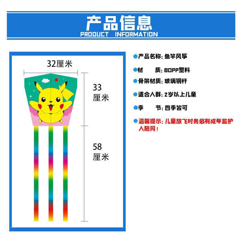 2024新款儿童手持鱼竿风筝微风易飞儿童风筝地摊玩具公园风筝厂家