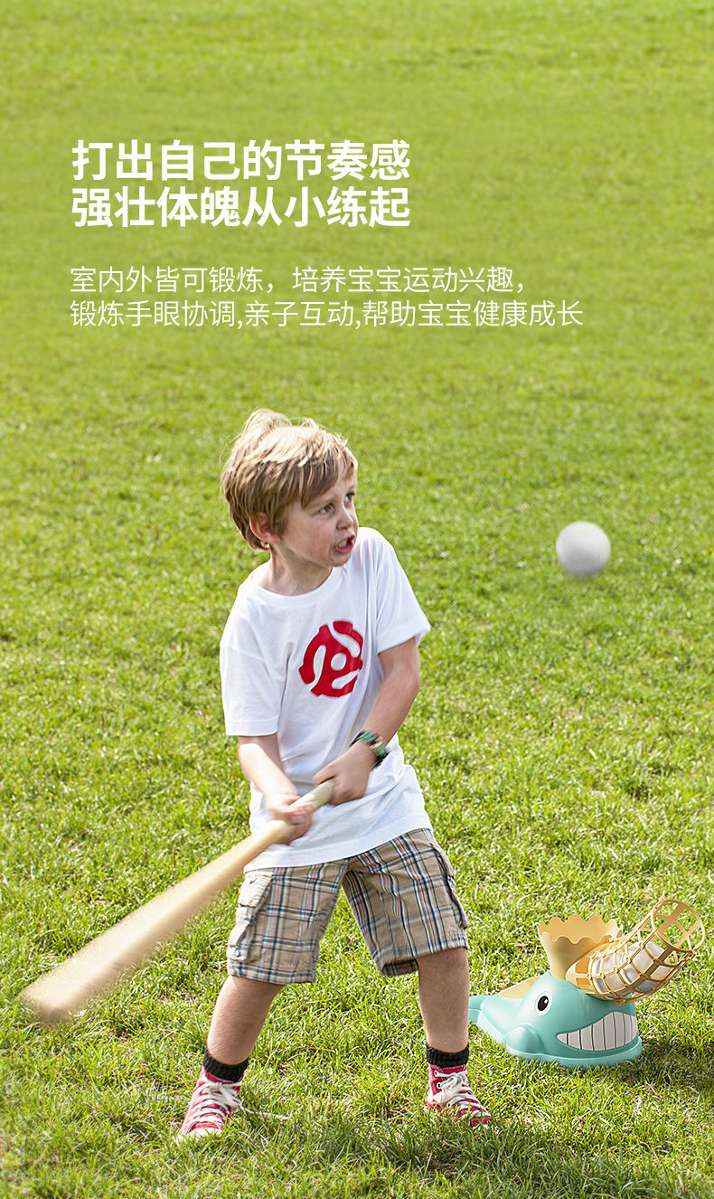 儿童脚踩弹射训练棒球套装亲子室内户外运动自动棒球发射器玩具