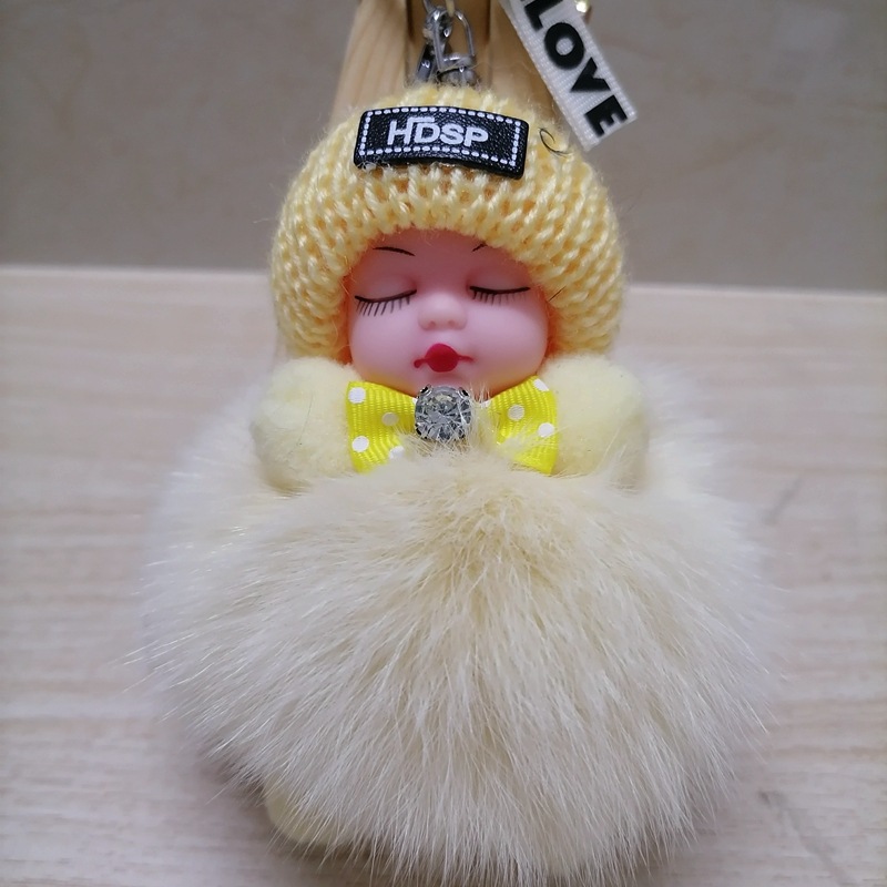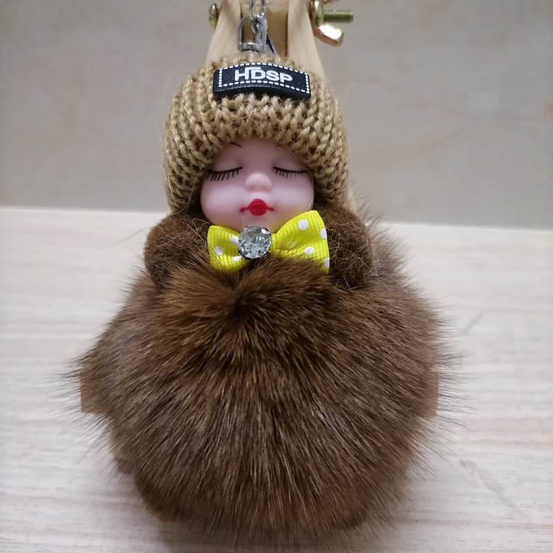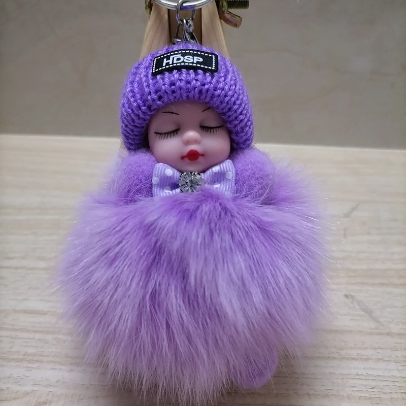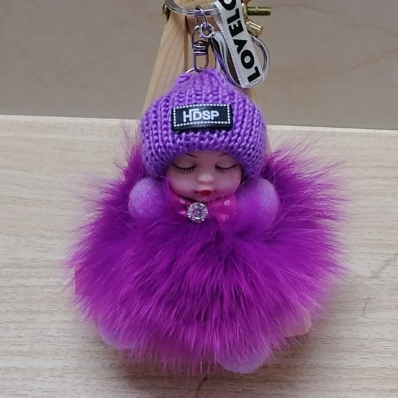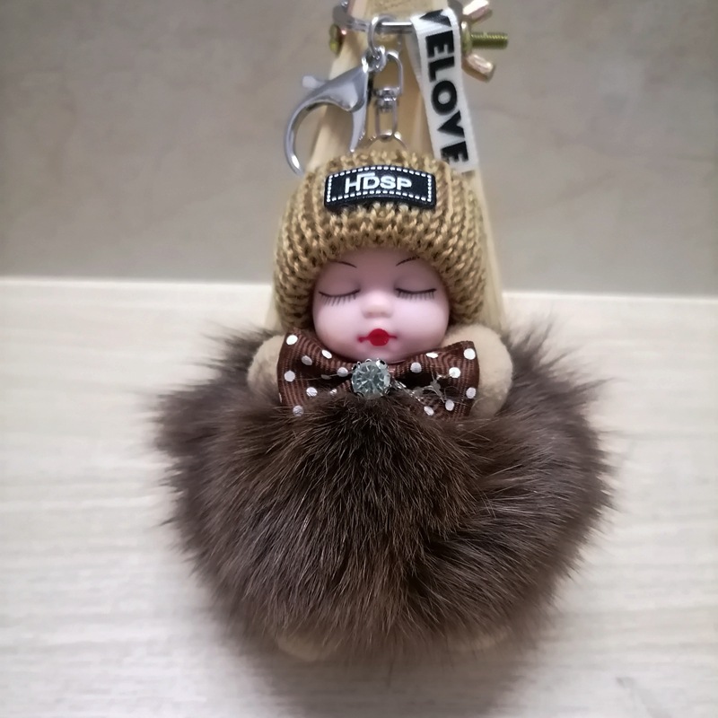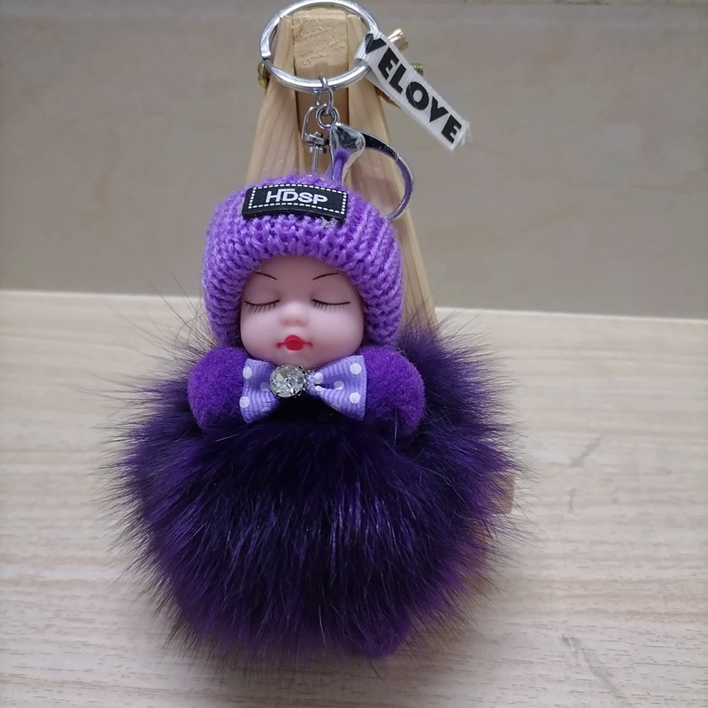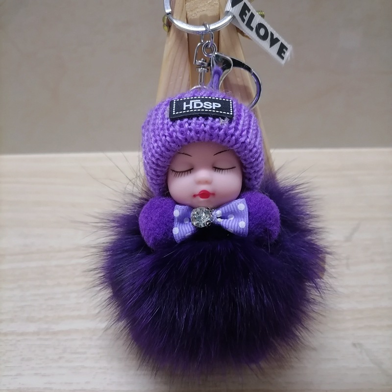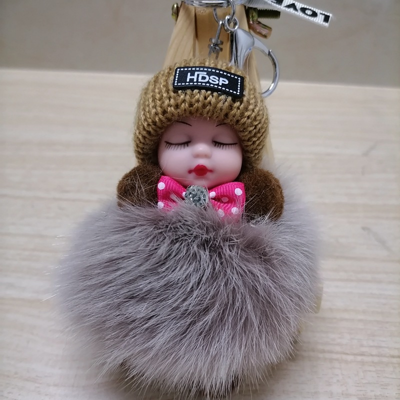毛绒绒可爱睡眠娃娃狐狸毛包包挂饰汽车配件钥匙扣可爱钥匙扣