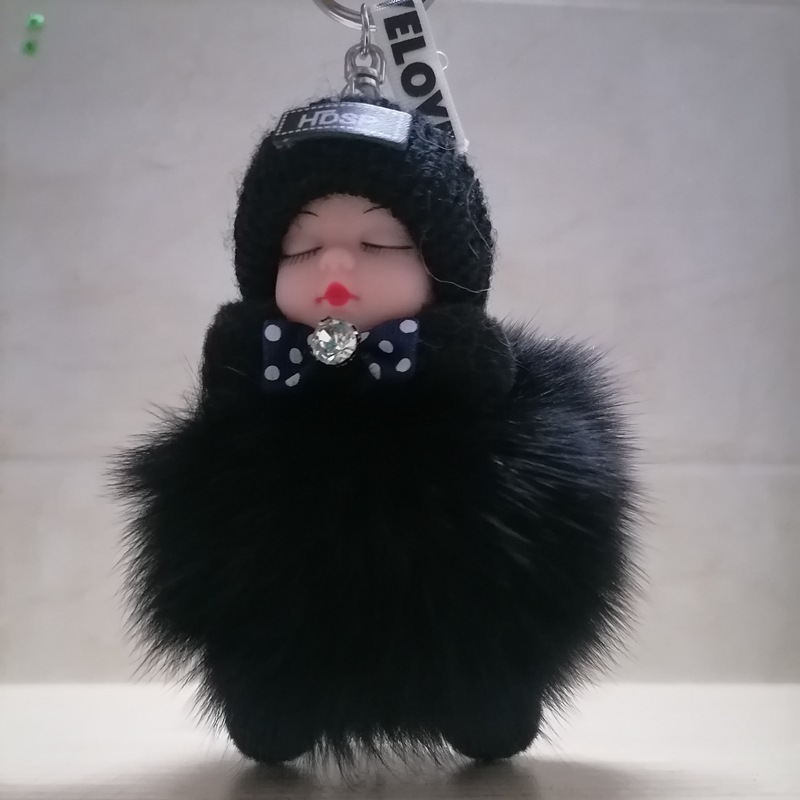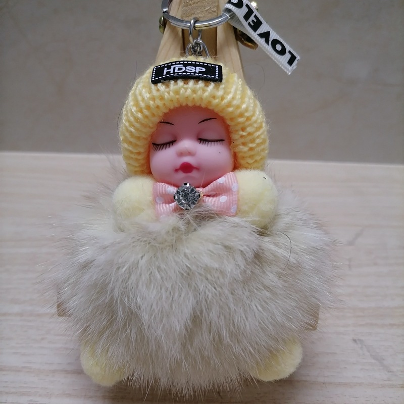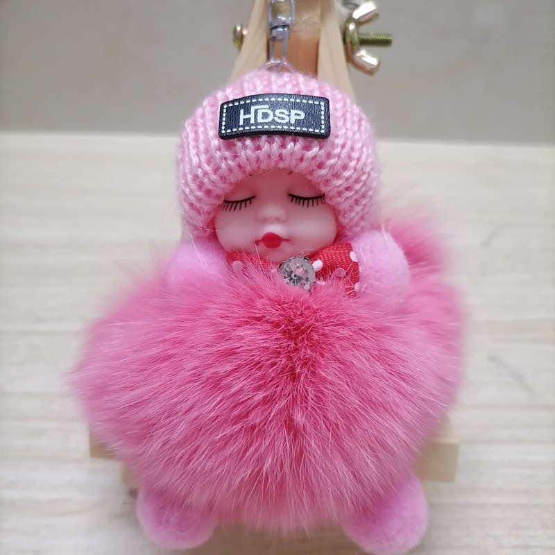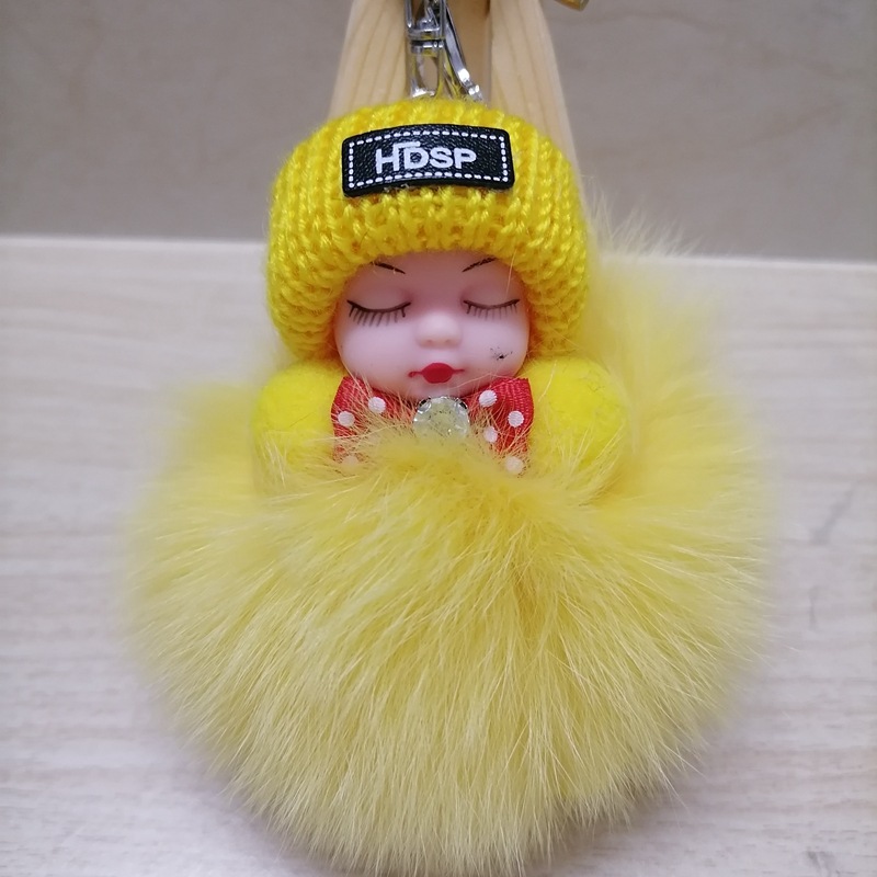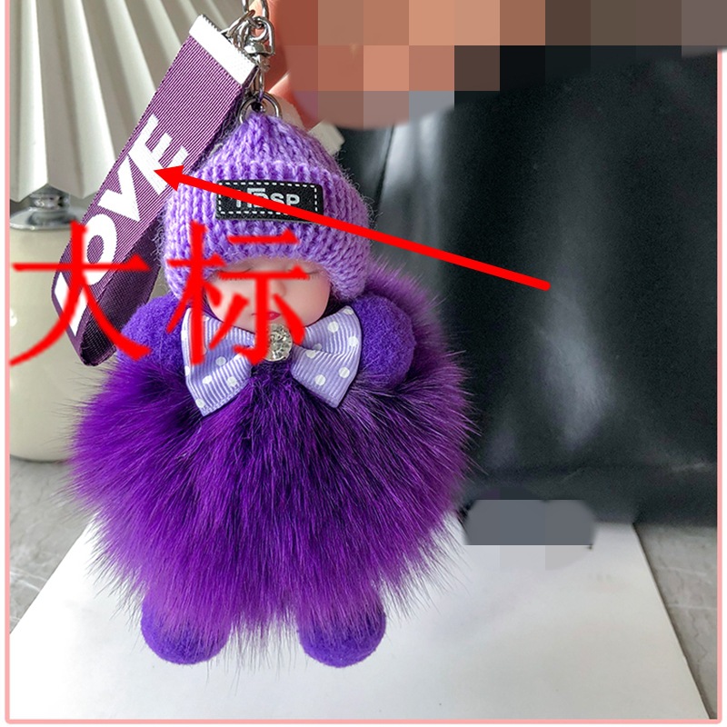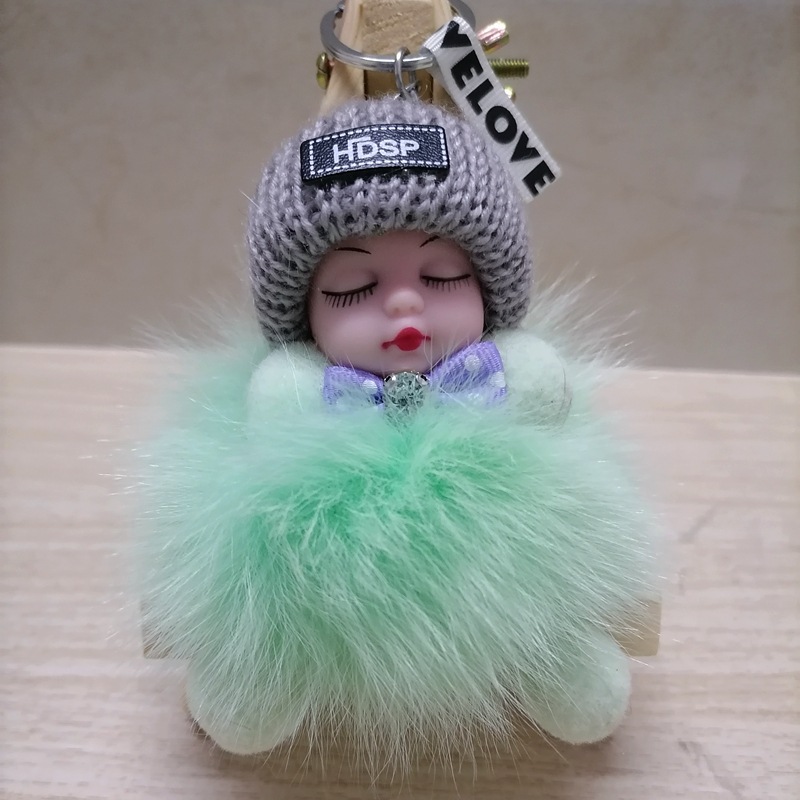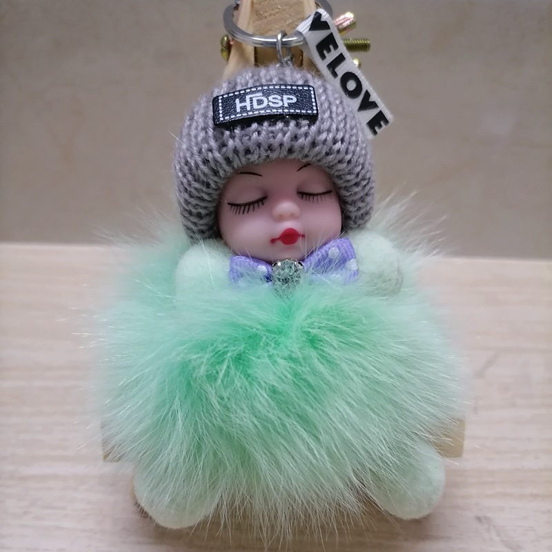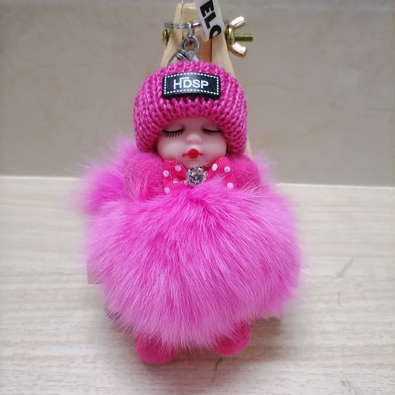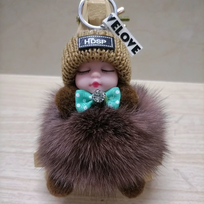 毛绒绒可爱睡眠娃娃狐狸毛包包挂饰汽车配件钥匙扣可爱钥匙扣