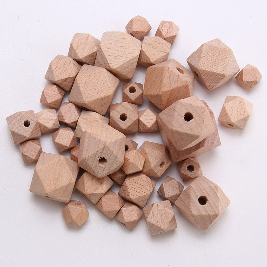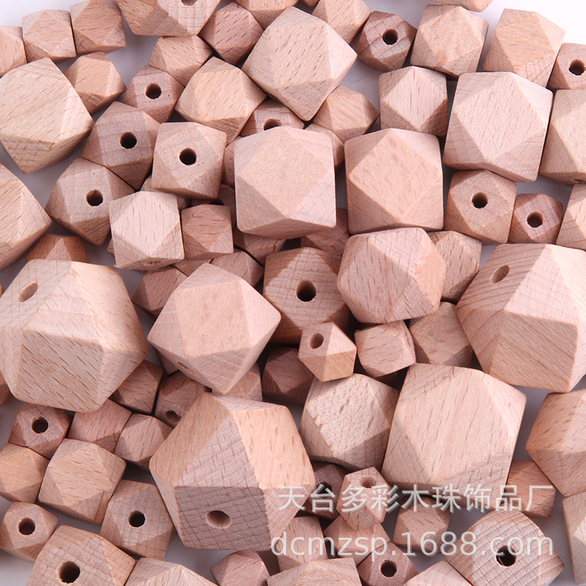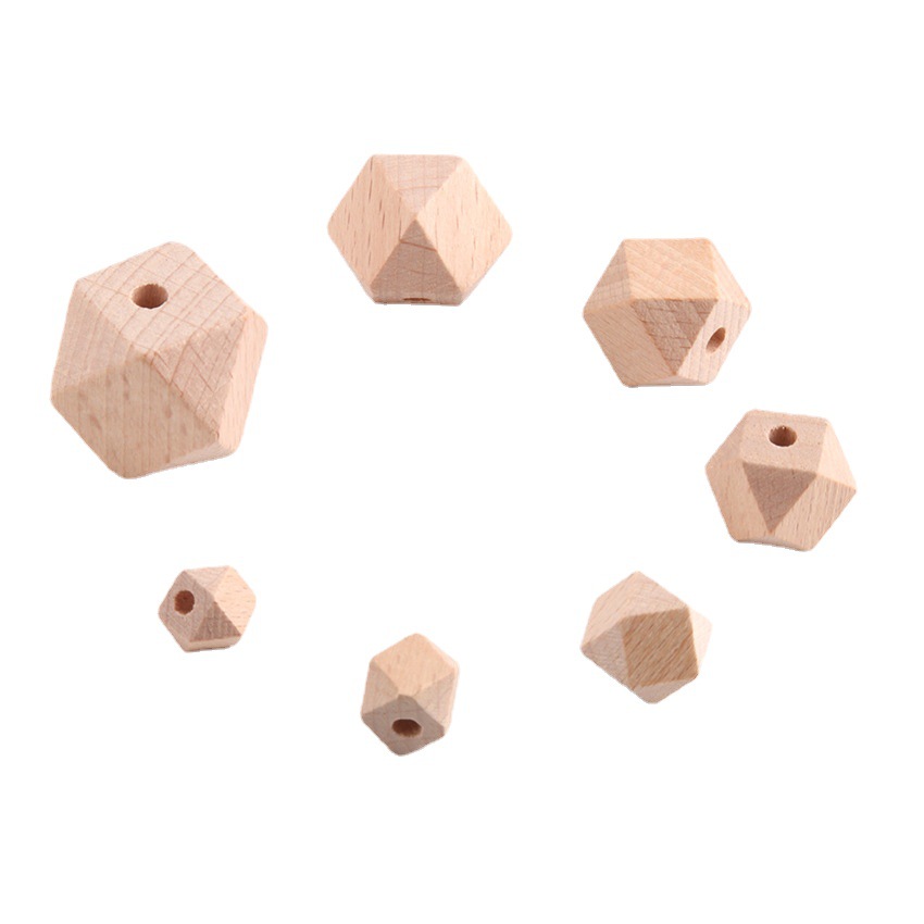 厂家批发10~30mm榉木八角珠山毛榉多边六角木珠婴儿磨牙玩具配件