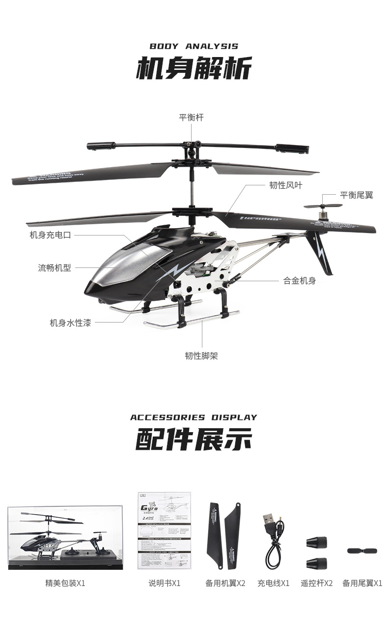 3.5通合金遥控直升机 灯光展示礼品儿童男孩玩具遥控飞机模型
