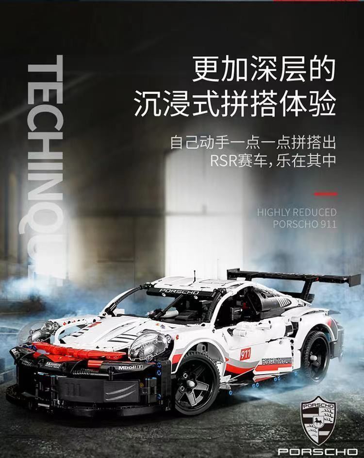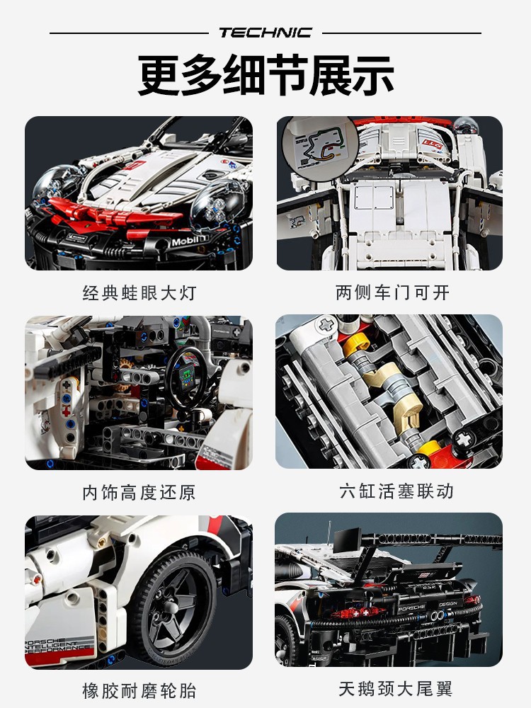 兼容乐高保时捷911兰博拼装模型玩具遥控跑车高难度男孩积木批发