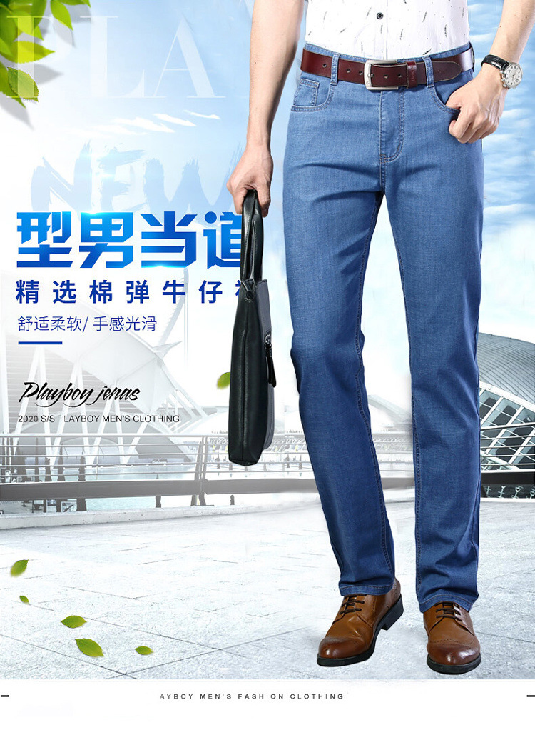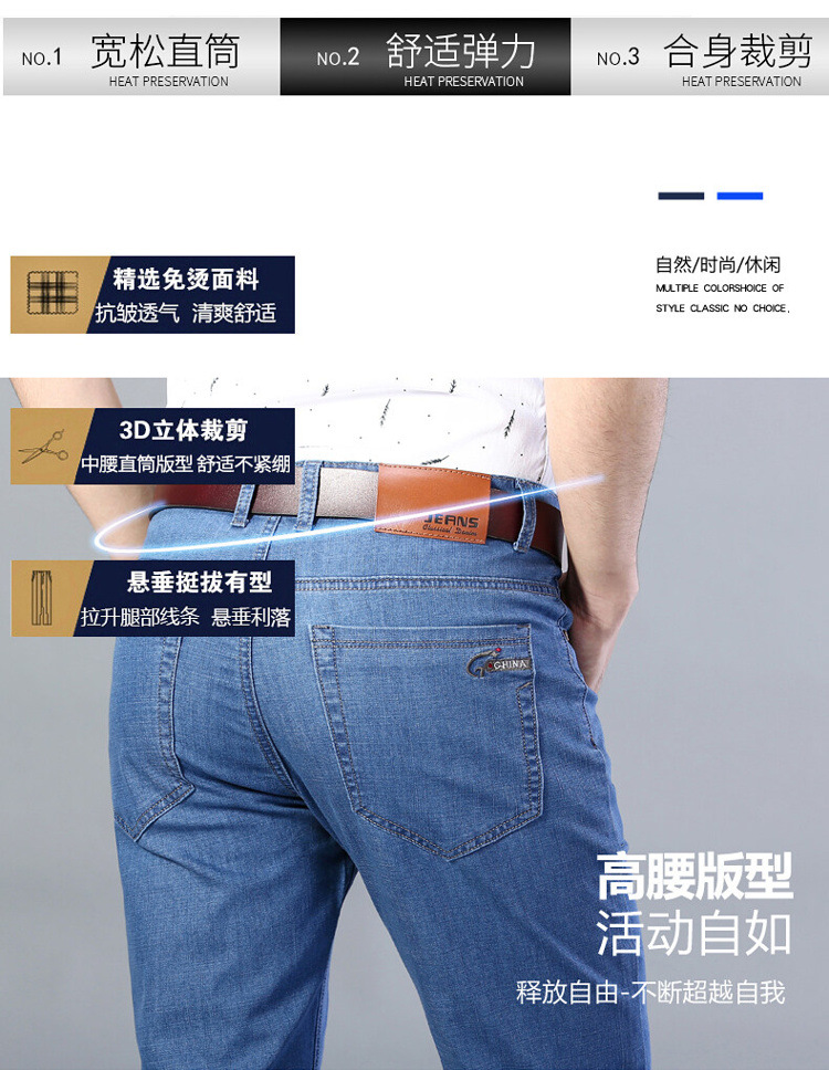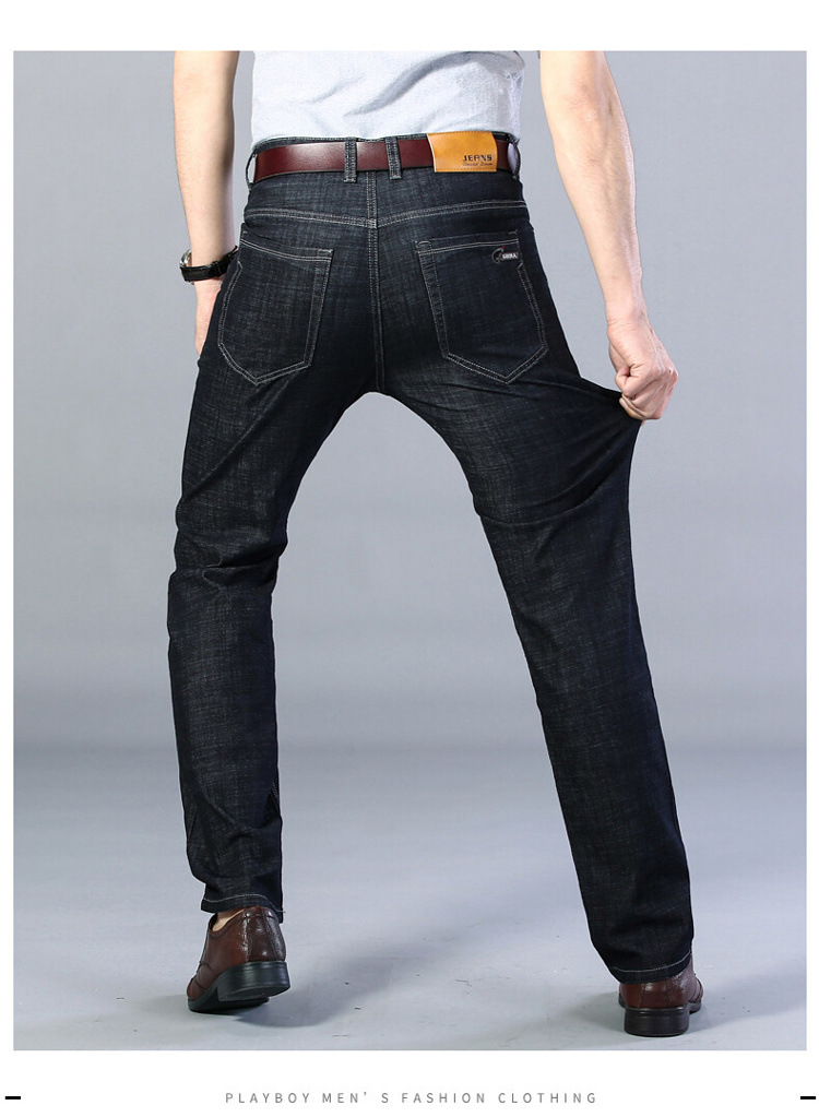 2024春秋厚款牛仔裤男士弹力直筒牛仔商务中腰大码宽松长裤男批发