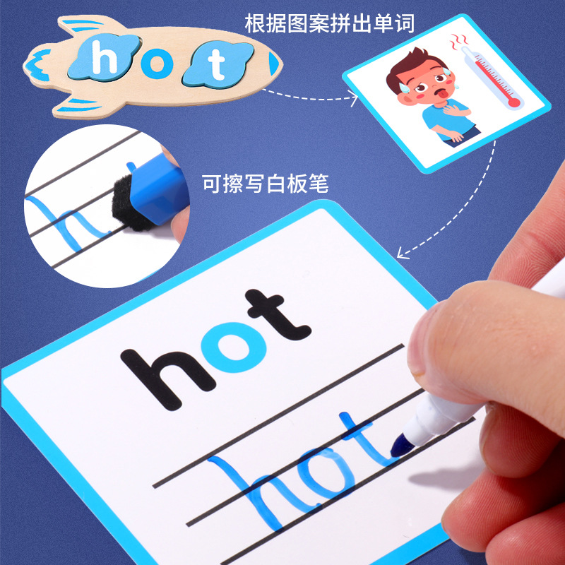 跨境木制拼单词游戏儿童早教字母认知配对短元音拼写阅读科教玩具
