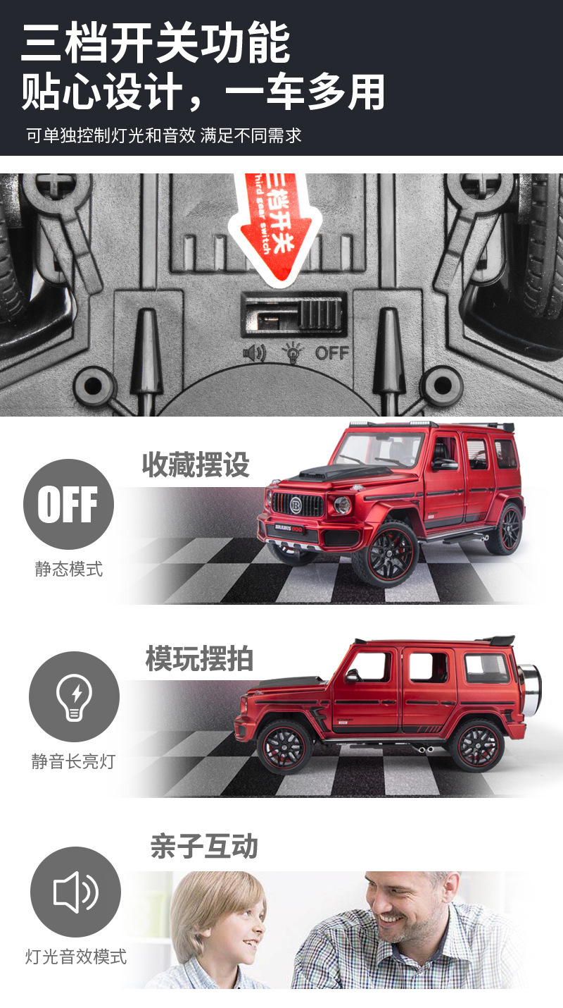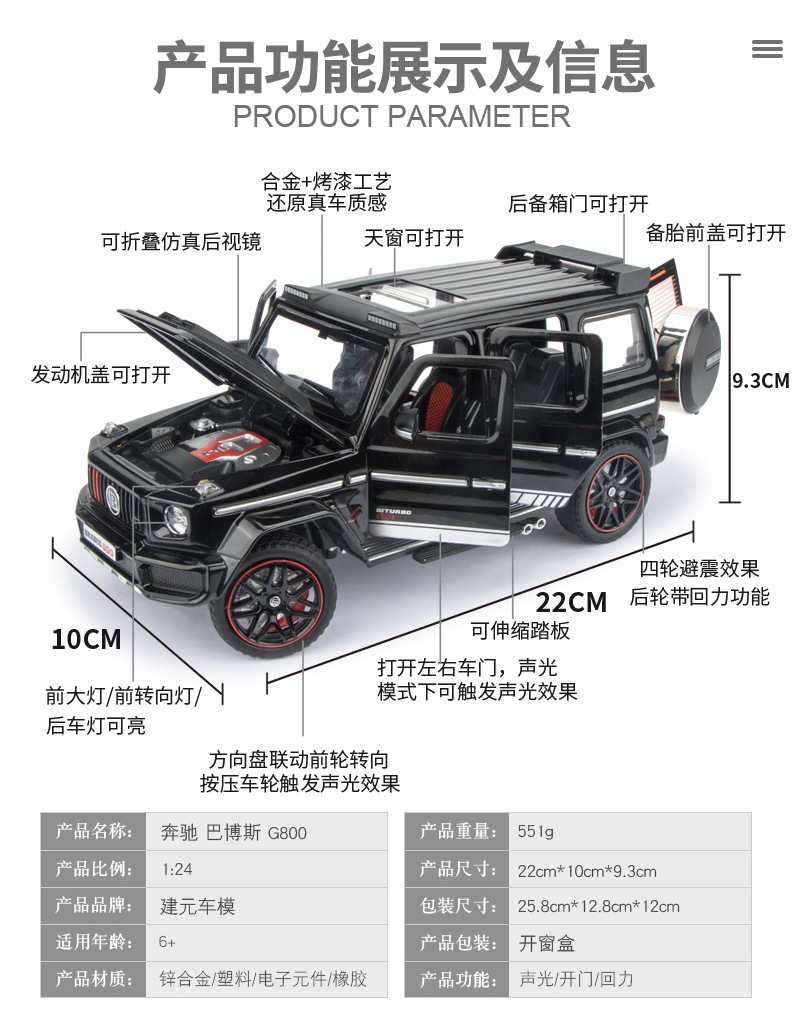建元合金车模1比24巴博斯G800越野车声光回力玩具大G车模摆件收藏