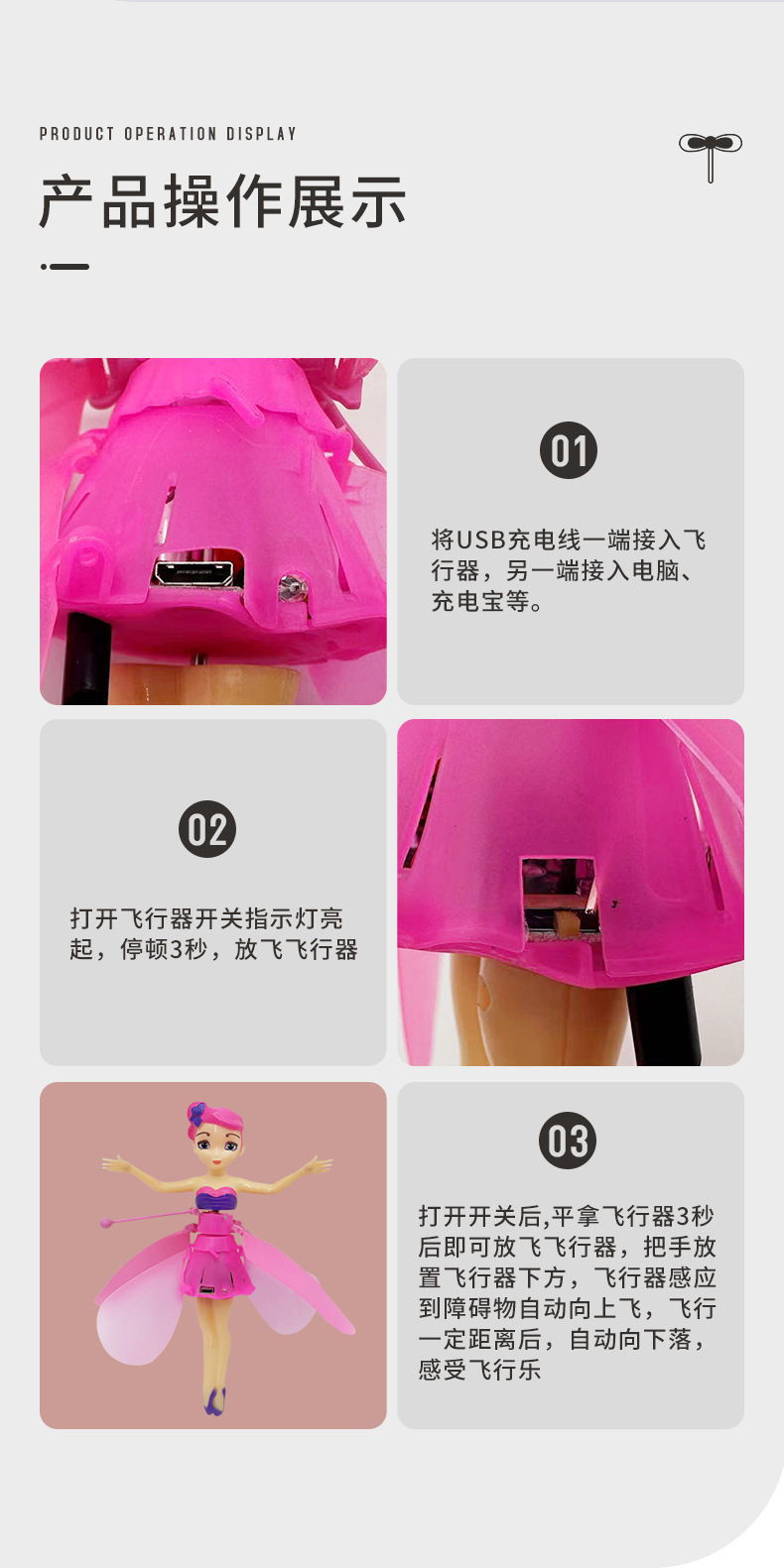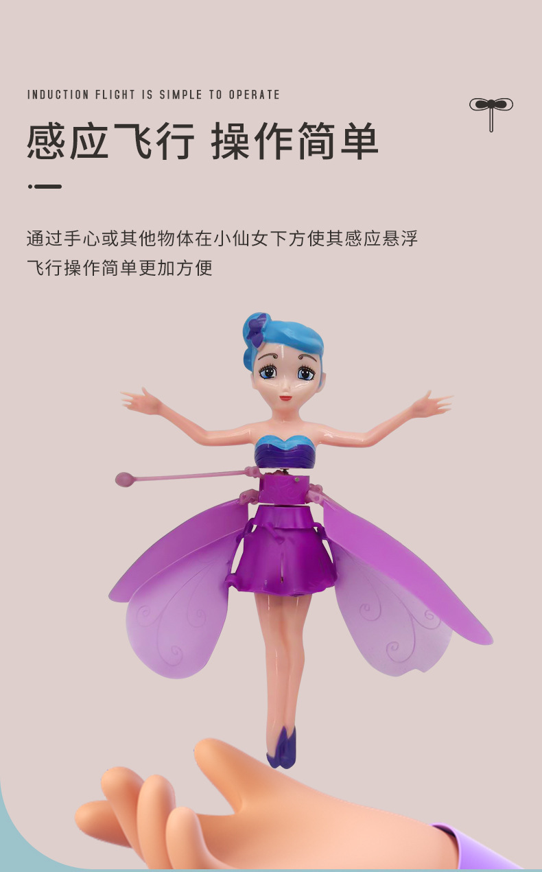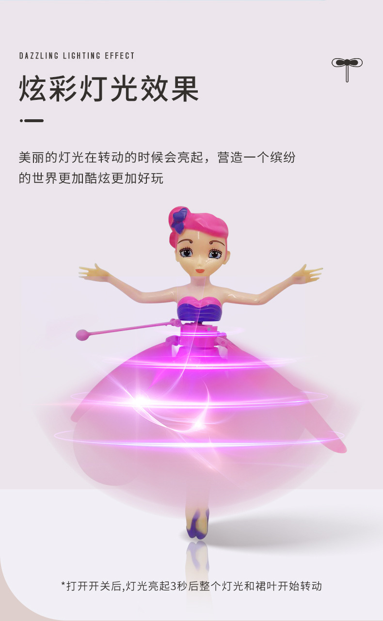 跨境花仙子感应飞行器批发小飞仙冰雪公主飞天小仙女发光悬浮玩具